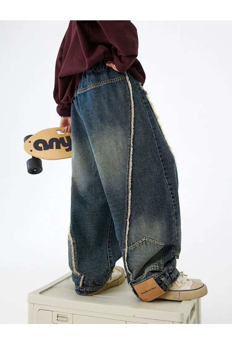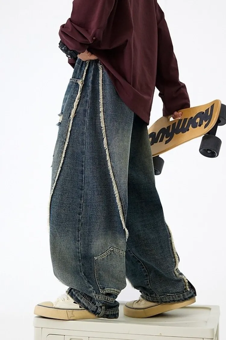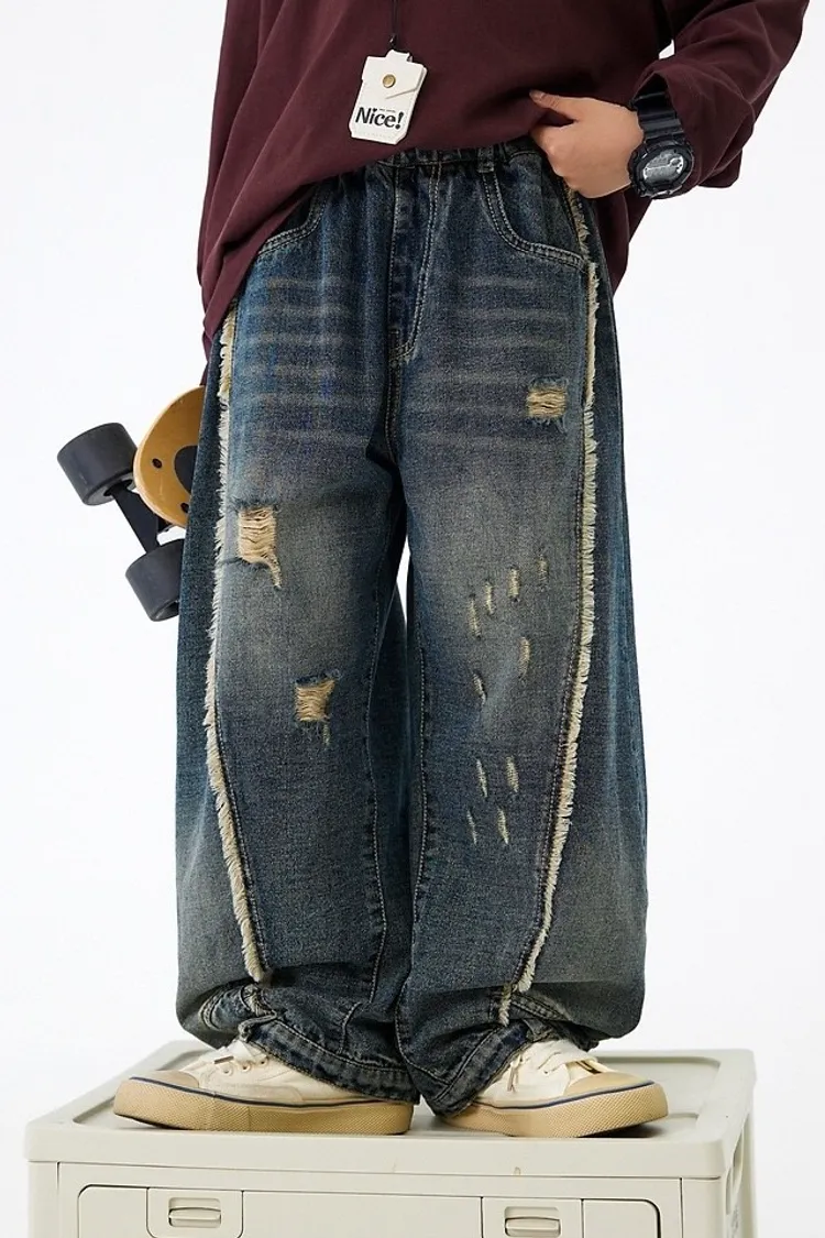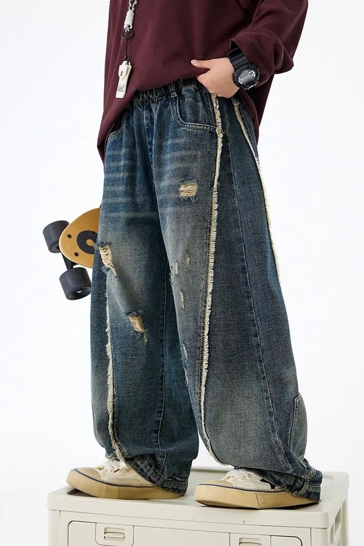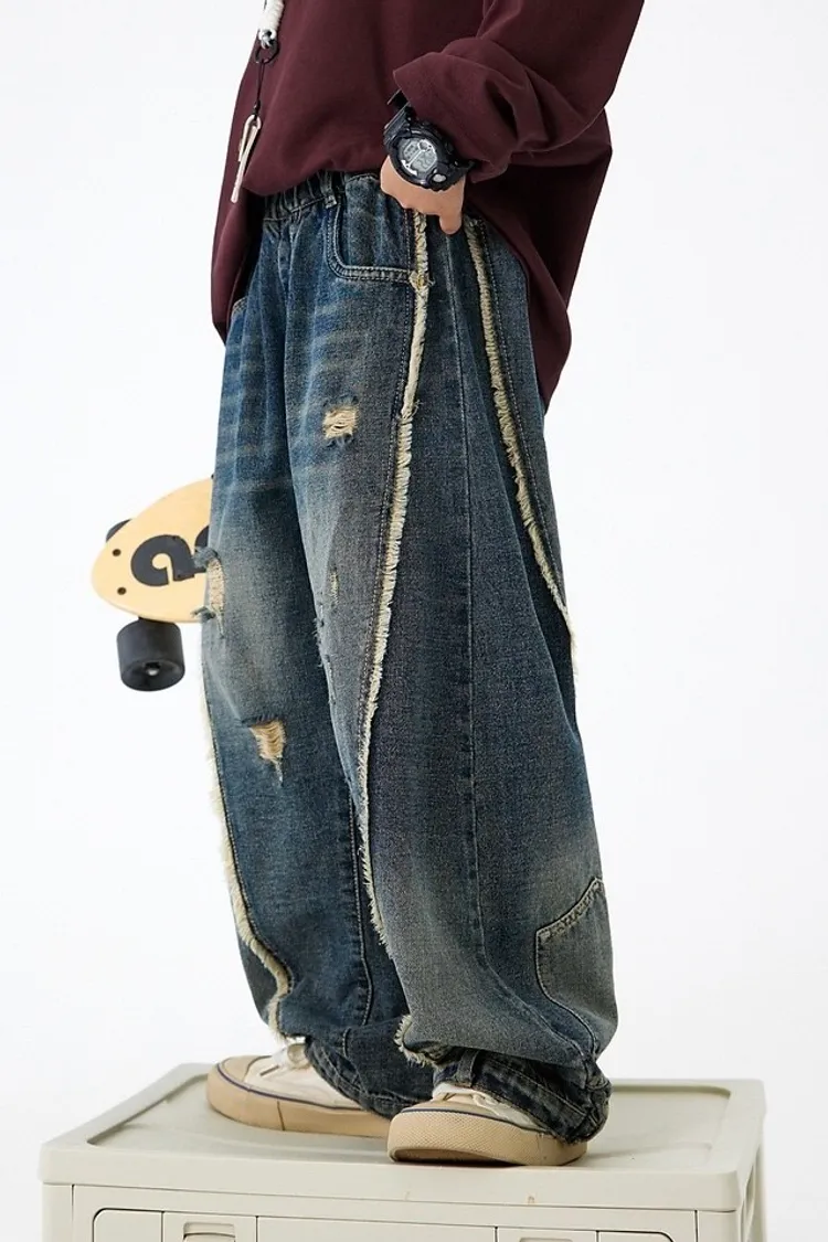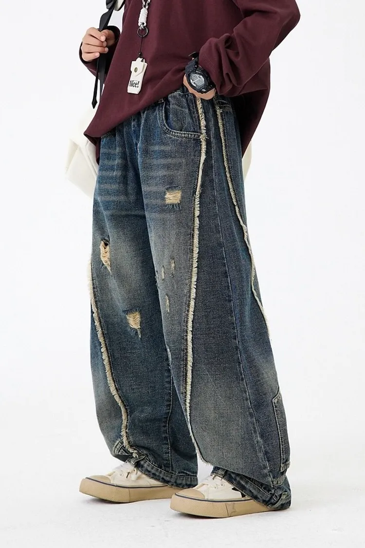 舊時光破洞貓鬚牛仔褲