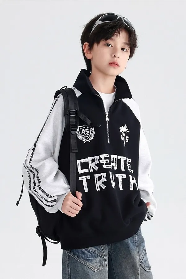 酷帥暗影字母半領加絨大學TEE