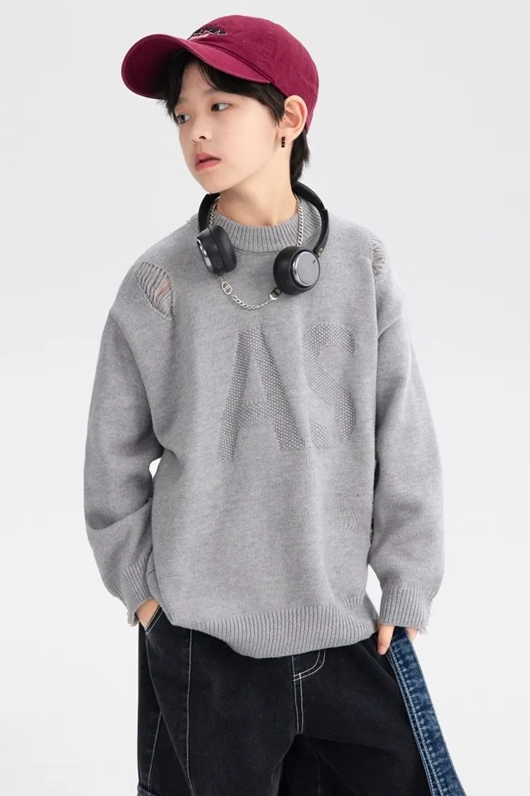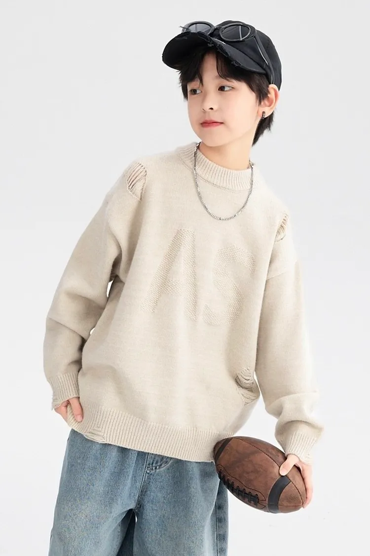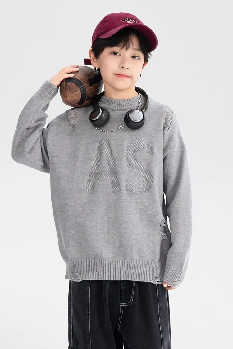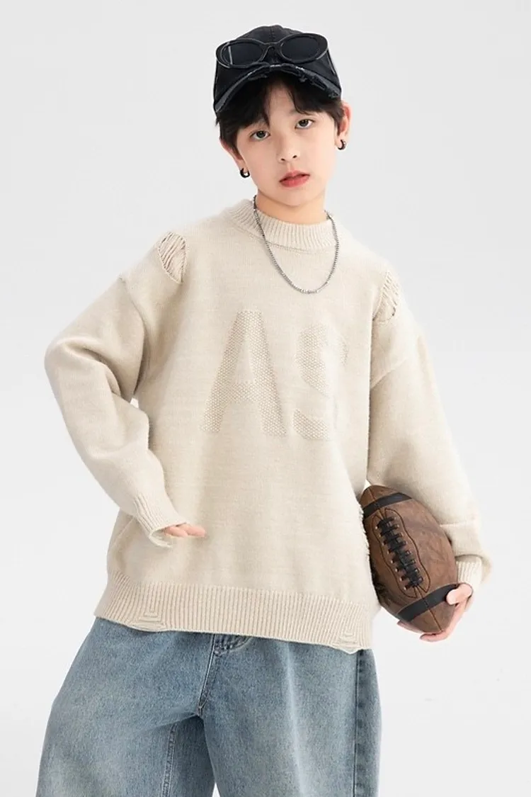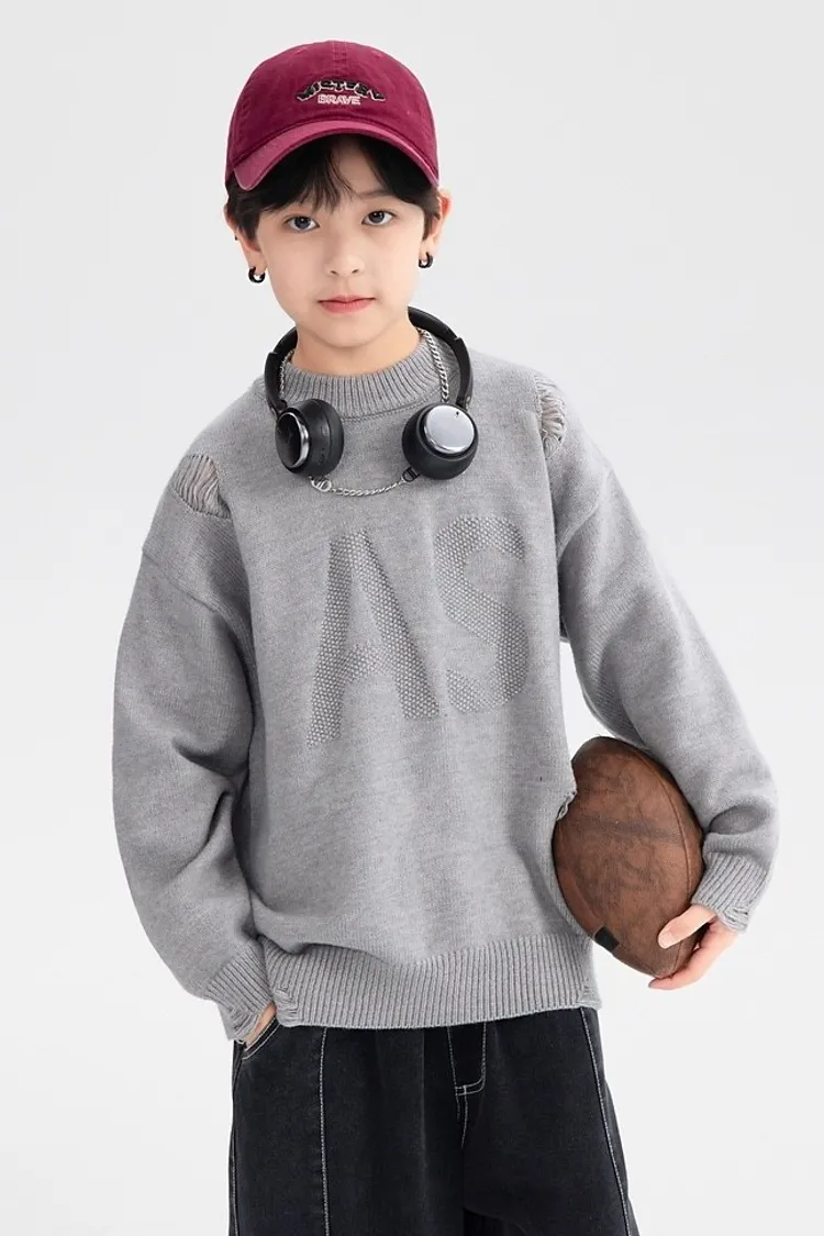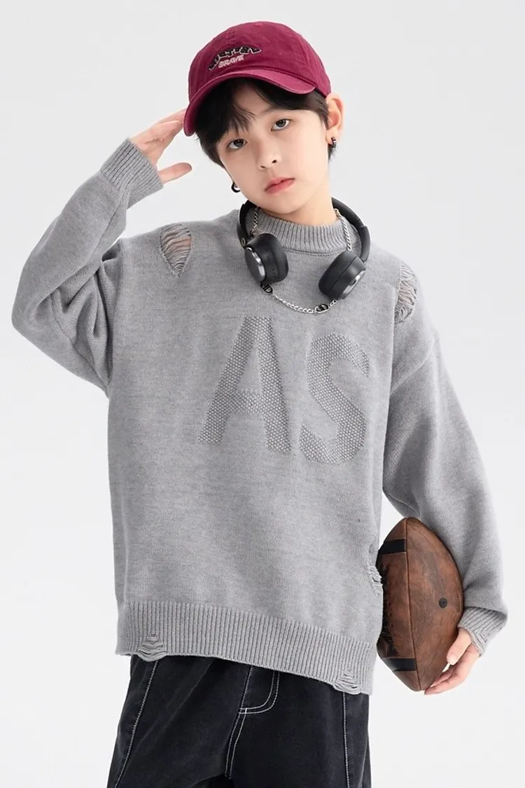 緹花大字母小破洞針織衣