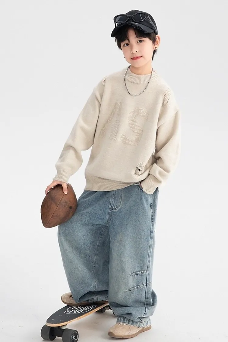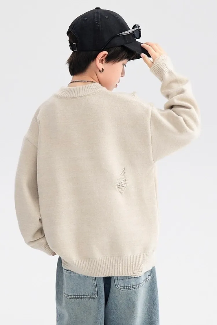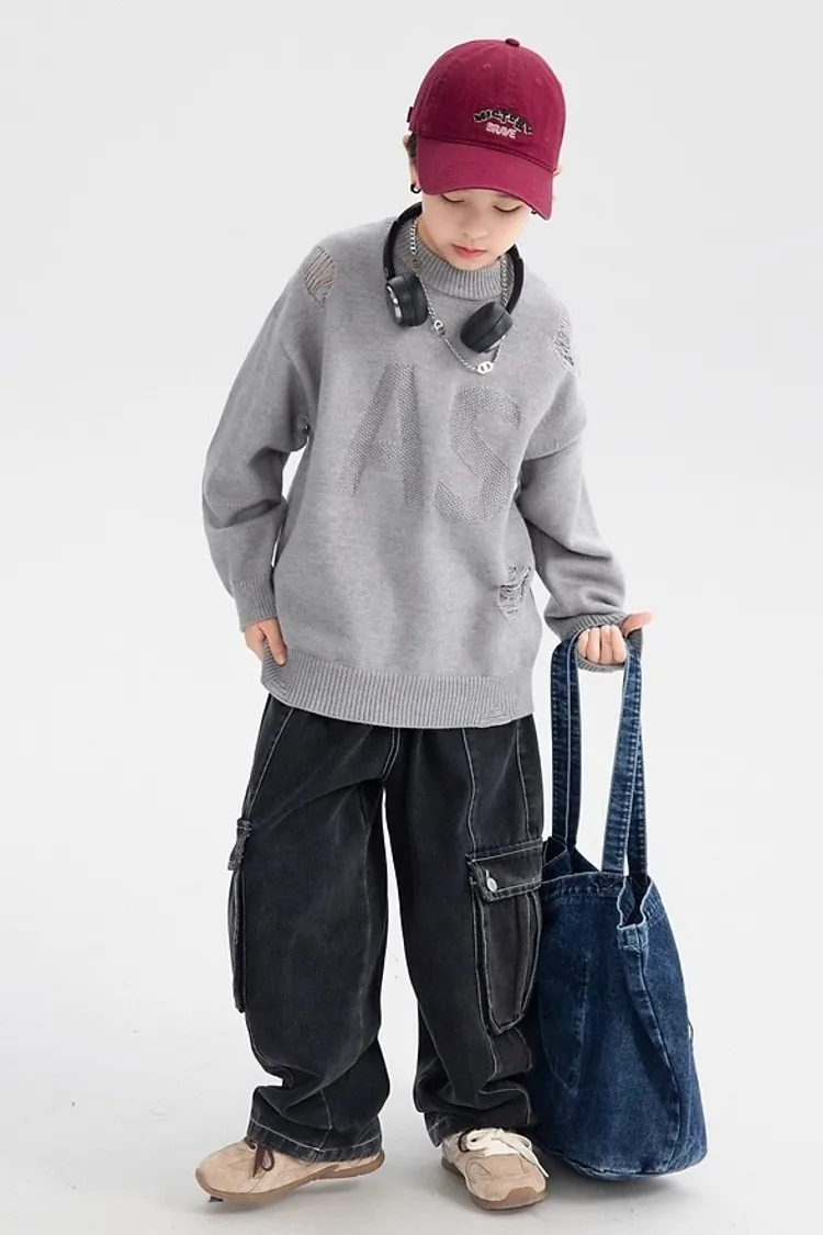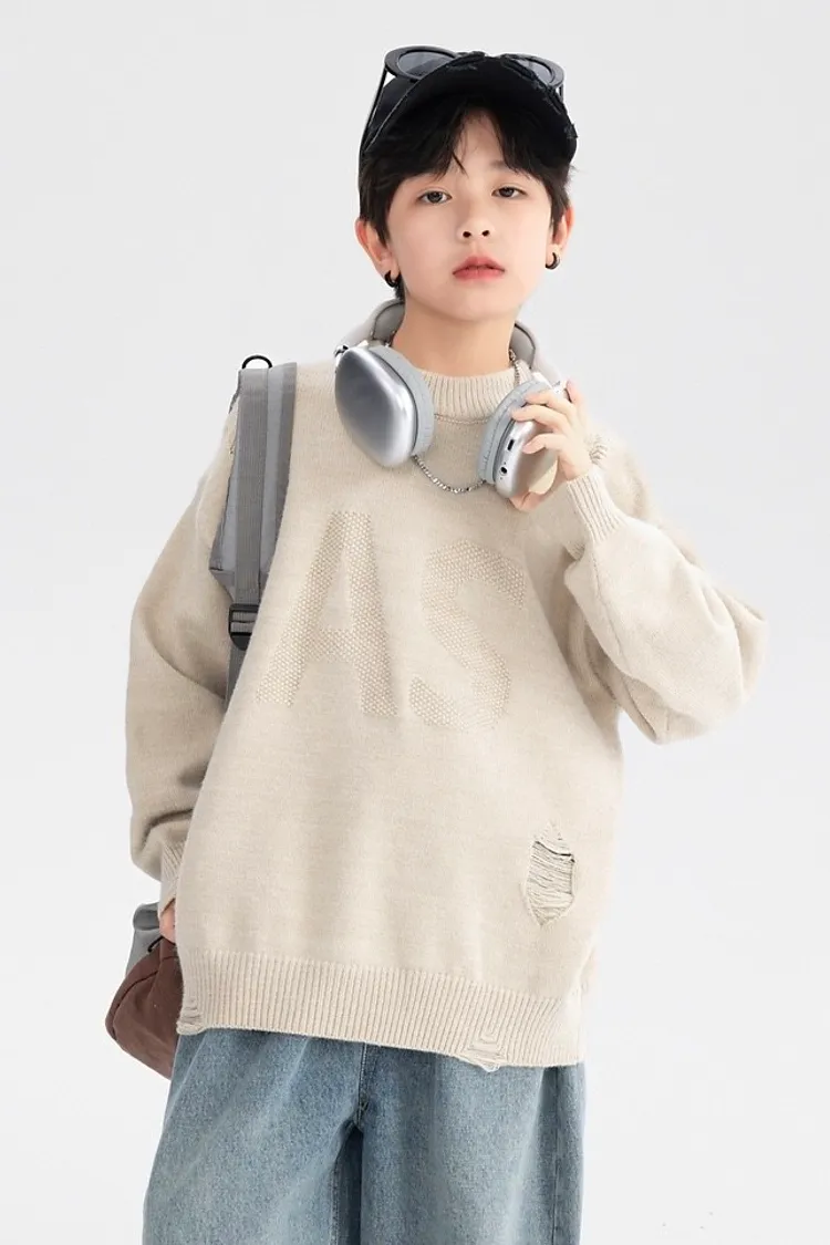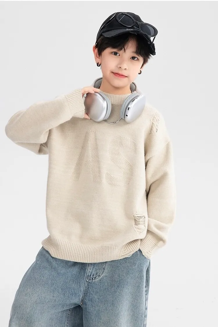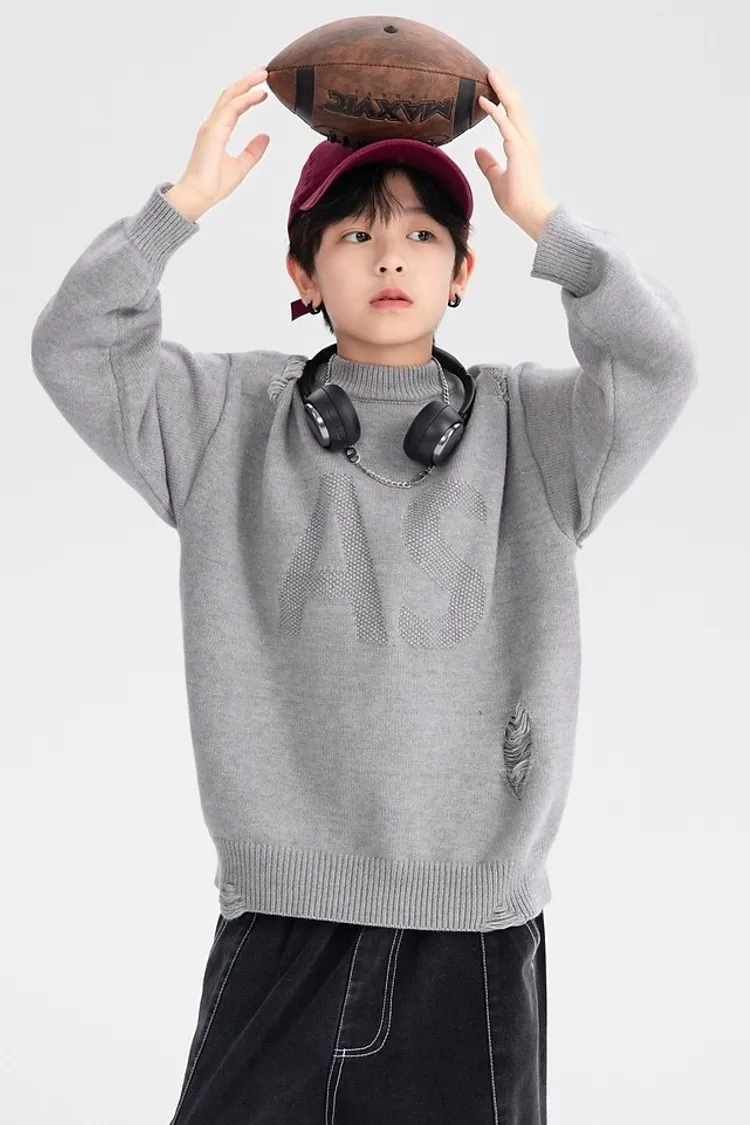 緹花大字母小破洞針織衣