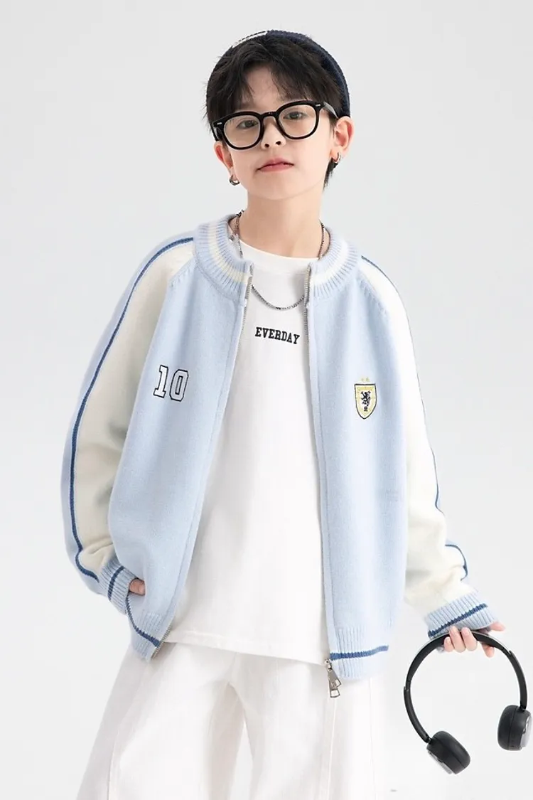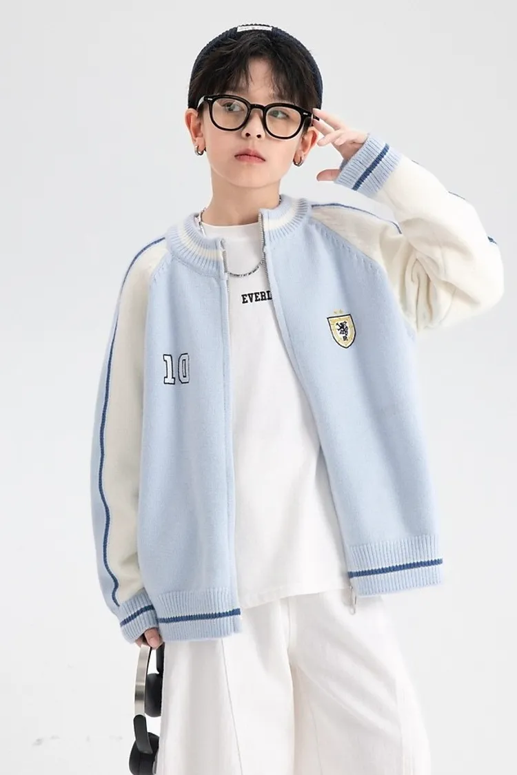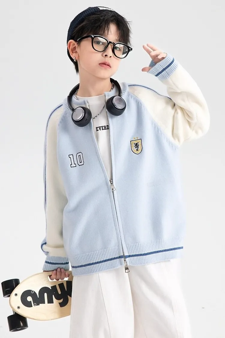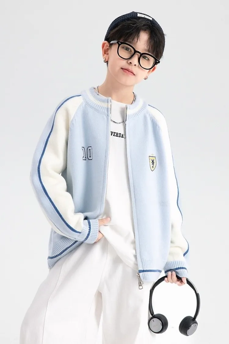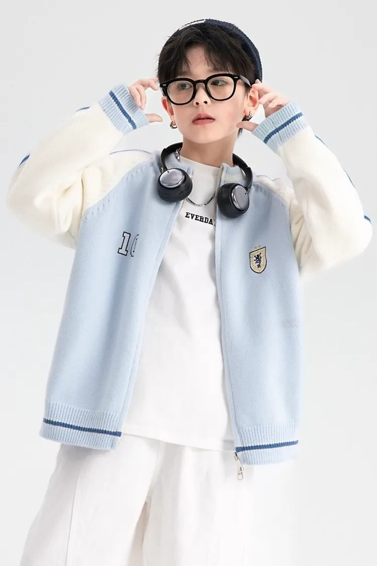 學院風拼色加厚針織外套