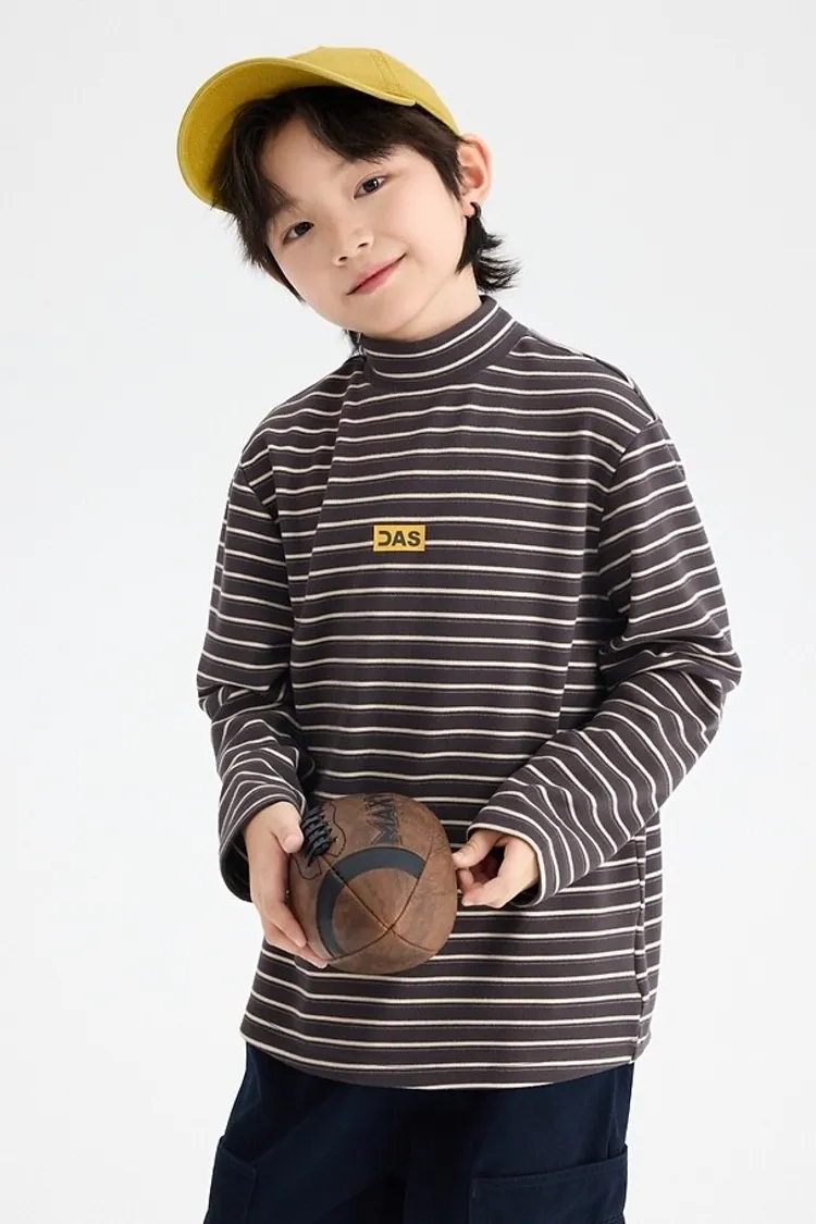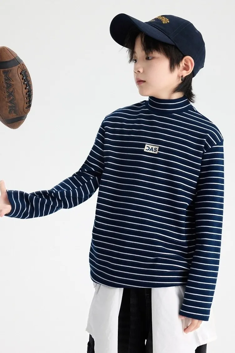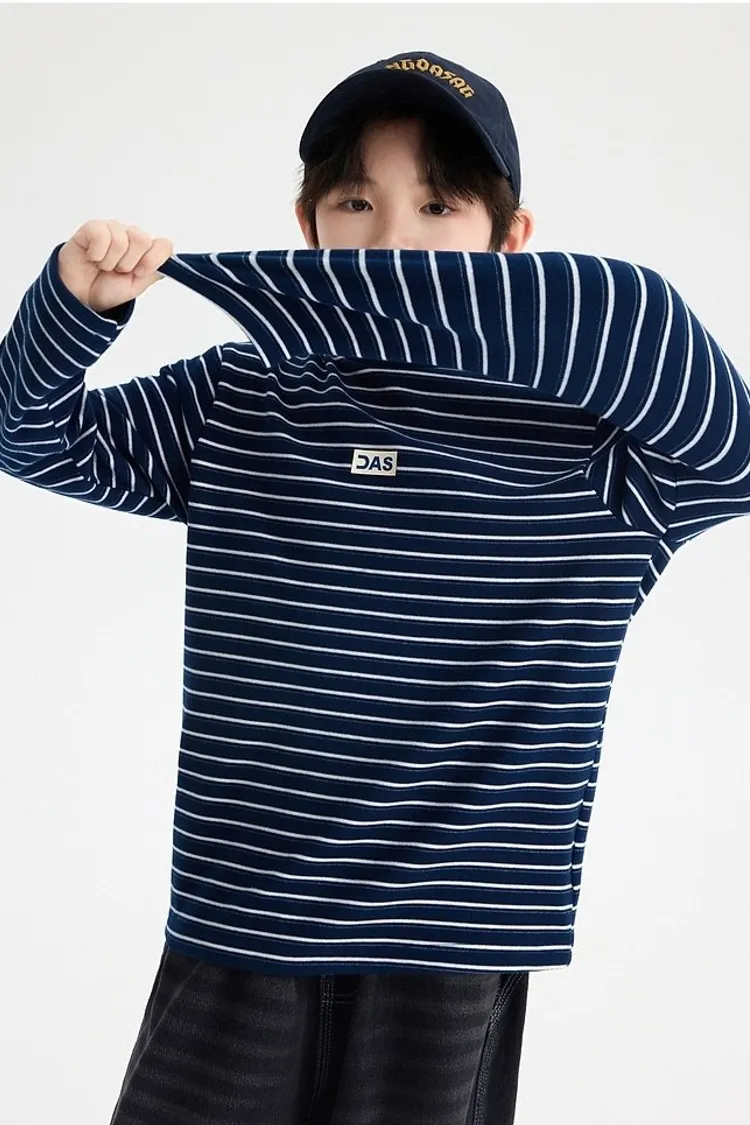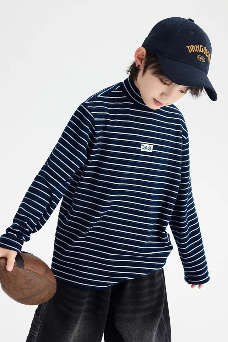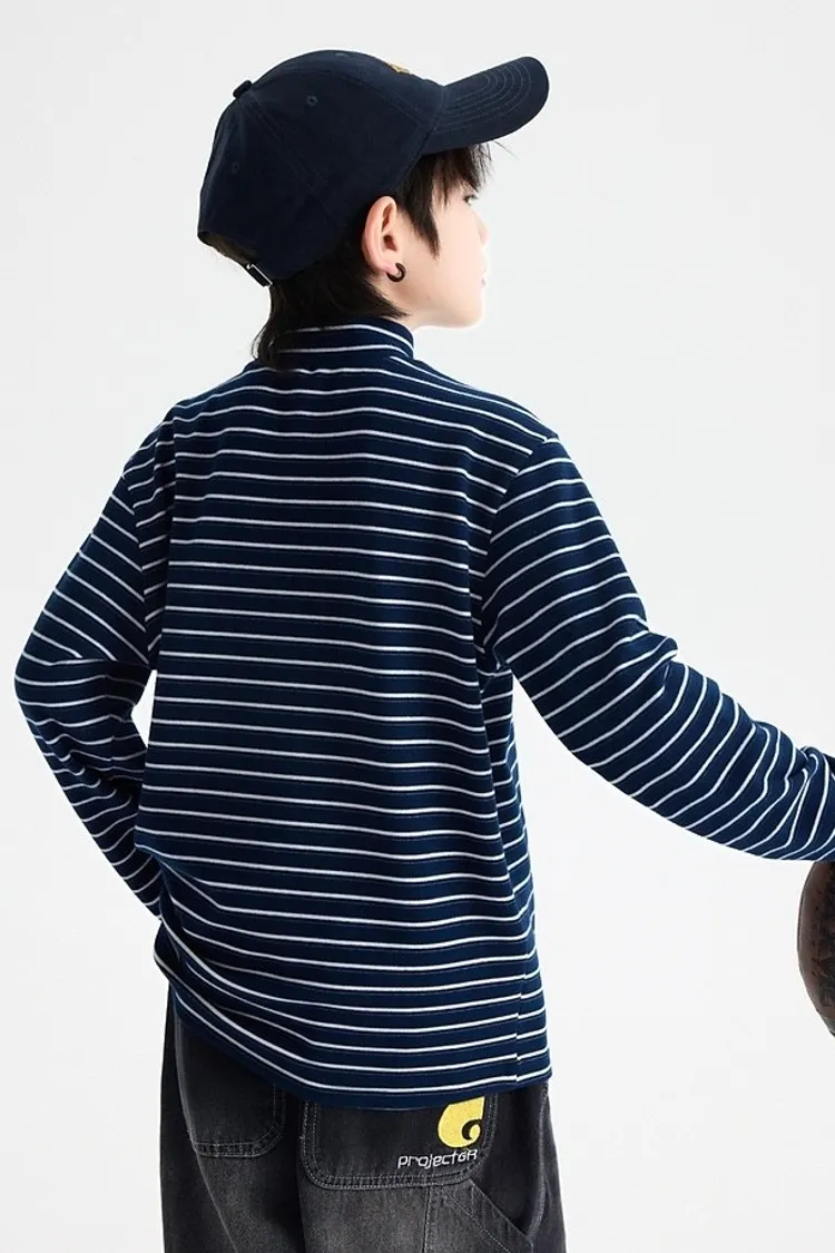 條紋德絨半領蓄熱內搭TEE