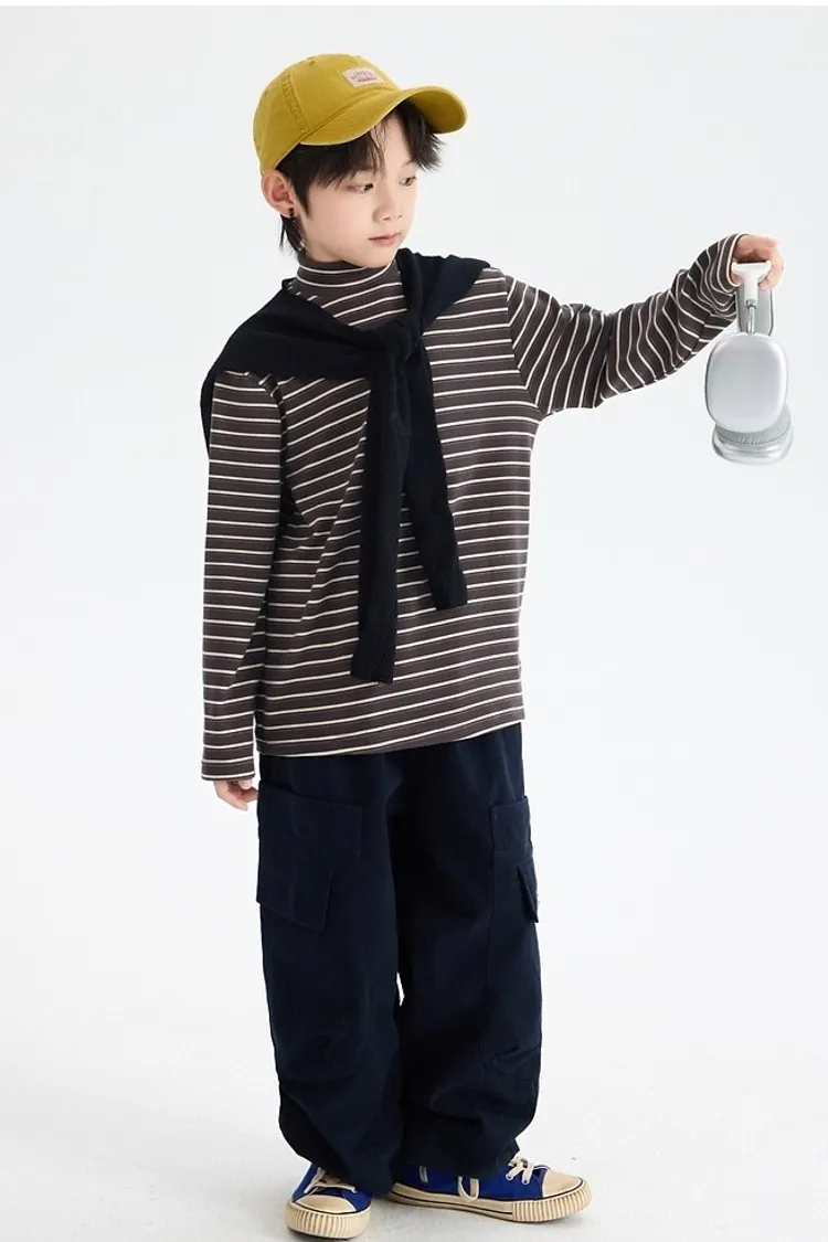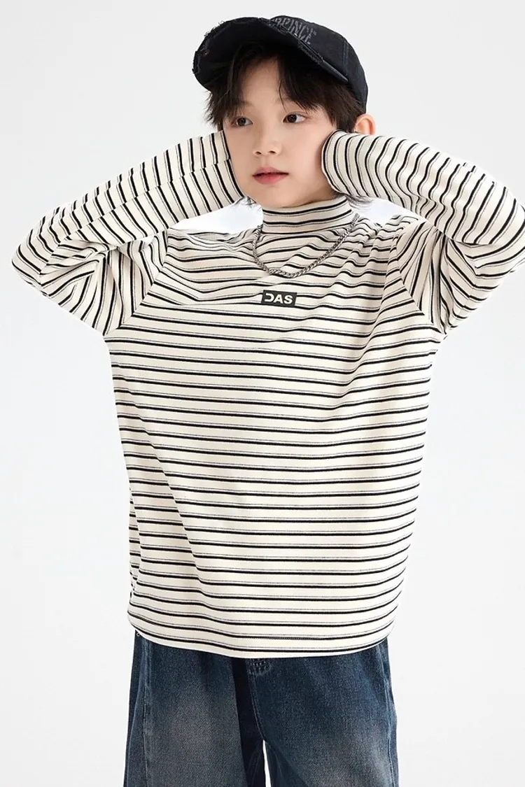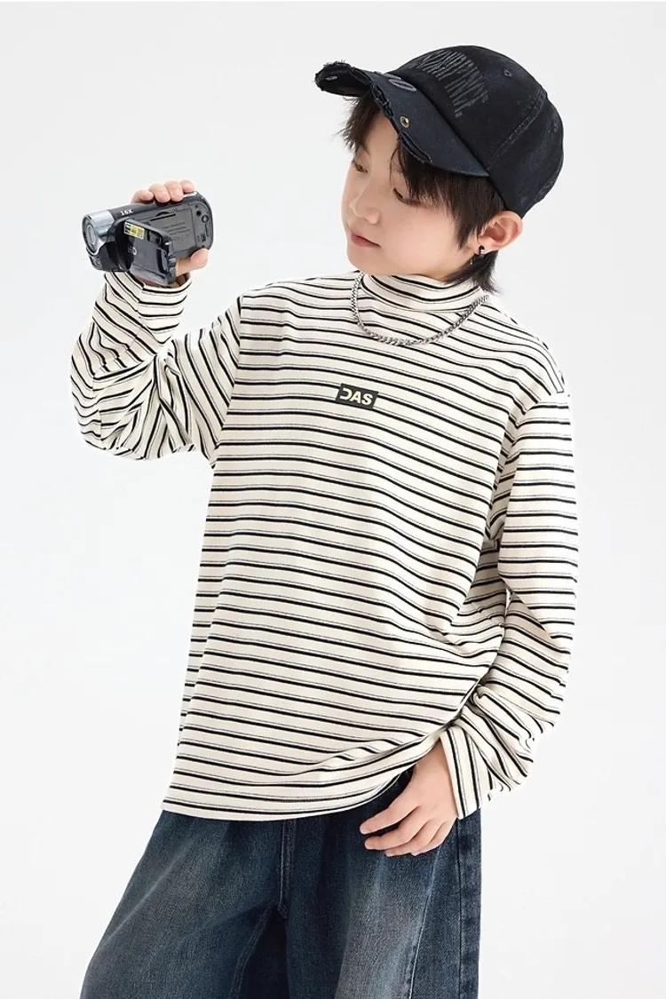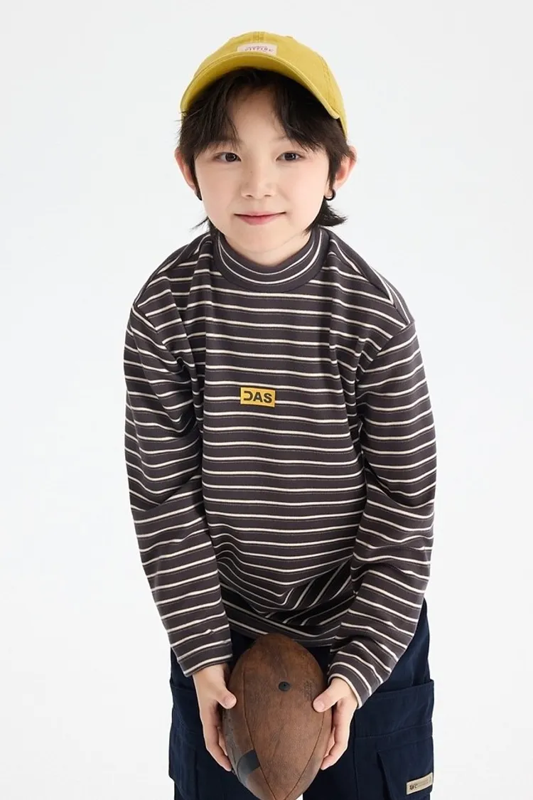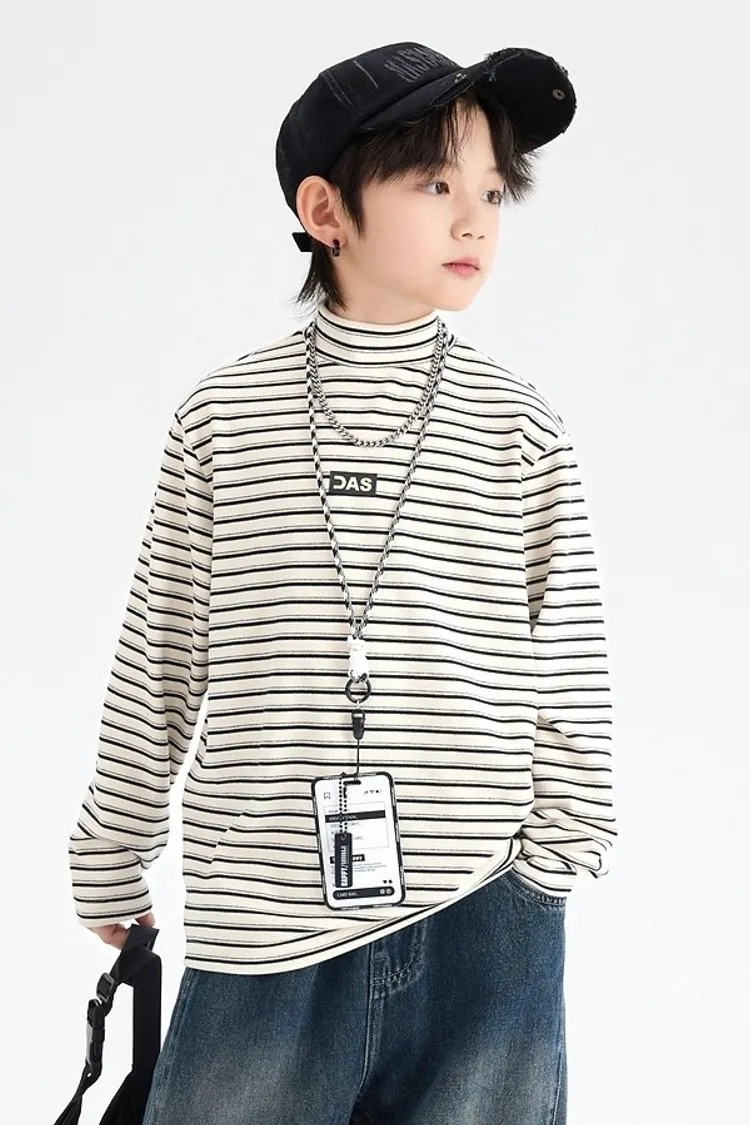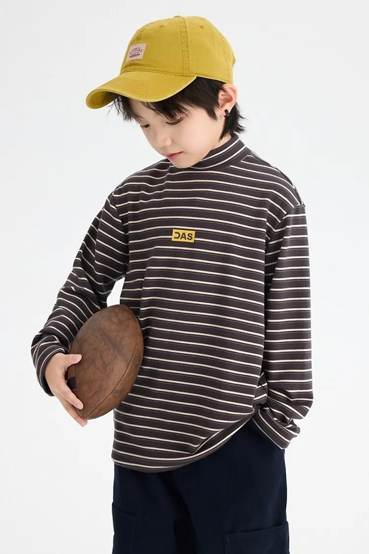 條紋德絨半領蓄熱內搭TEE