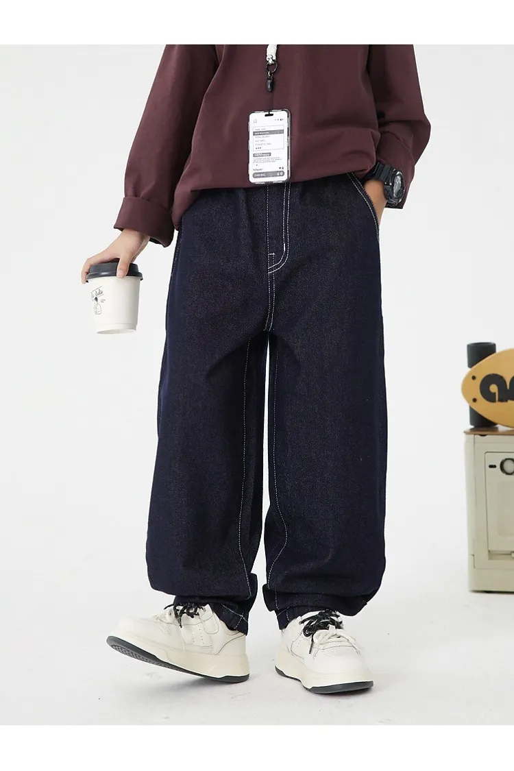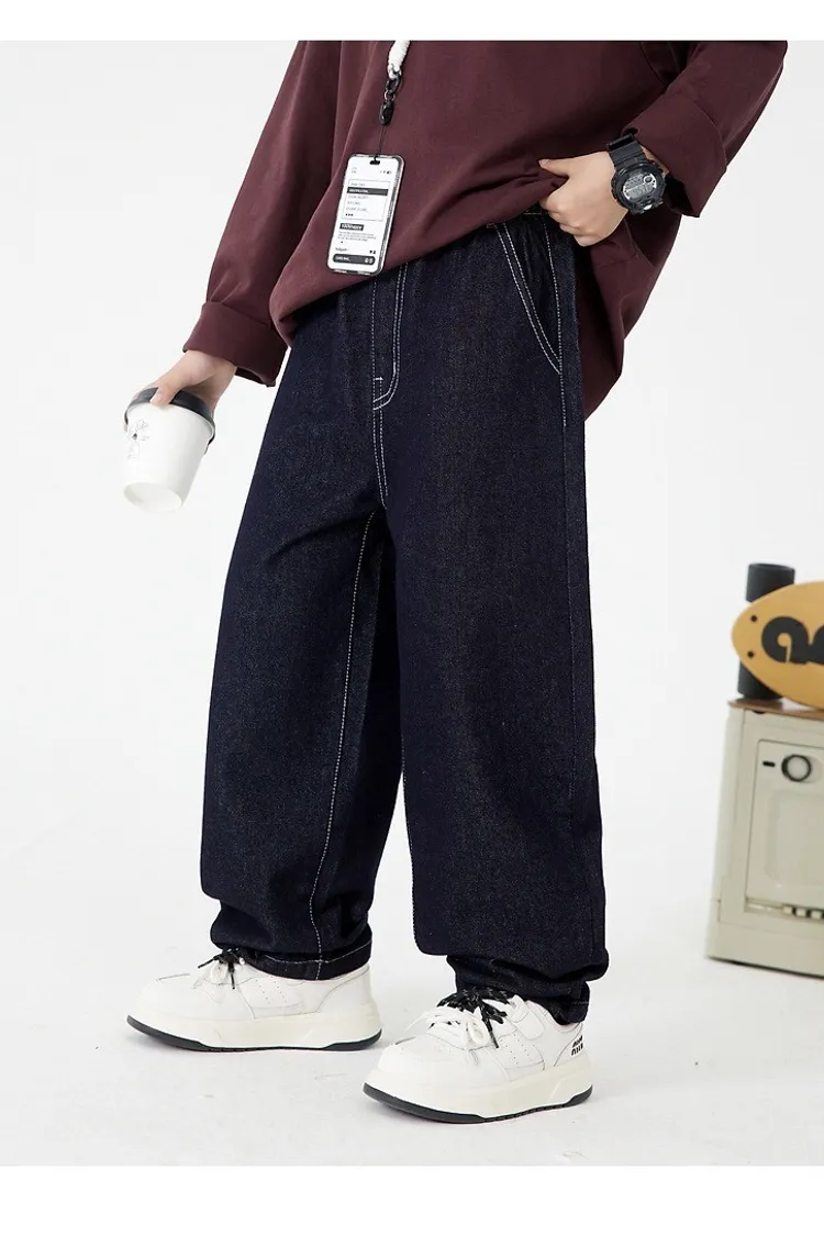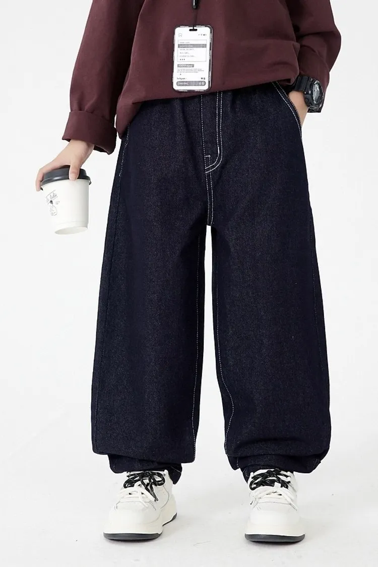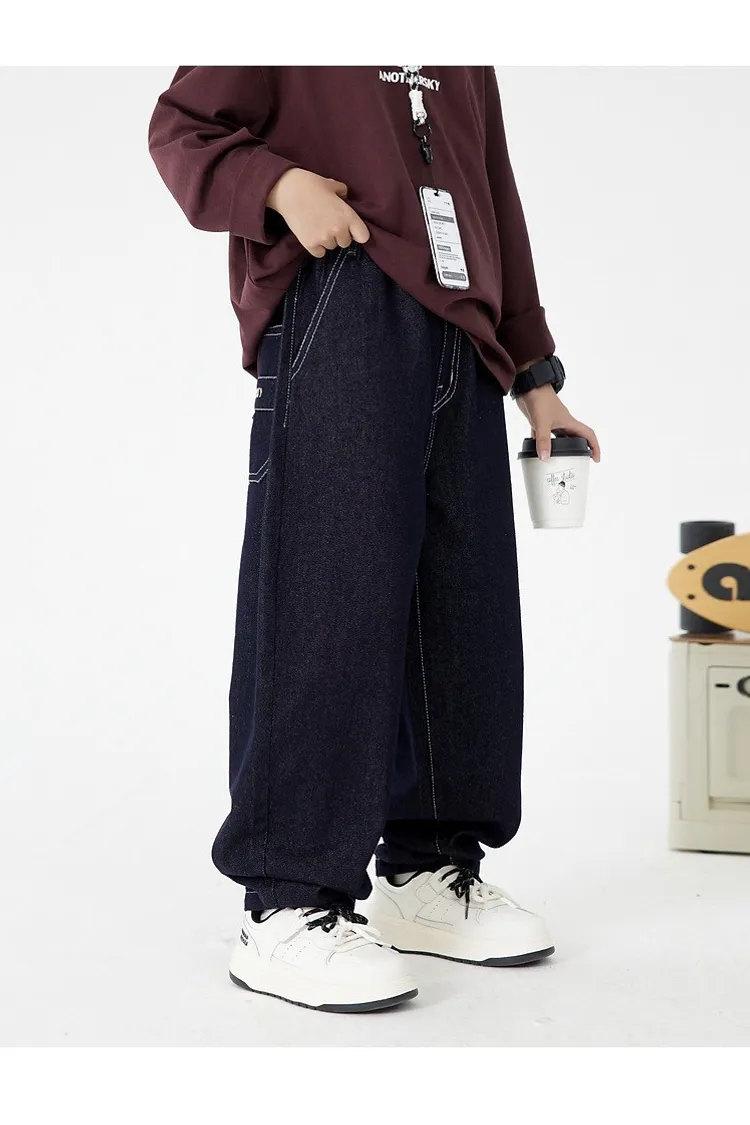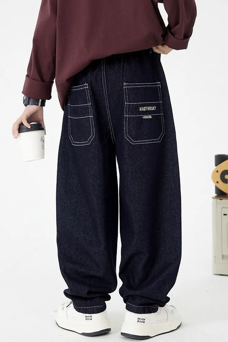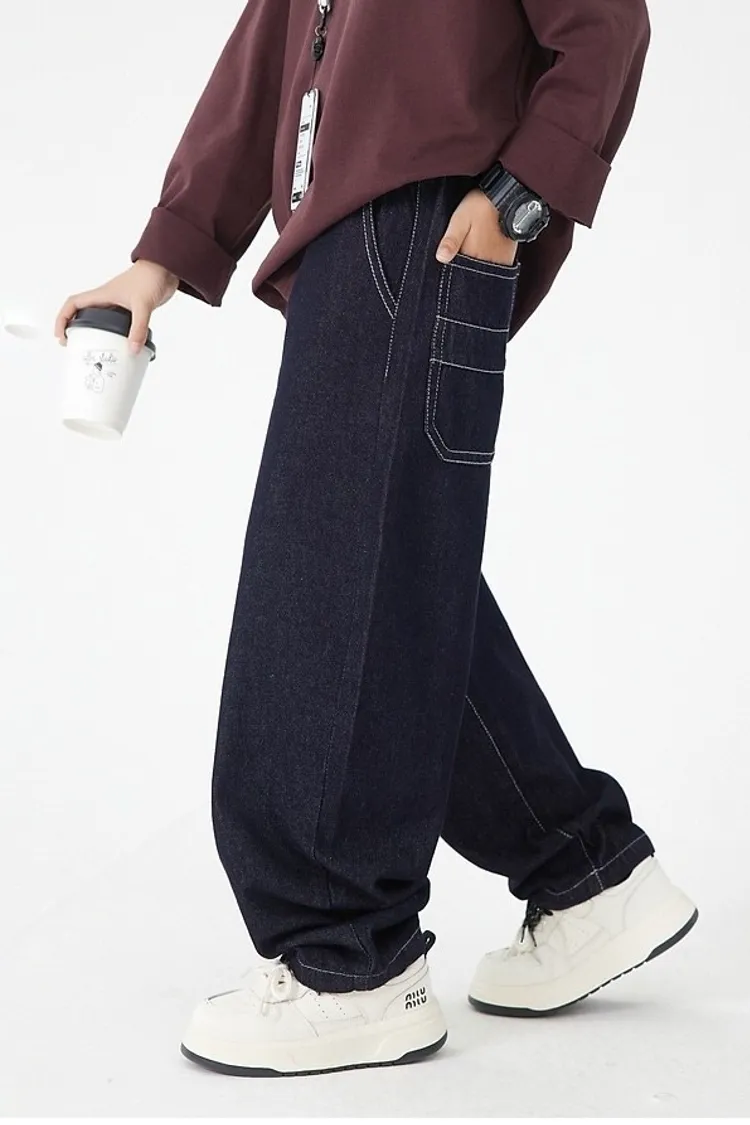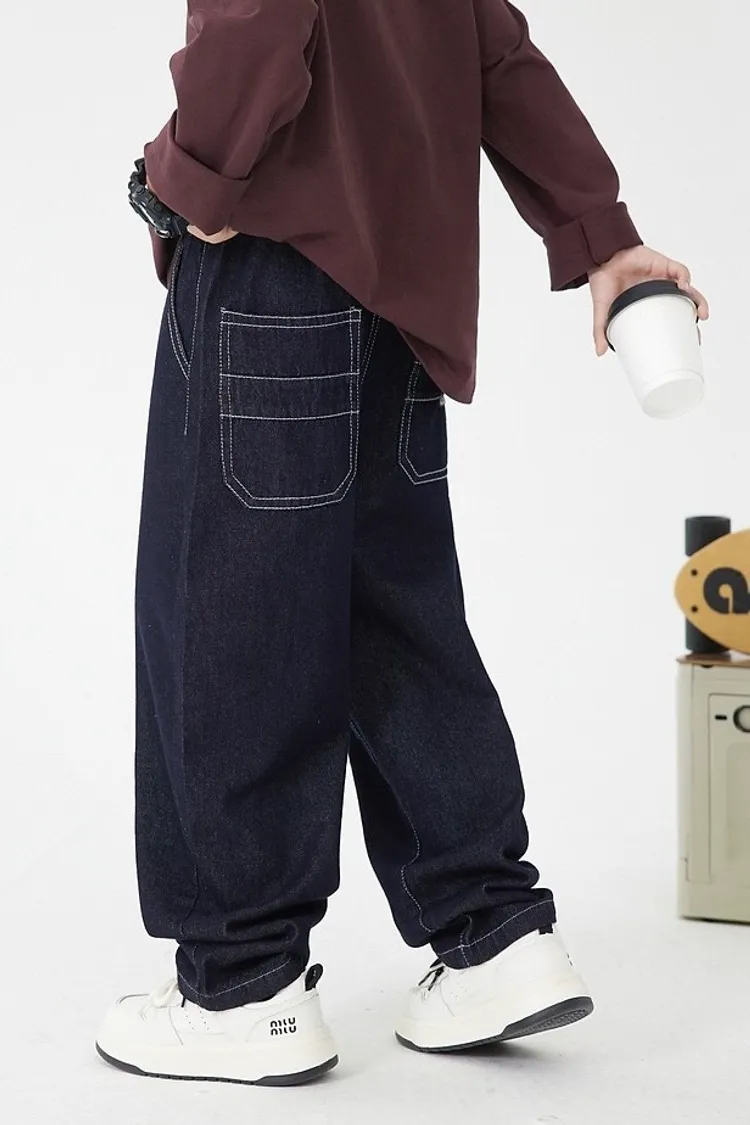 明線口袋加絨彎刀牛仔褲