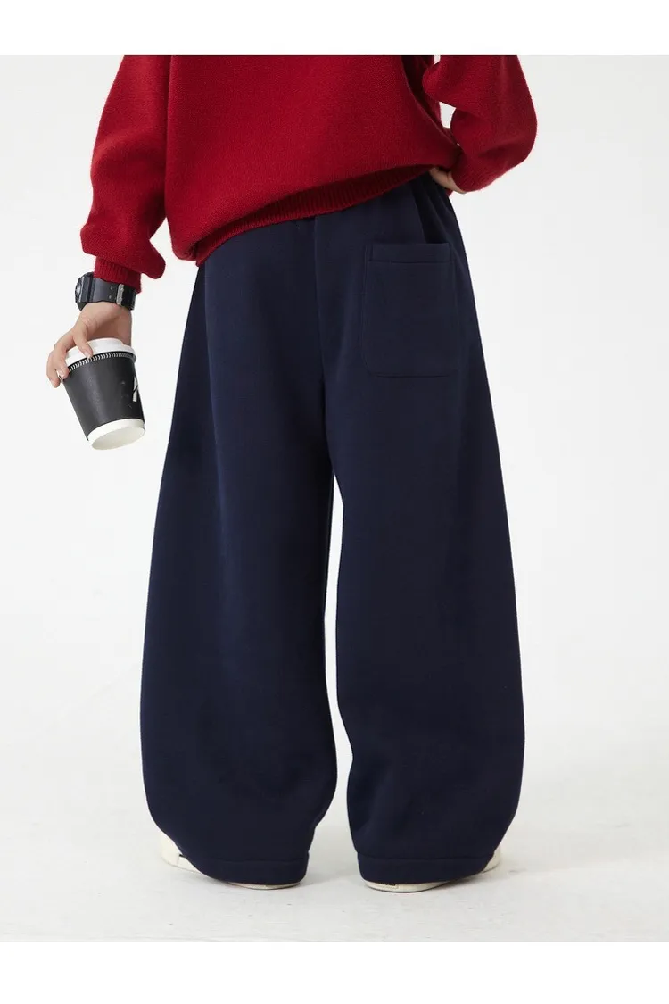 小字母拼色加絨休閒彎刀褲