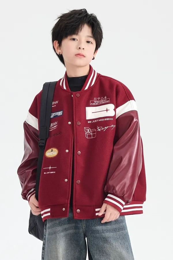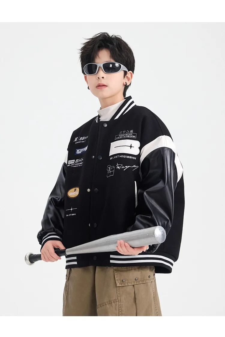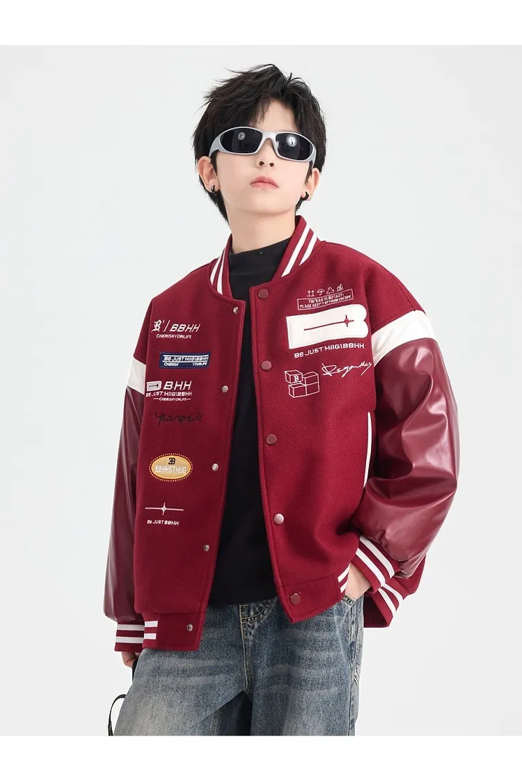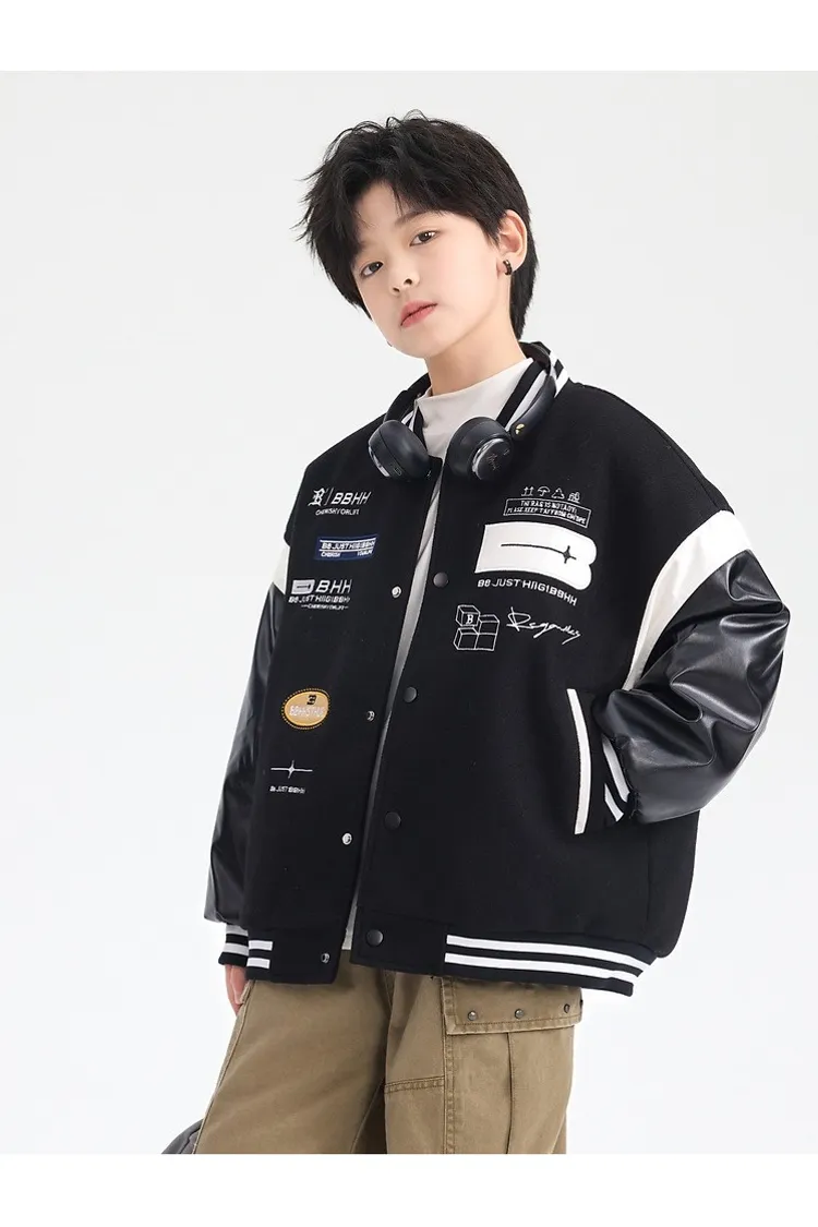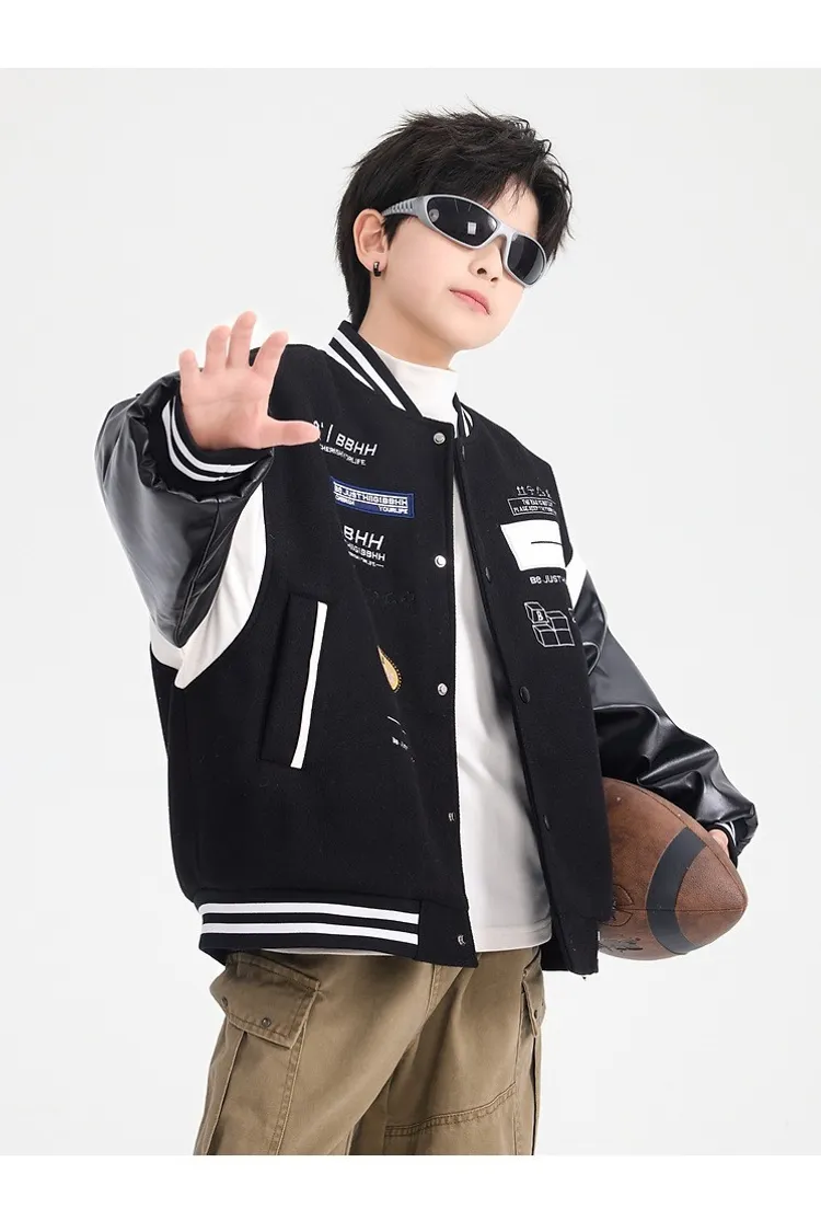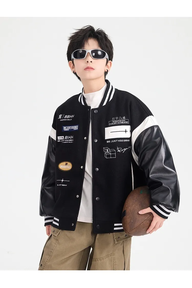 毛呢拼接皮夾棉棒球外套