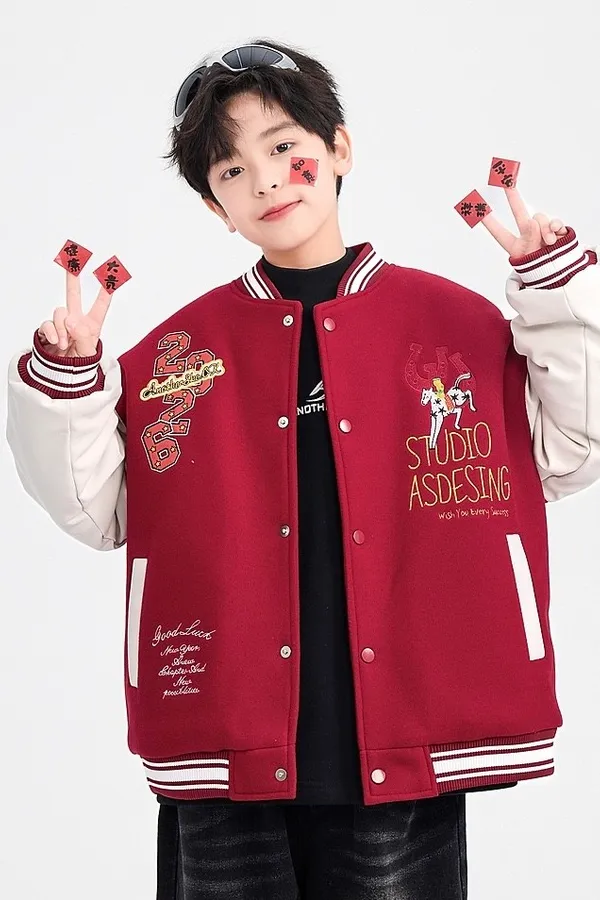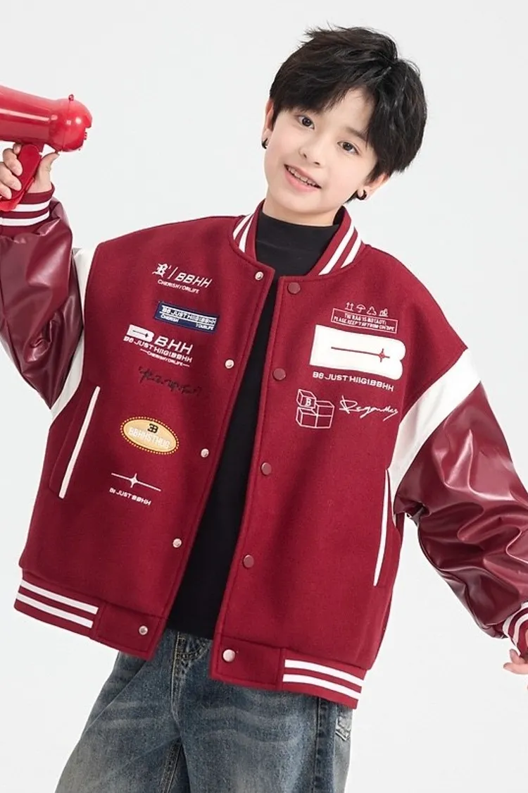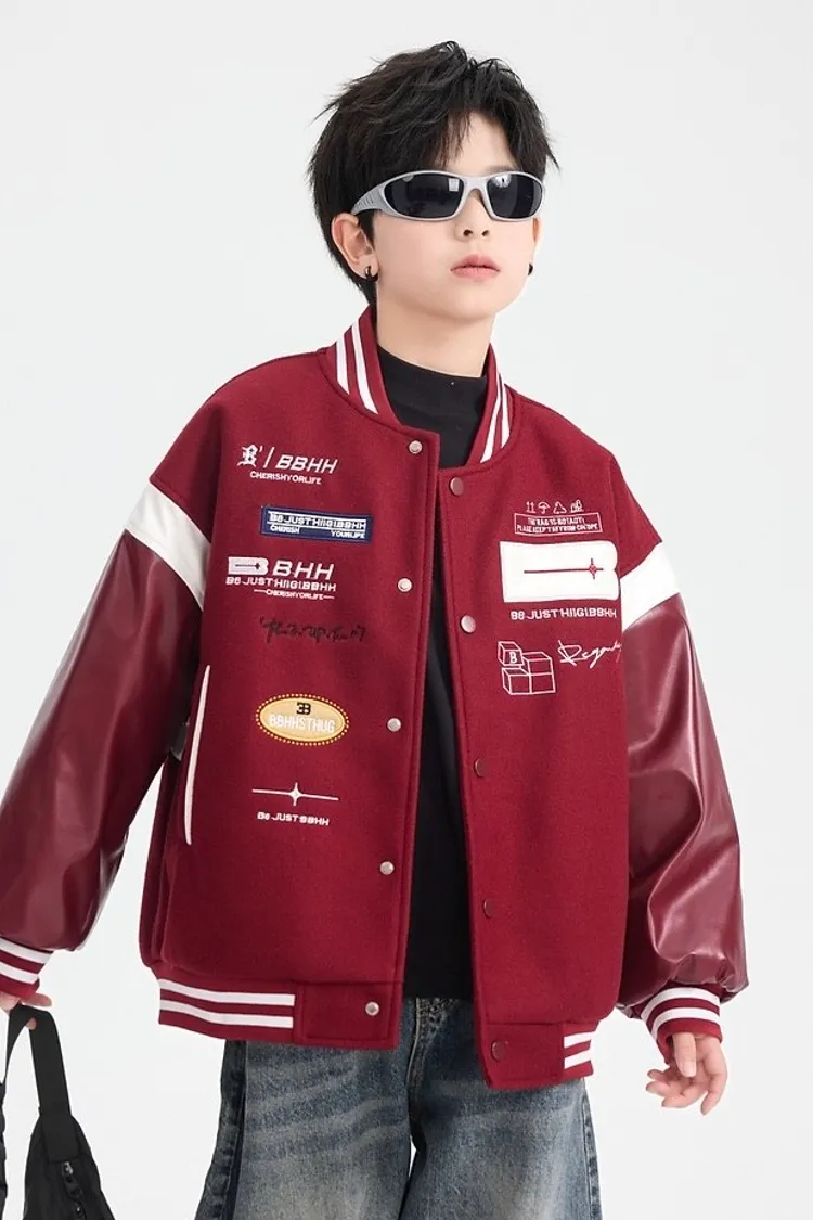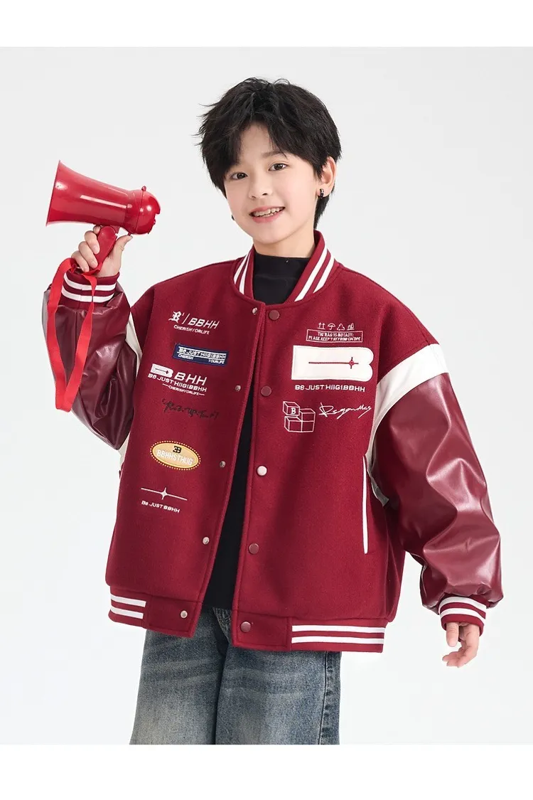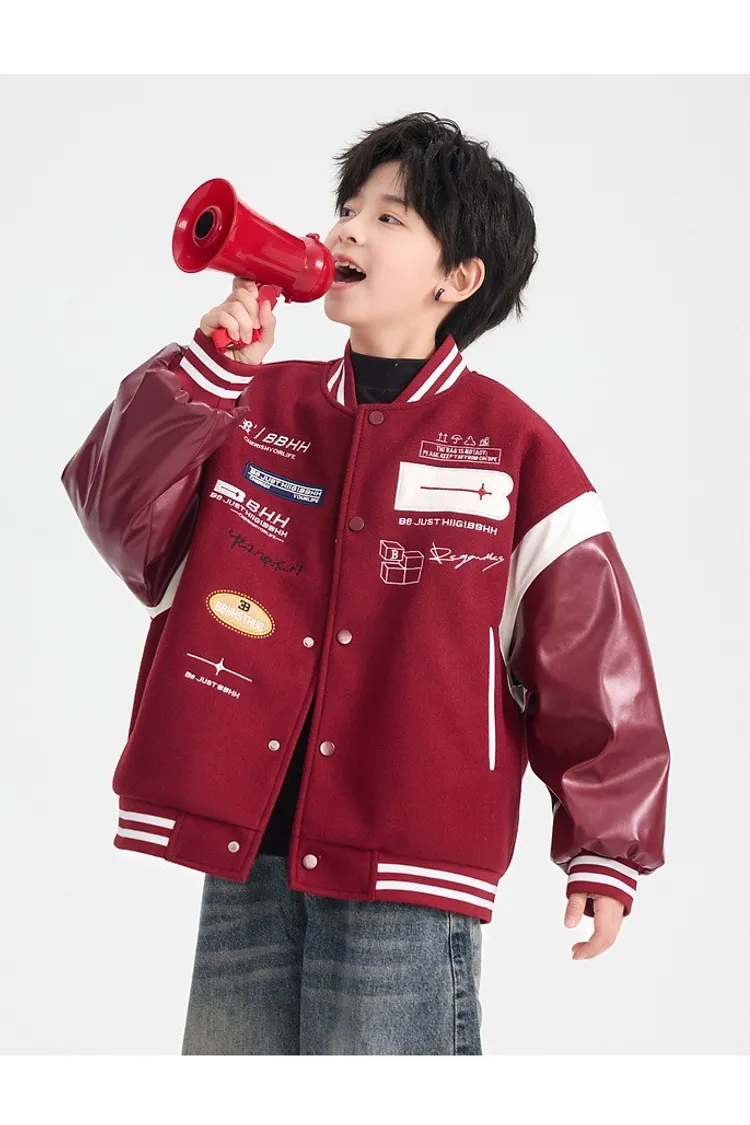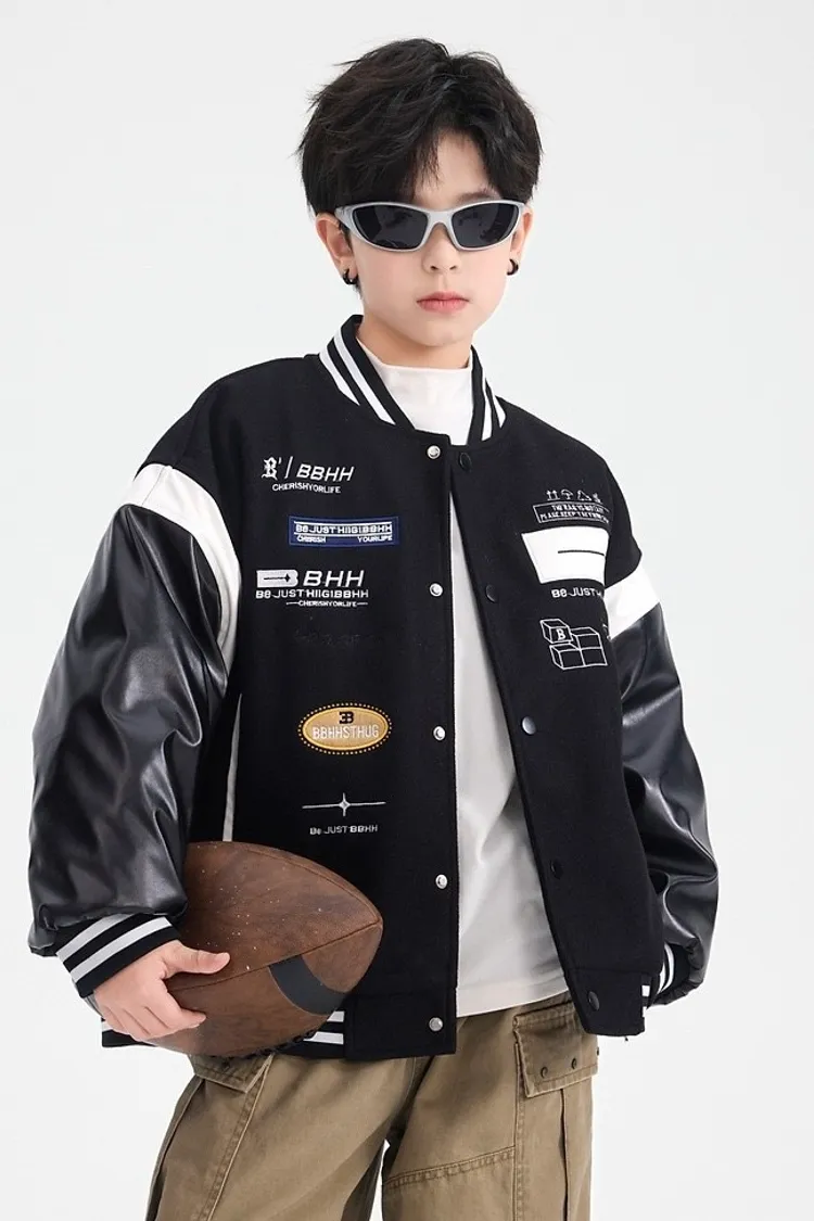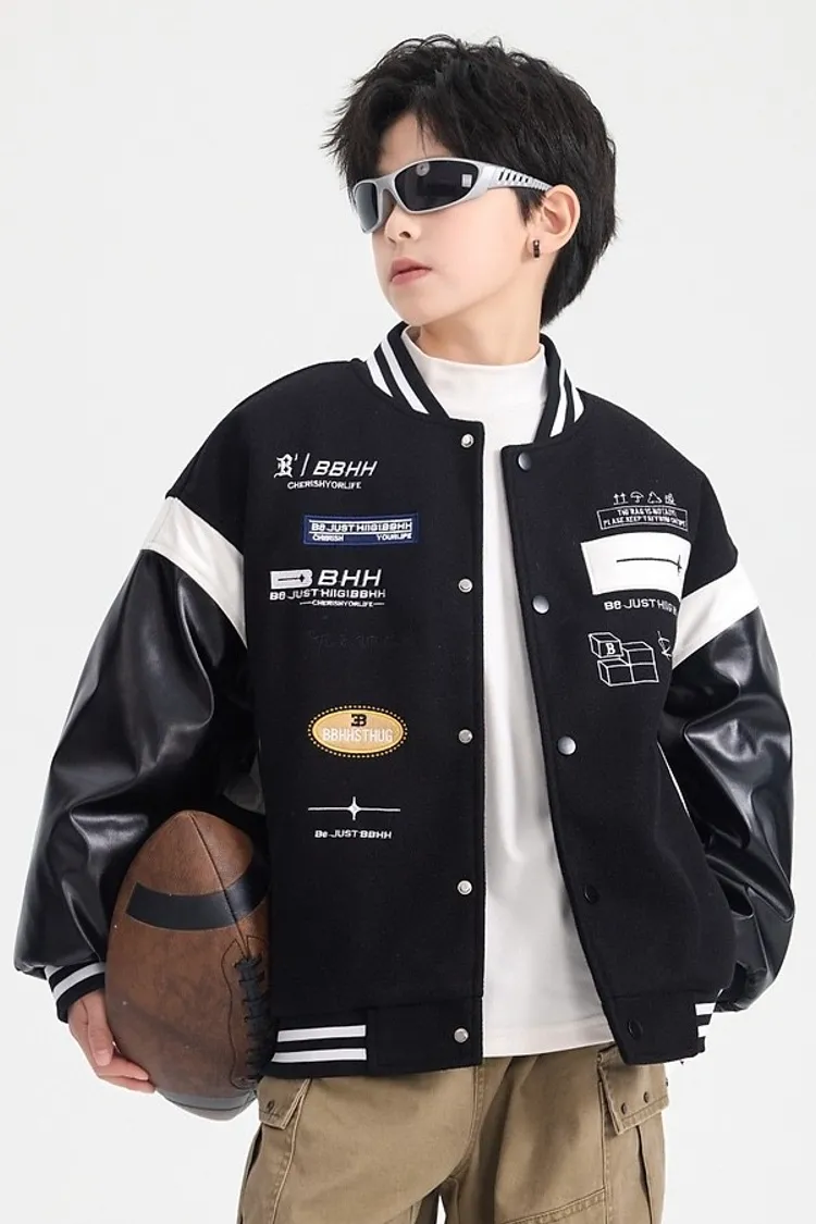 毛呢拼接皮夾棉棒球外套