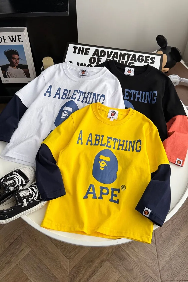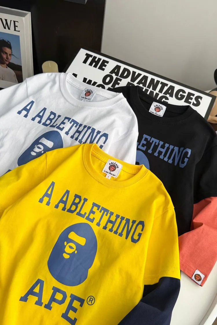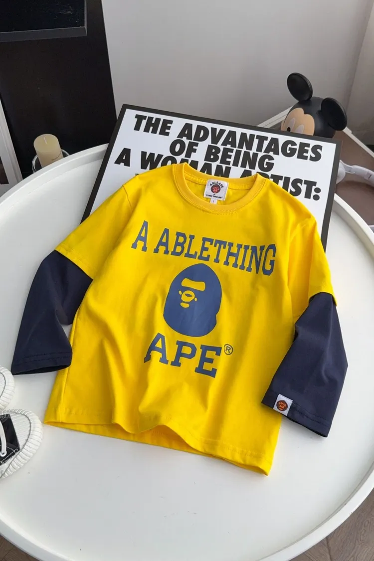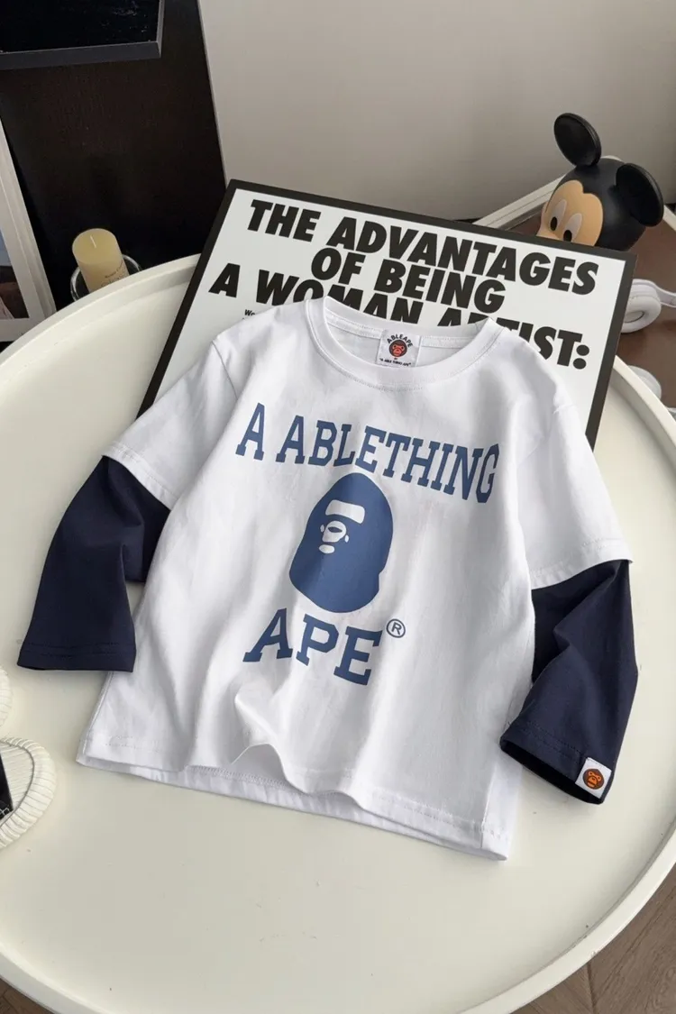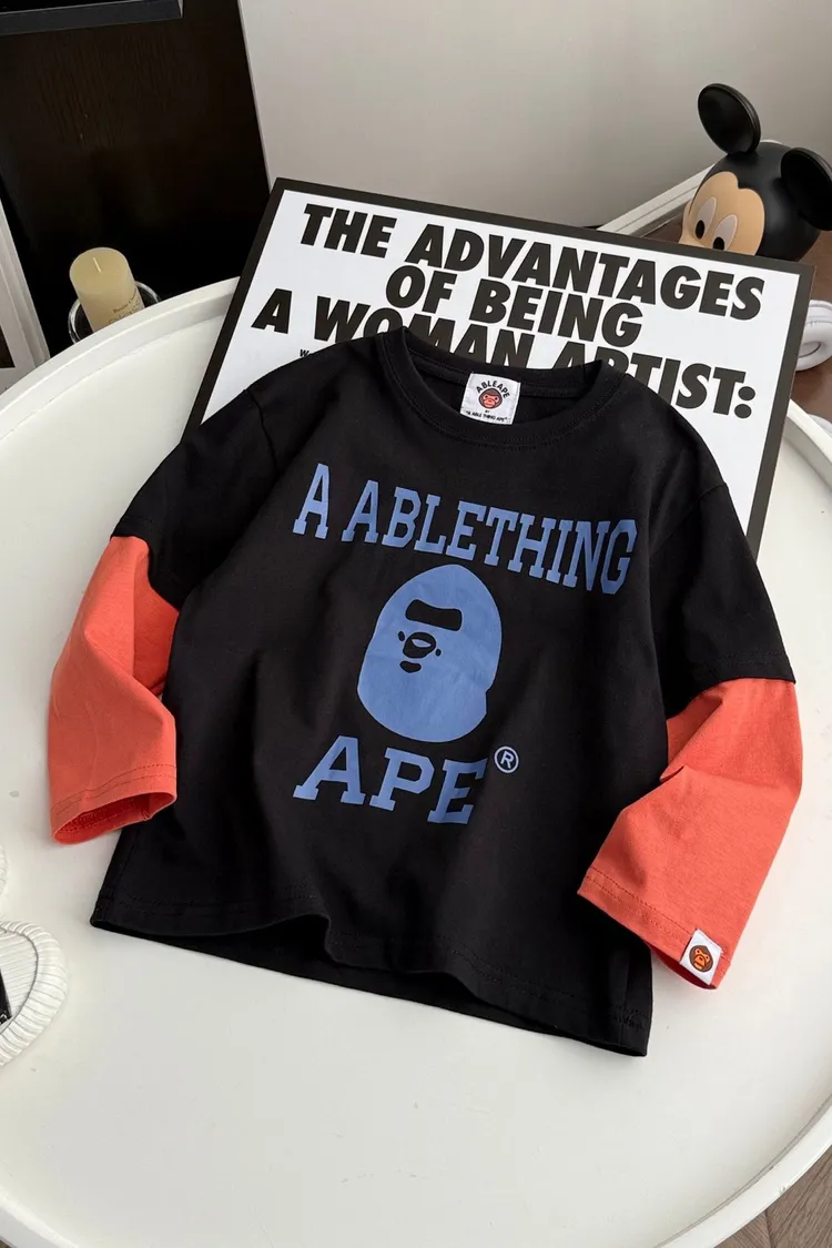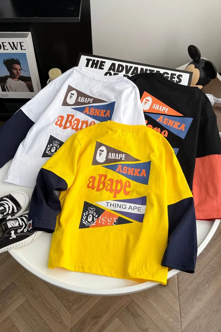 猿家拼袖三角旗幟假兩件TEE