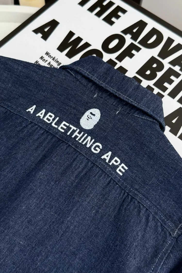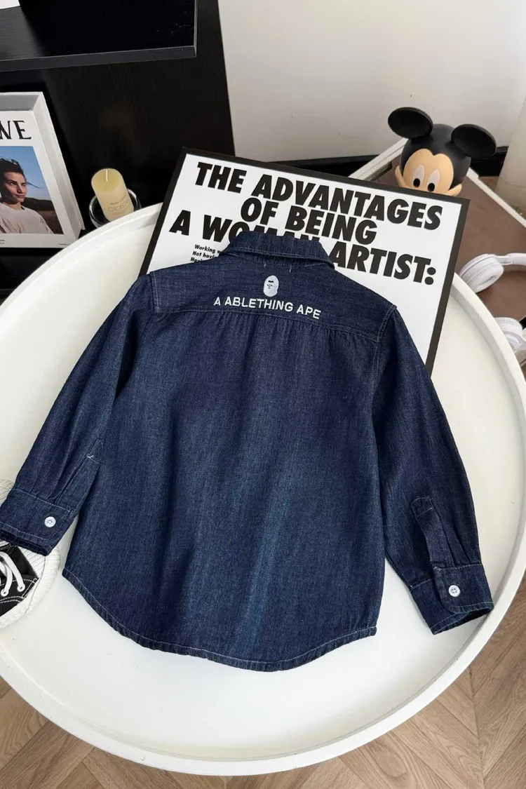 猿家刺繡牛仔襯衫