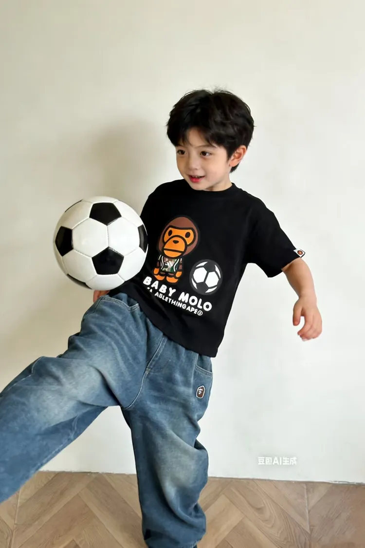 猿猴足球印花短袖TEE