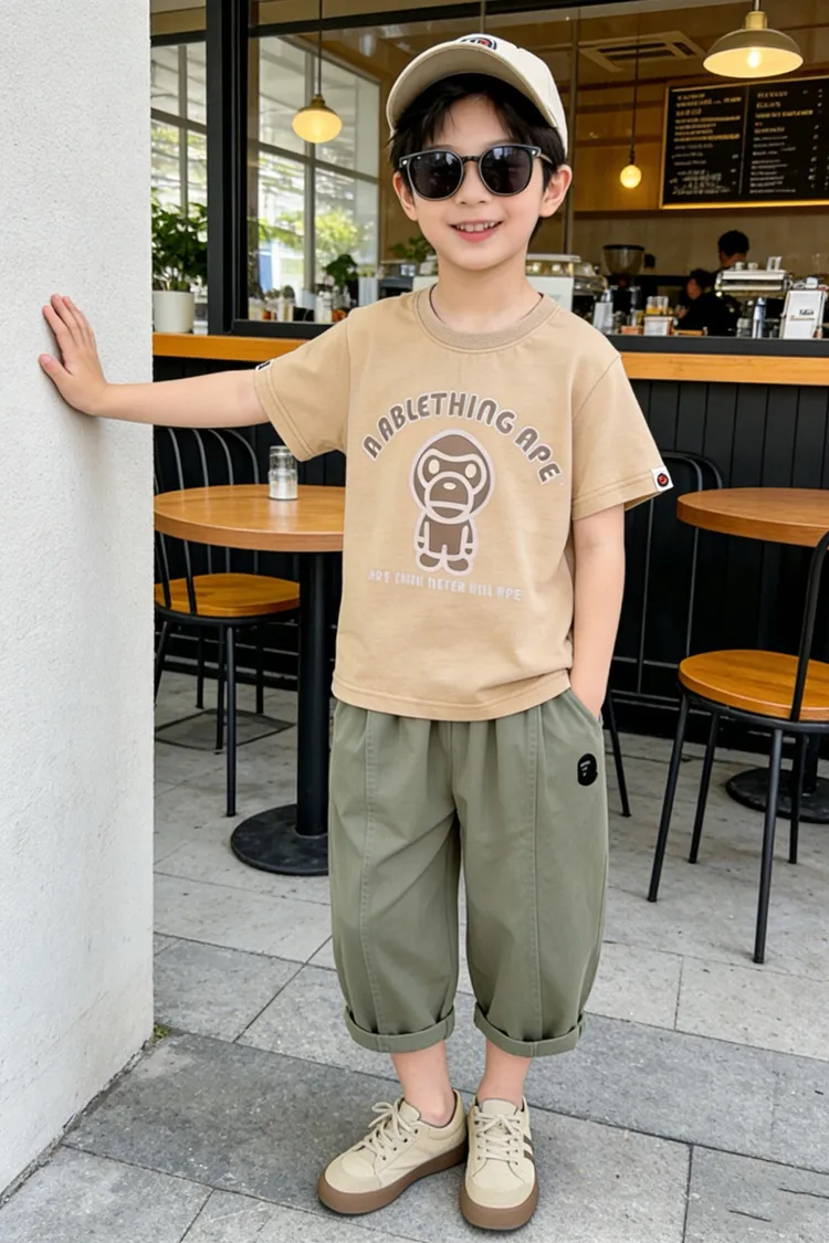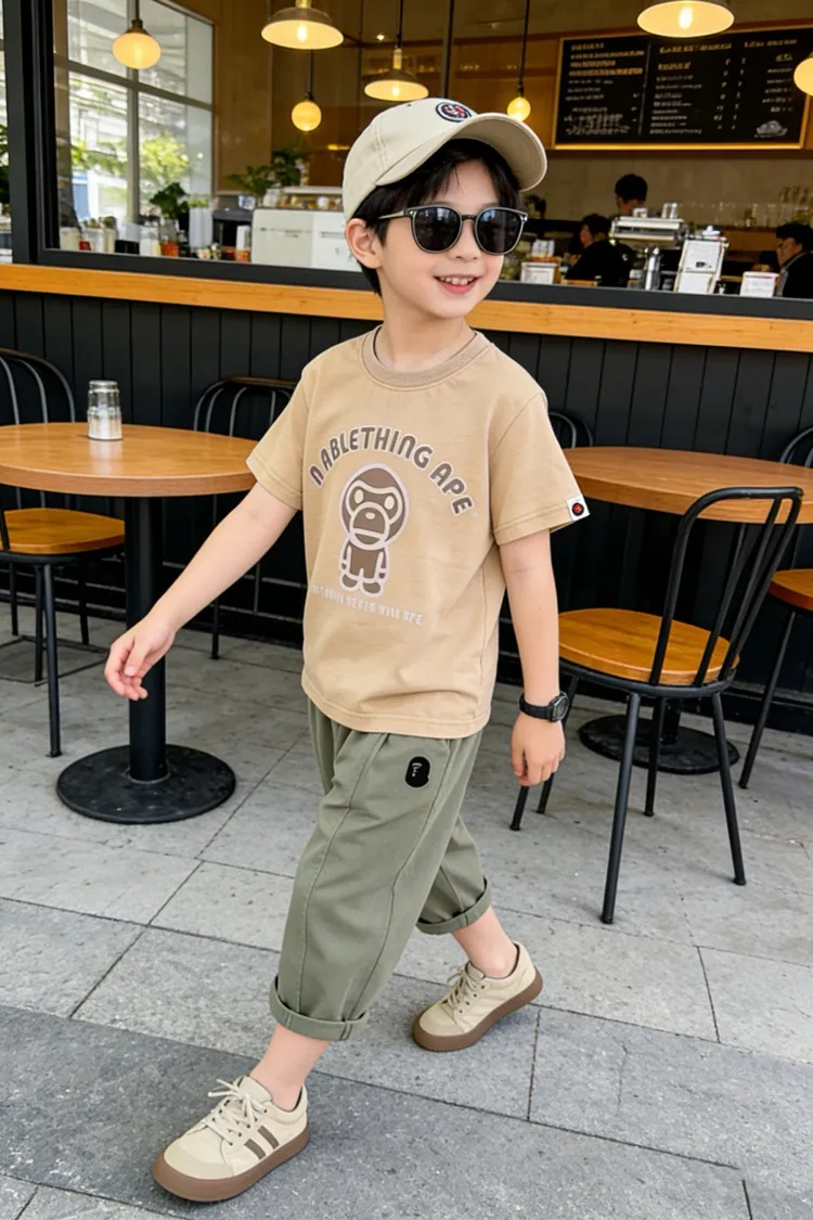 猿猴簡單撞色印花TEE