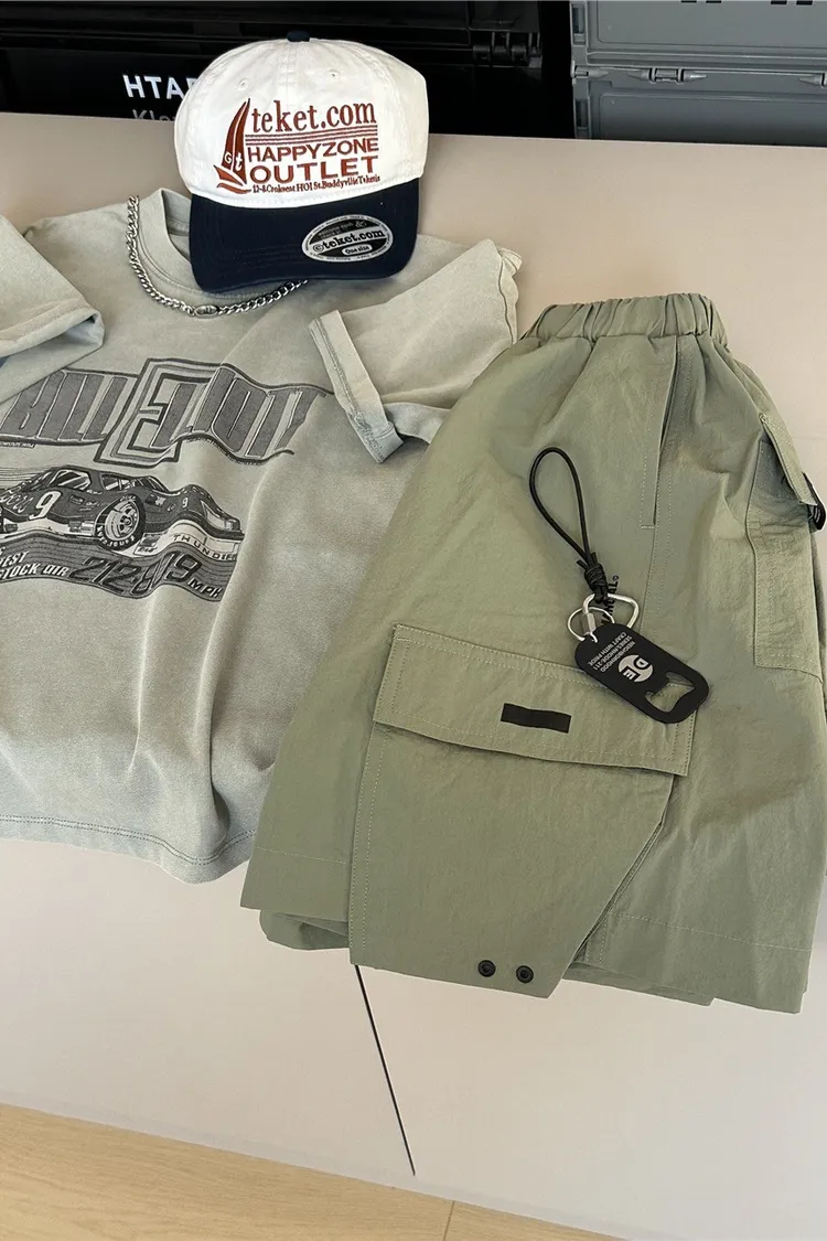 日系雙貼袋工裝短褲