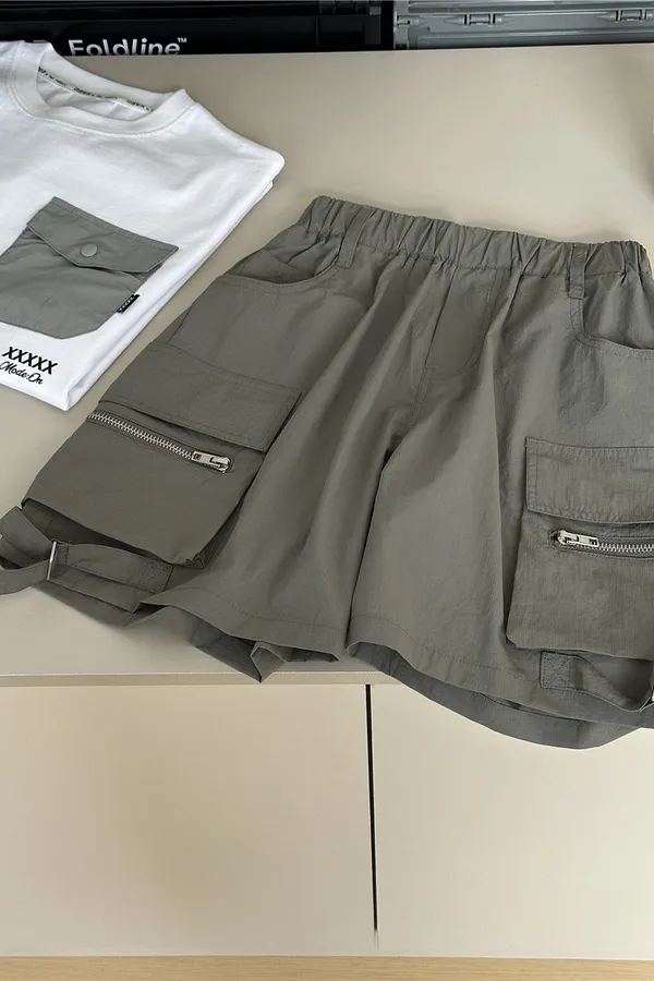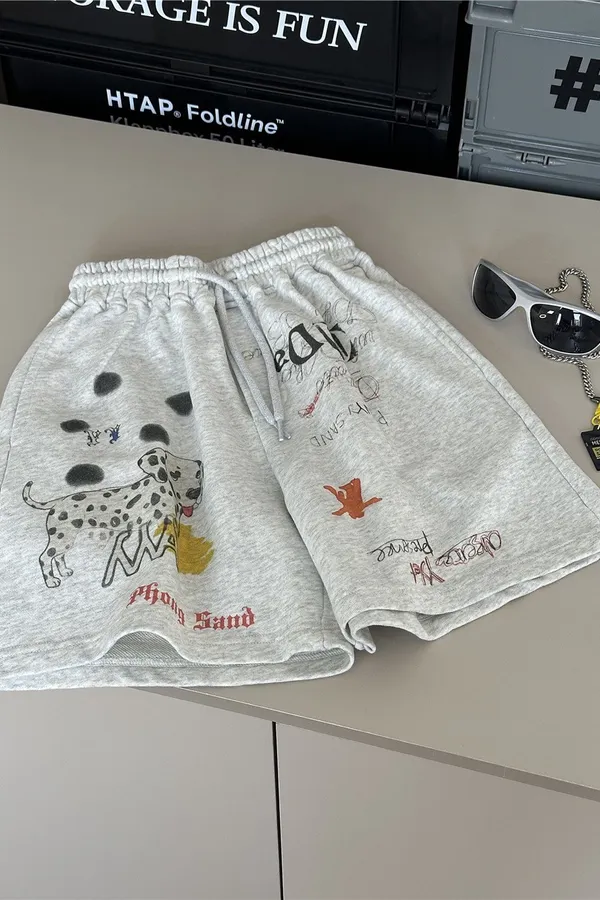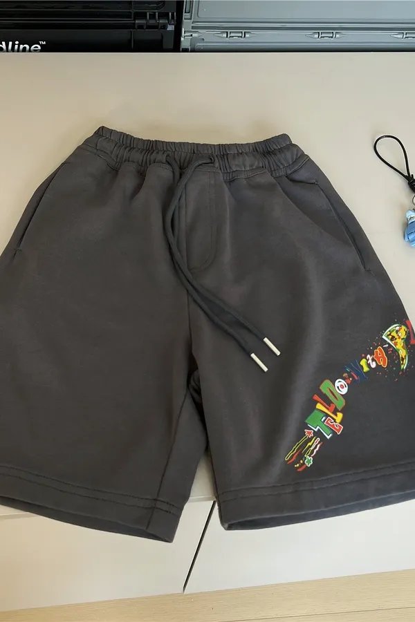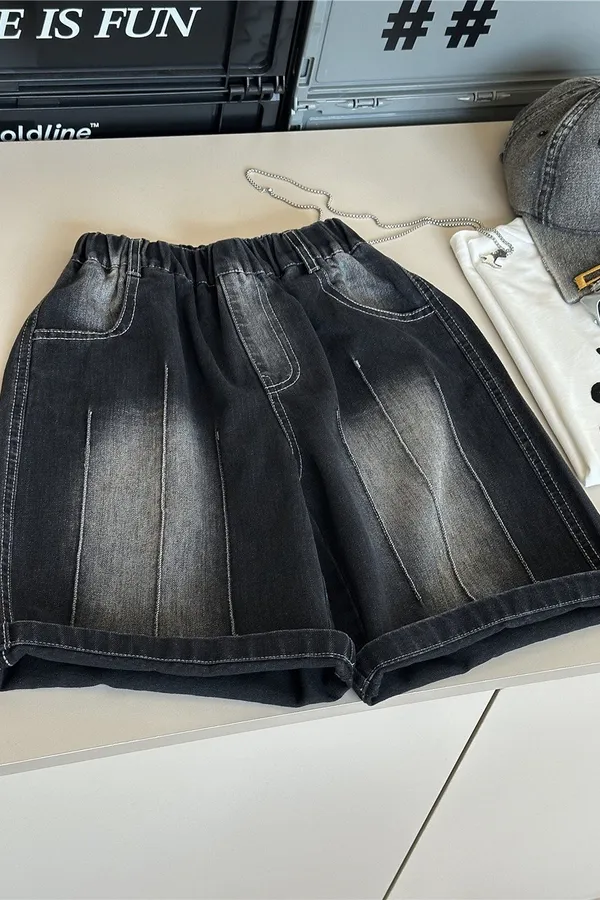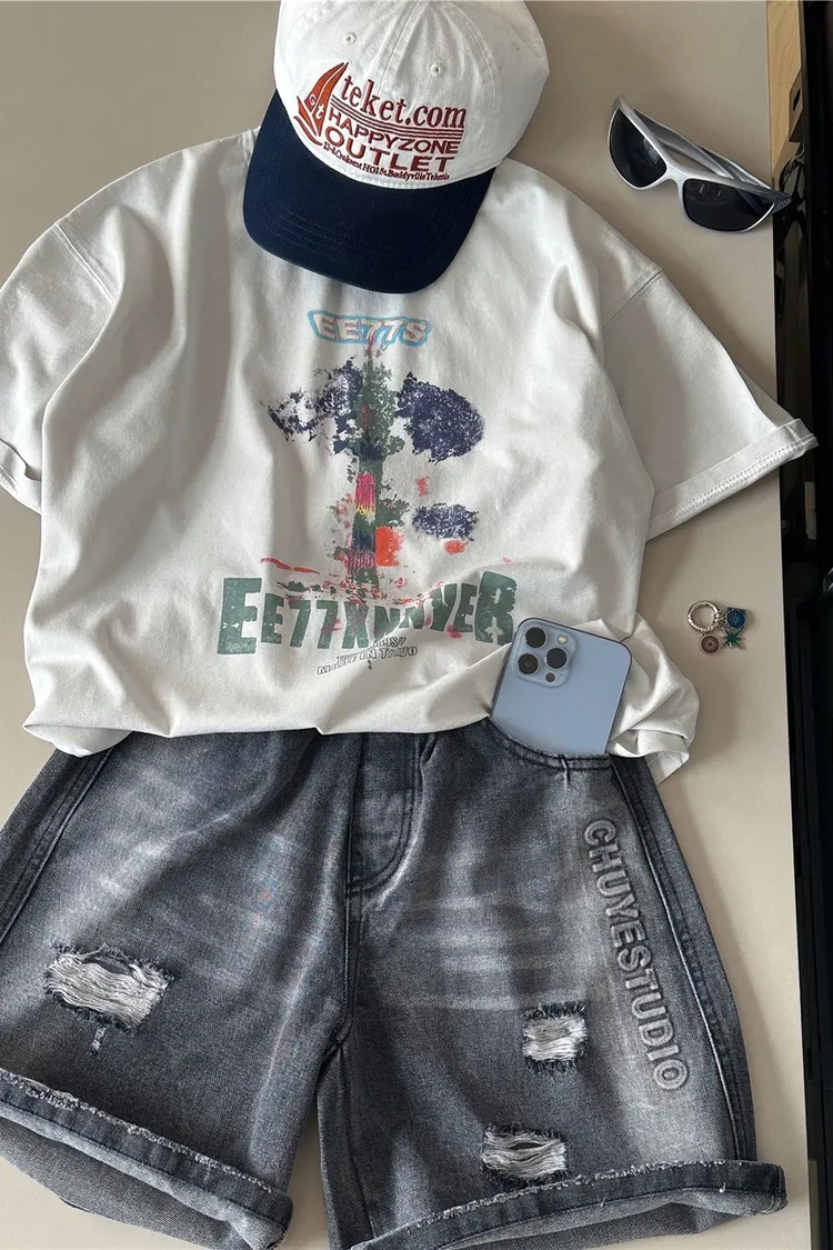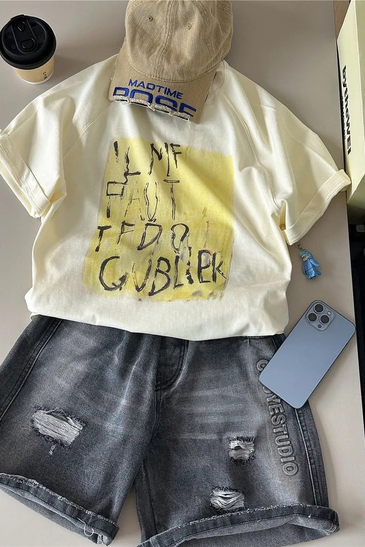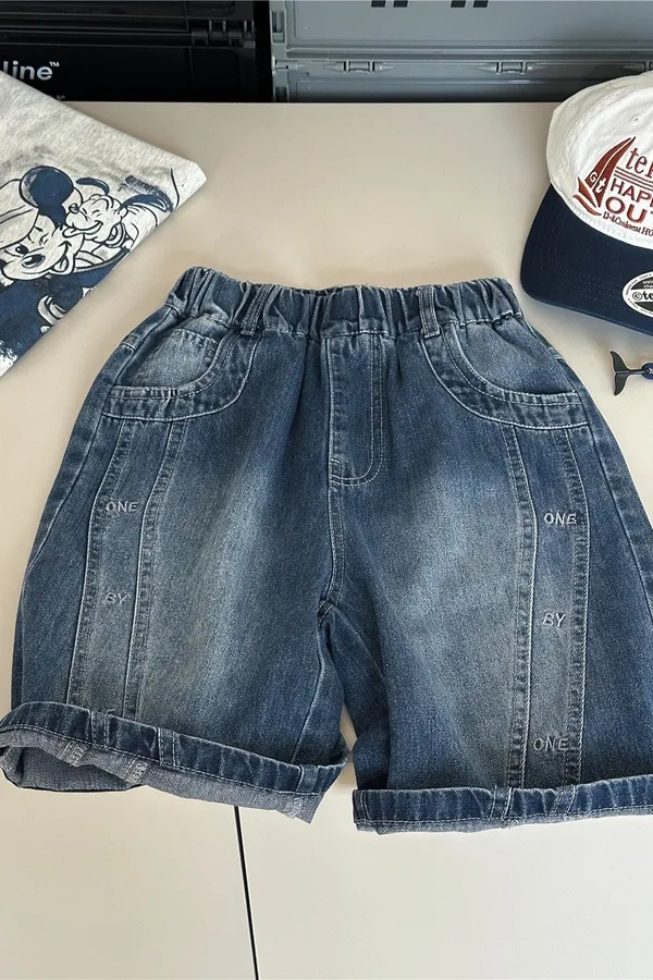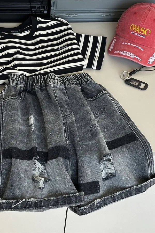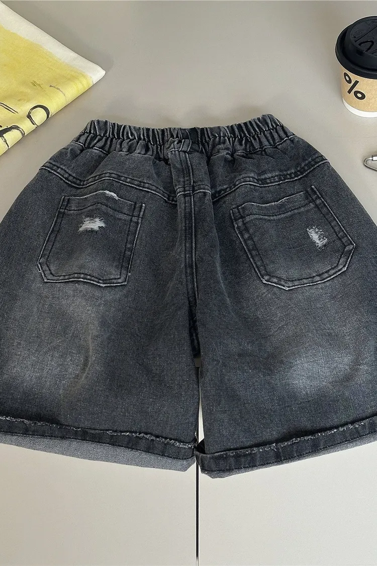 字母壓印破洞牛仔五分褲