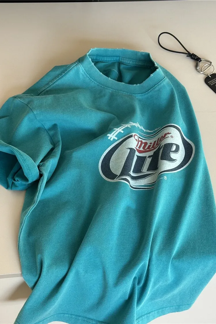 圈圈字母炒色復古TEE