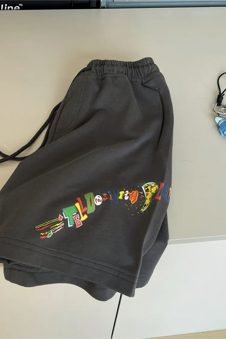 塗鴉印花柔感運動五分褲