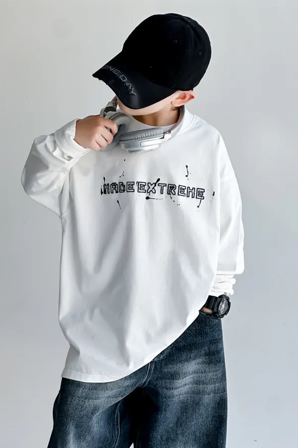 斑駁字母全棉長袖TEE