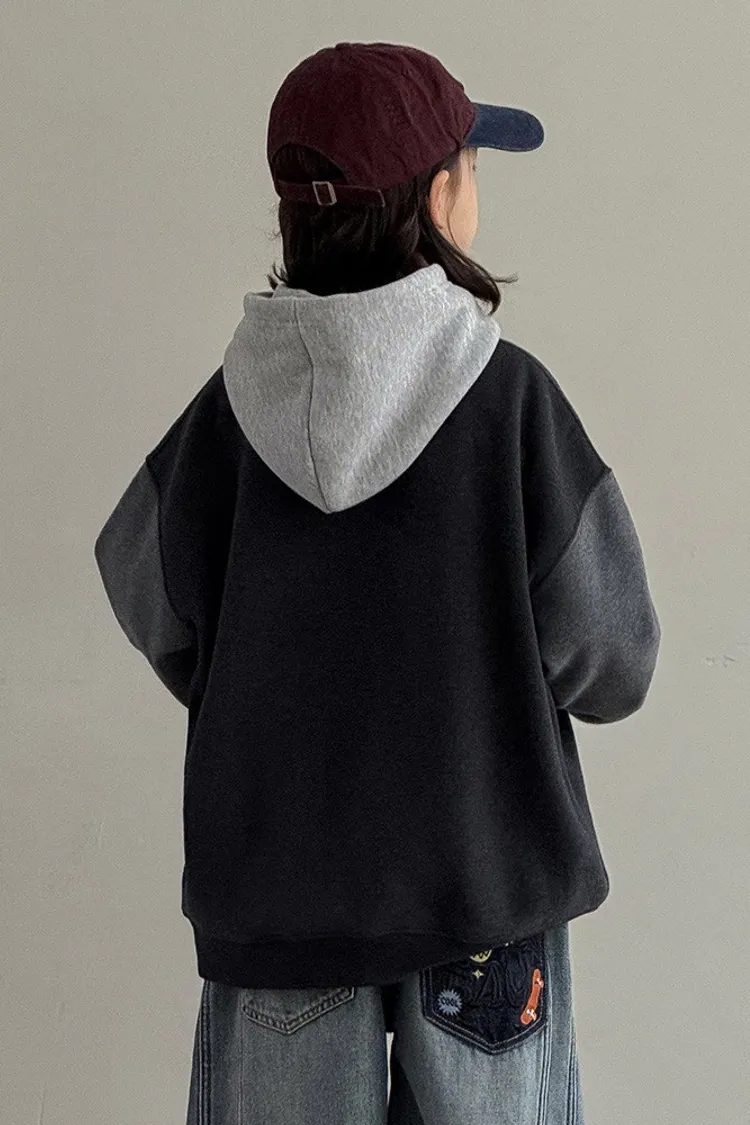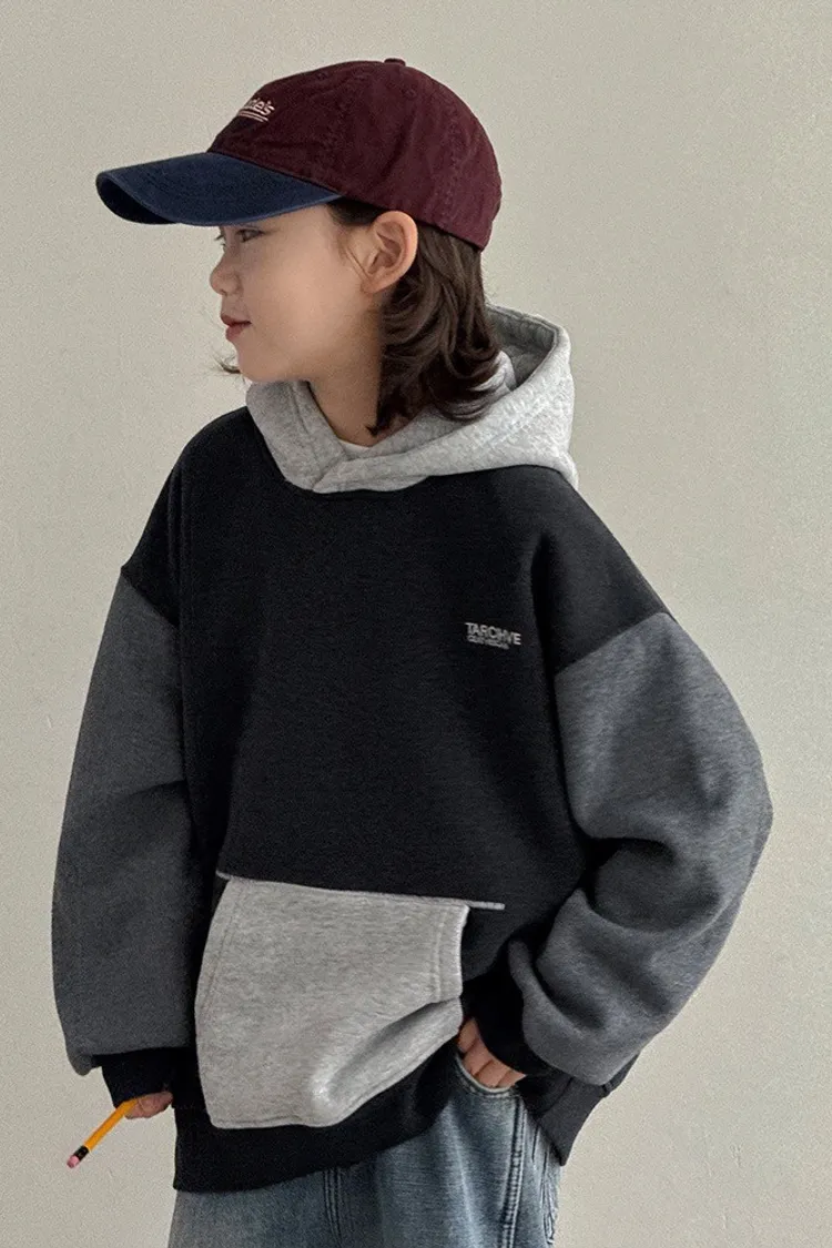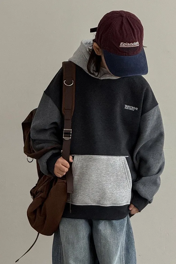 三拼色大口袋加絨帽TEE