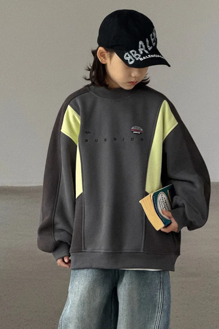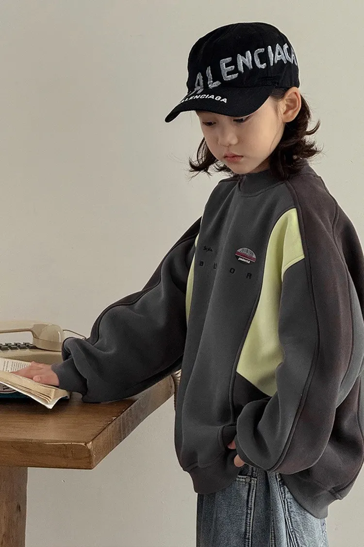 美式拼色字母加絨大學TEE