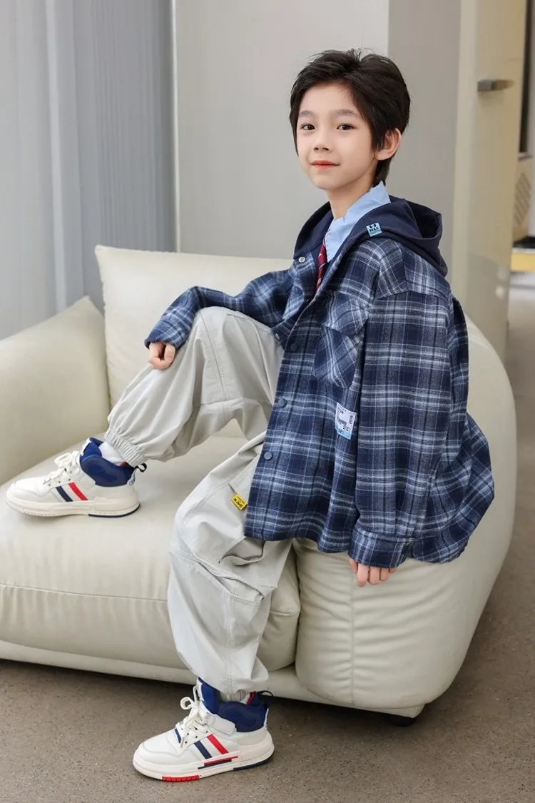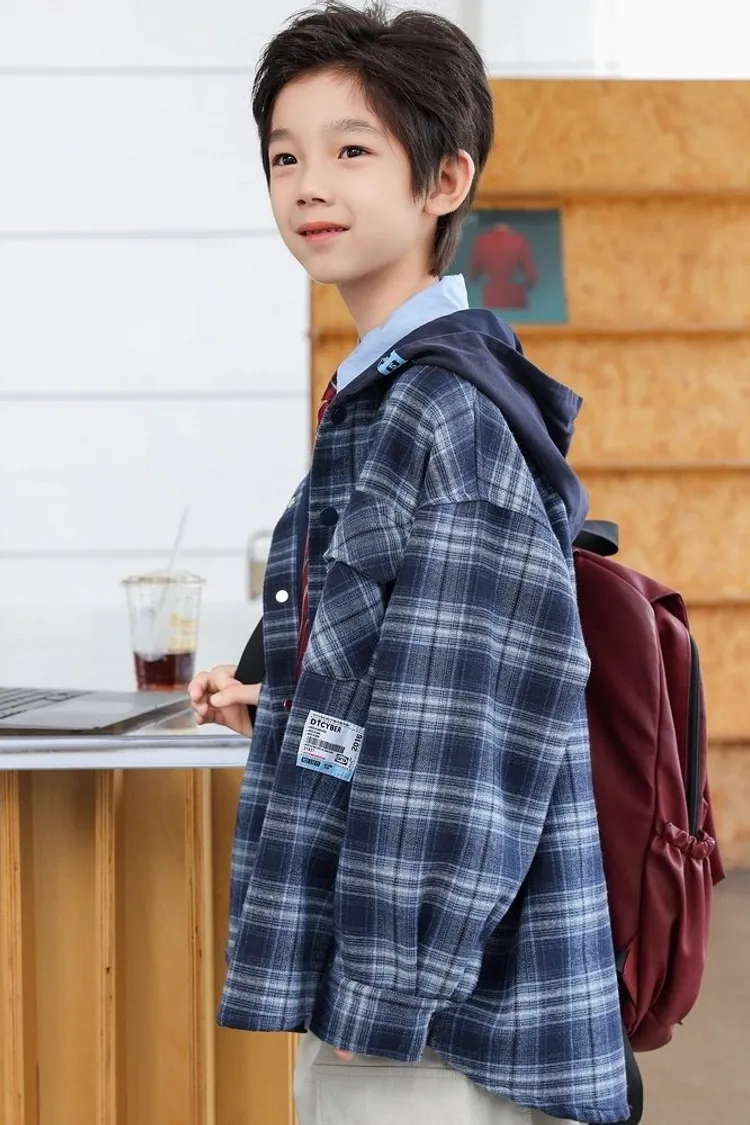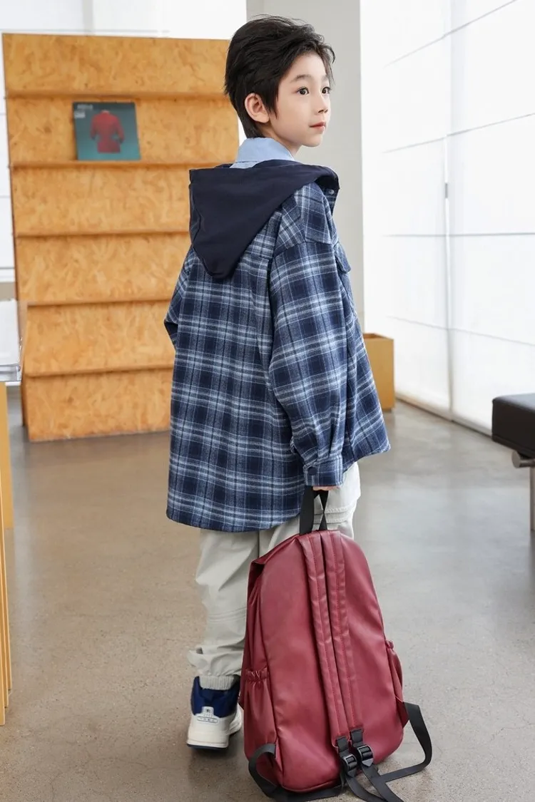 棉柔格子毛呢連帽外套