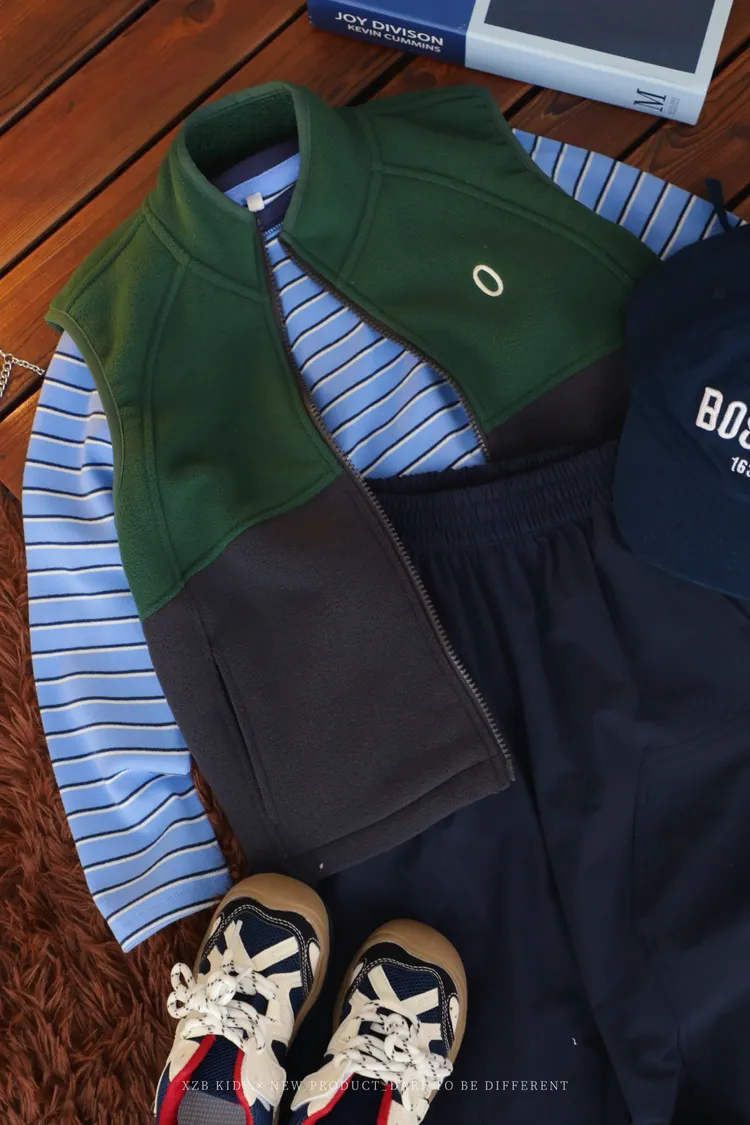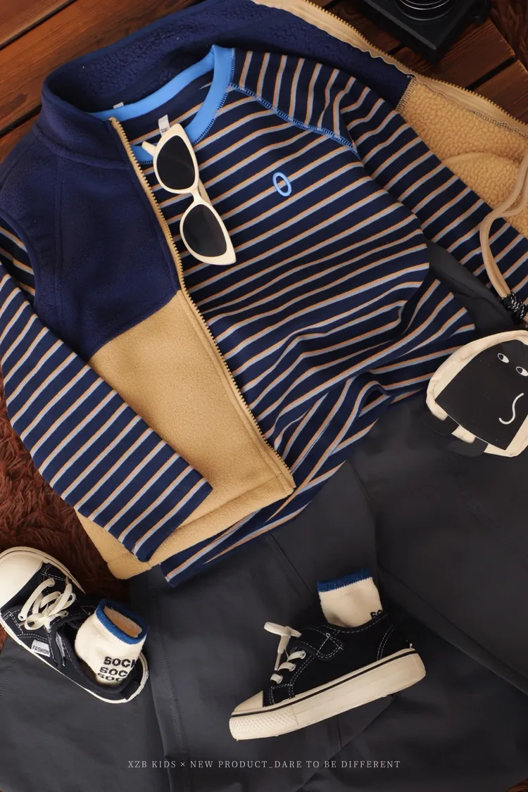 韓系刺繡條紋TEE+拼色背心