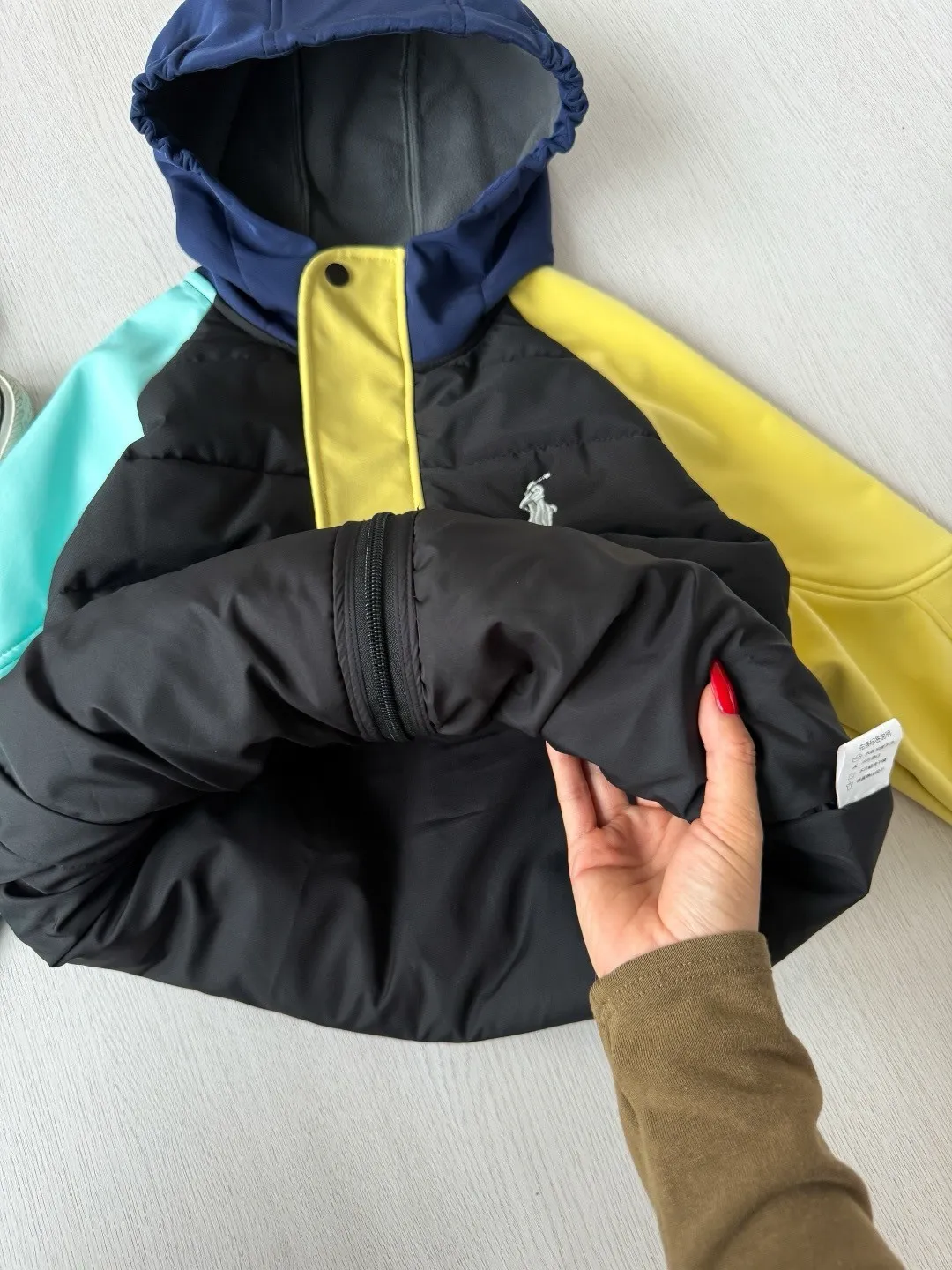 美式刺繡3M雪麗暖絨拼色夾棉外套