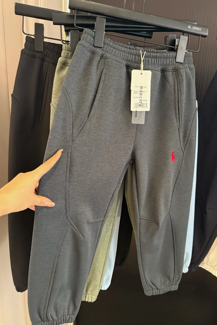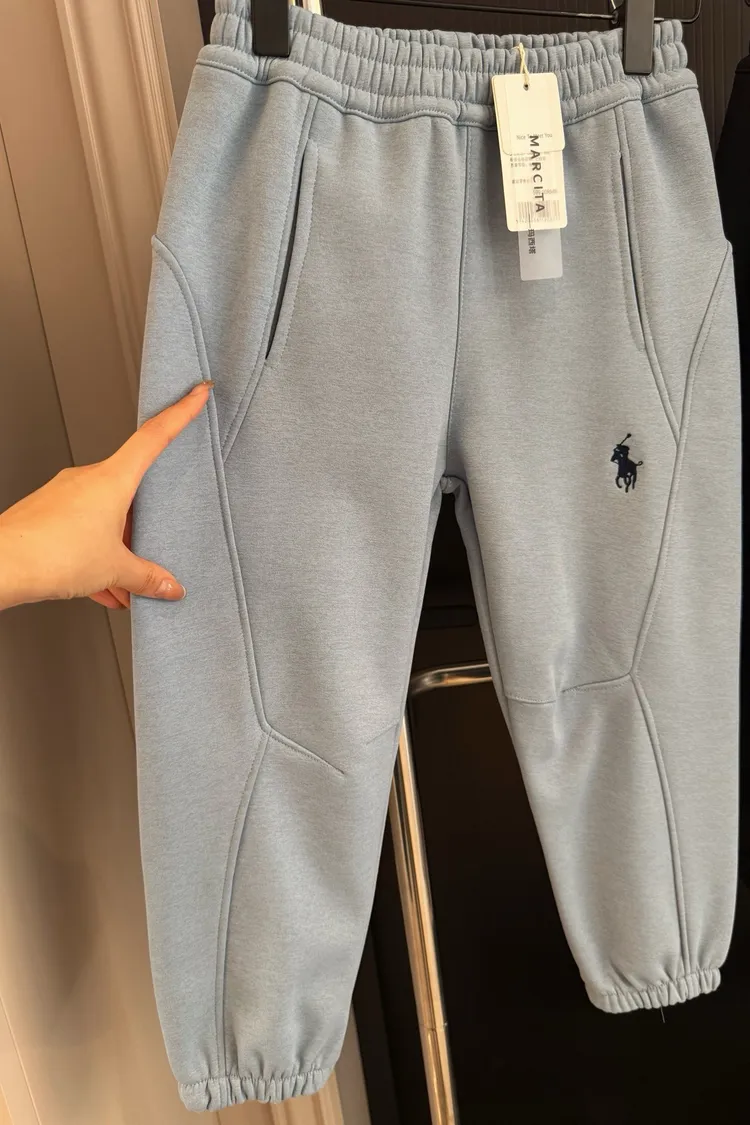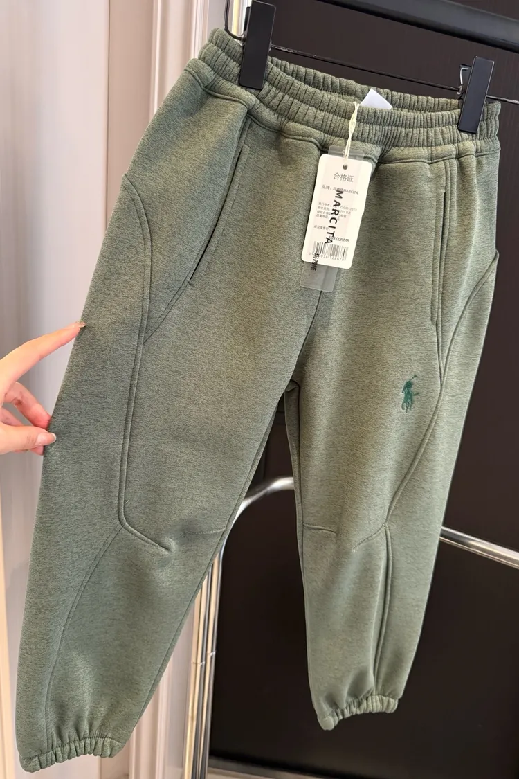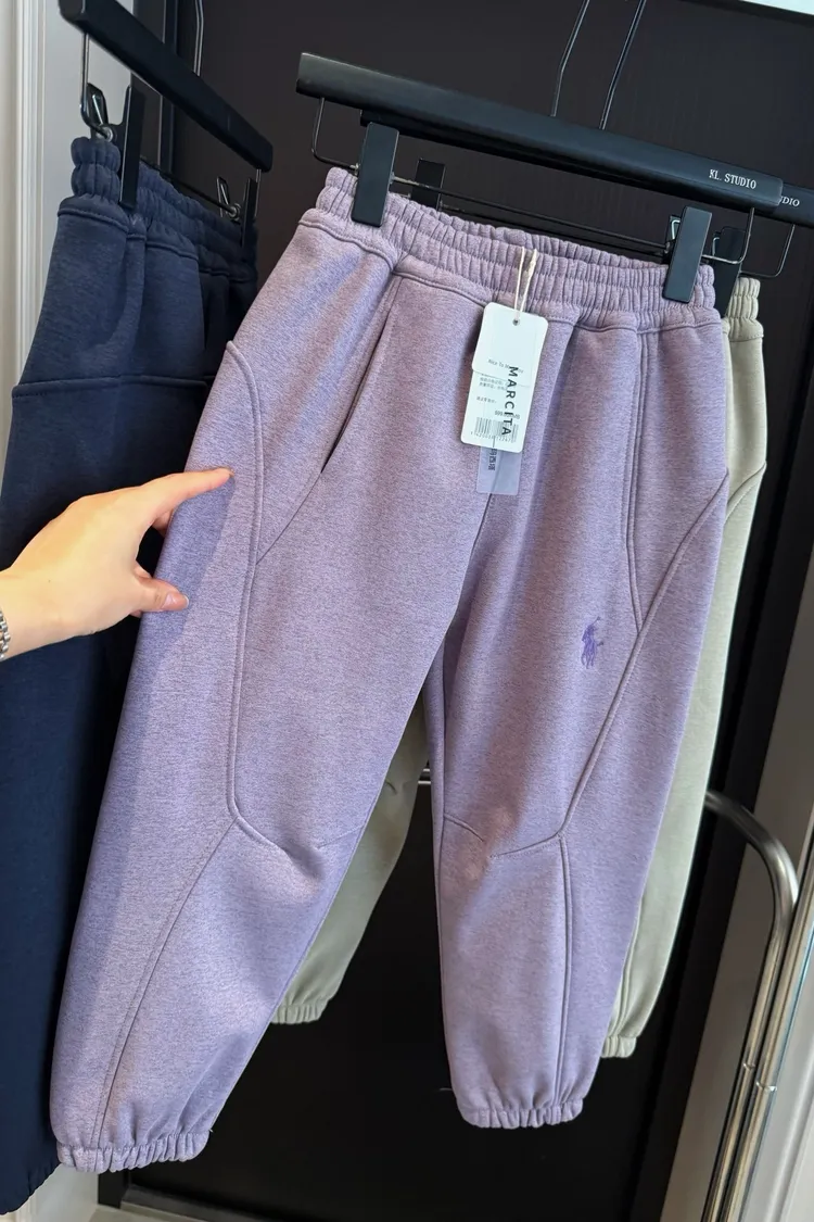 美式刺繡加絨防風休閒褲