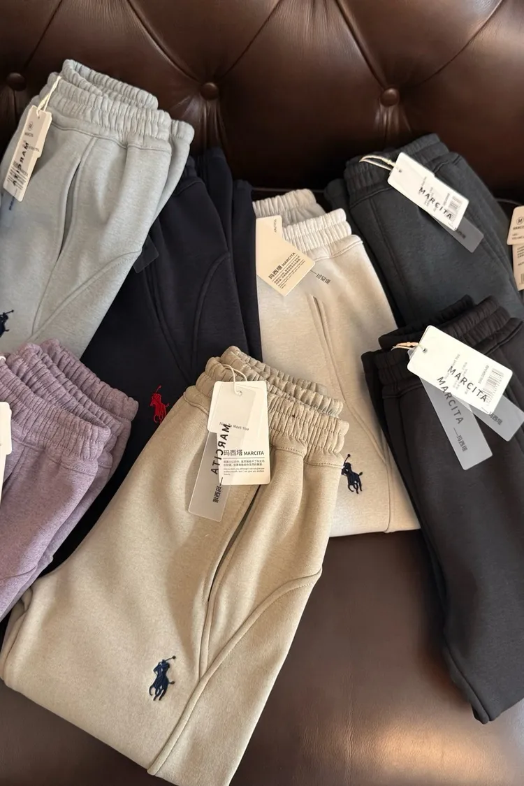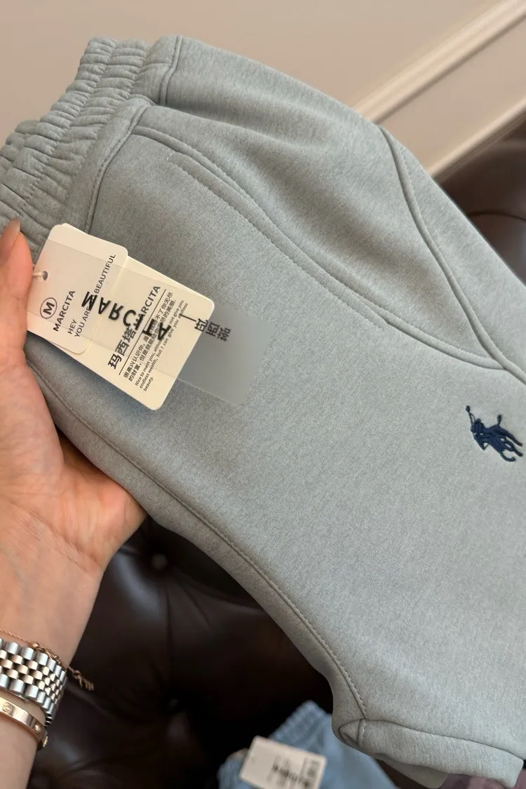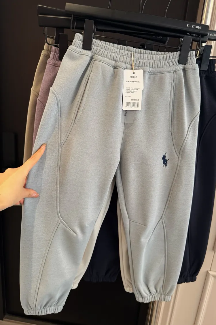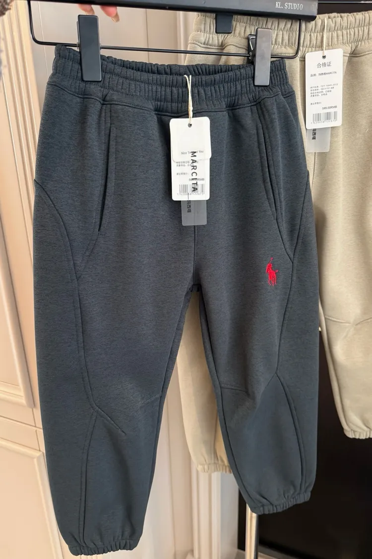 美式刺繡加絨防風休閒褲