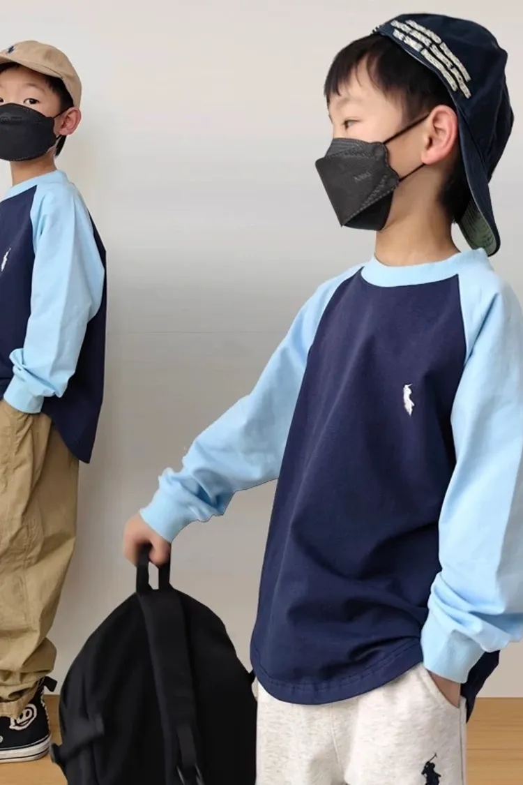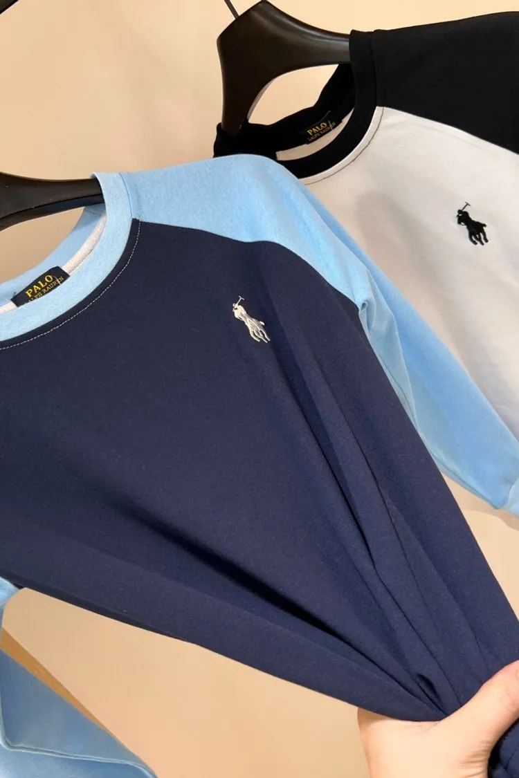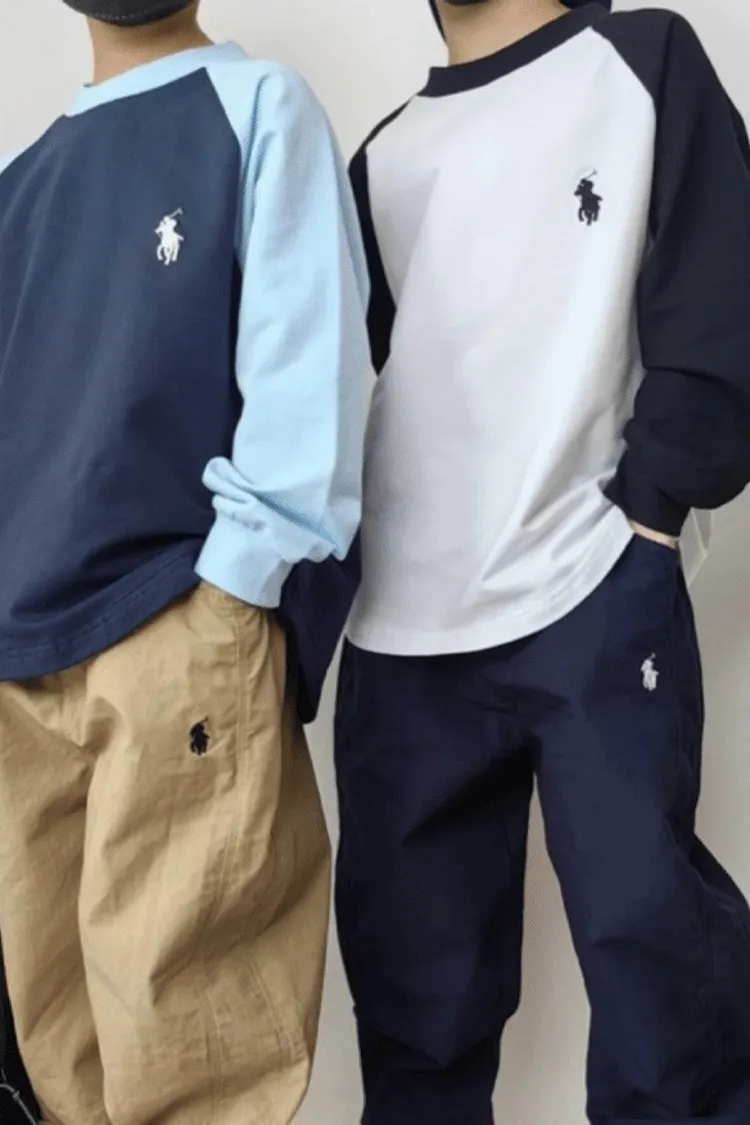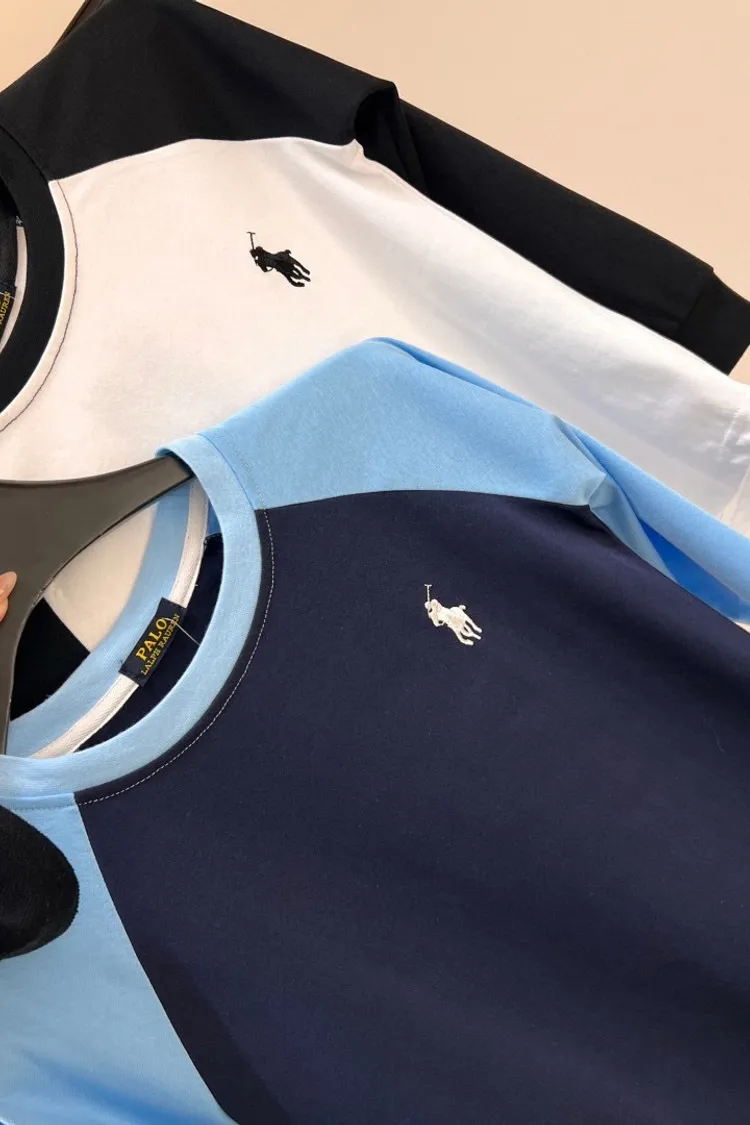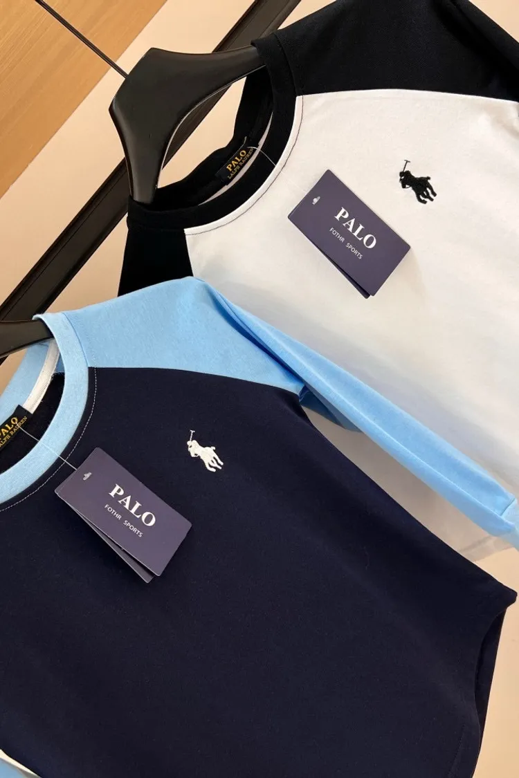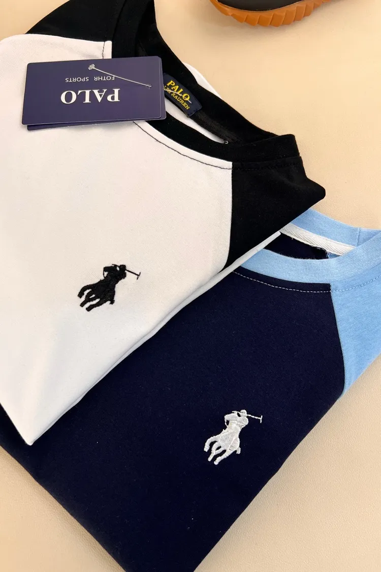 刺繡拼袖純棉TEE