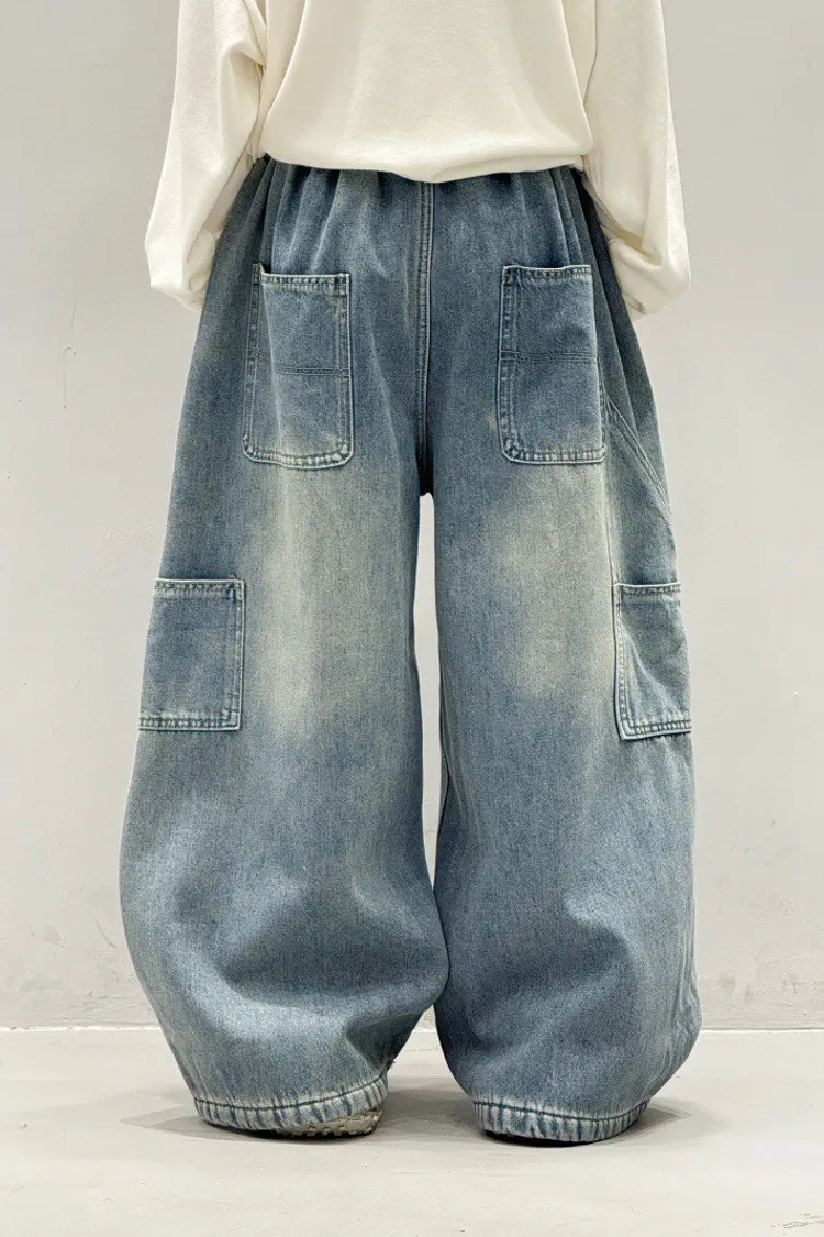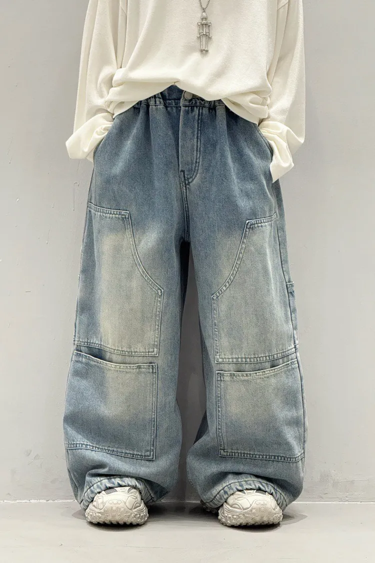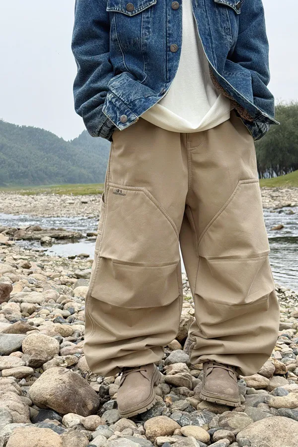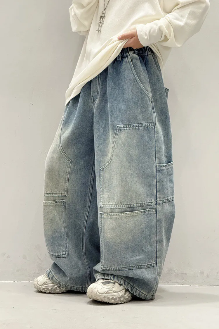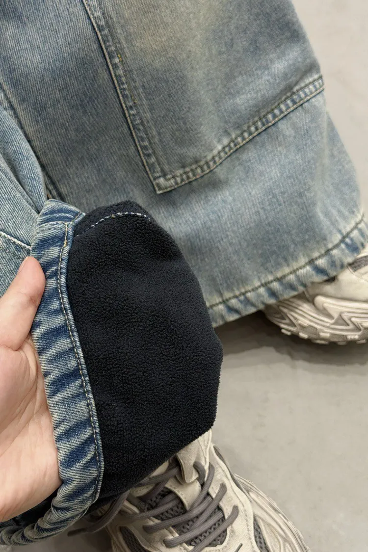 造型感個性加絨工裝牛仔褲