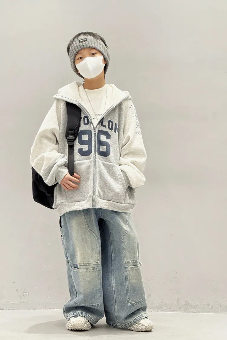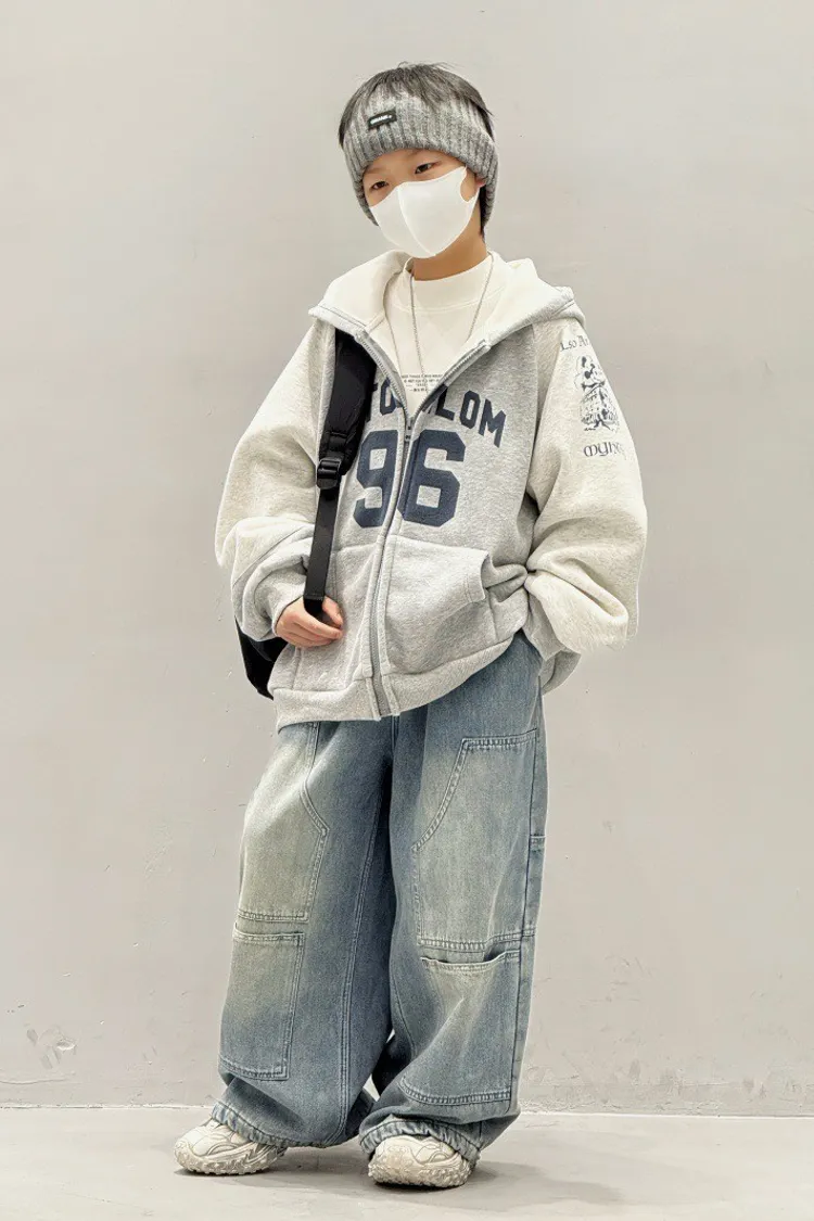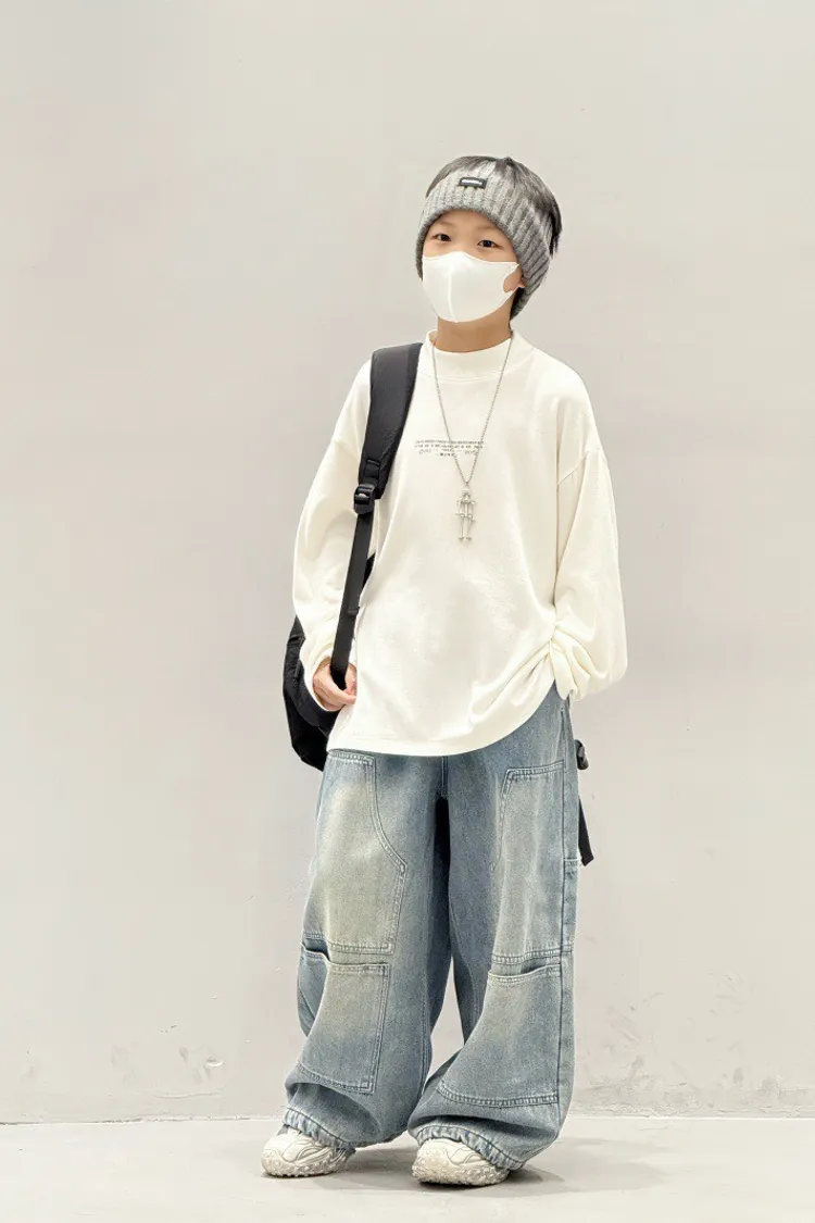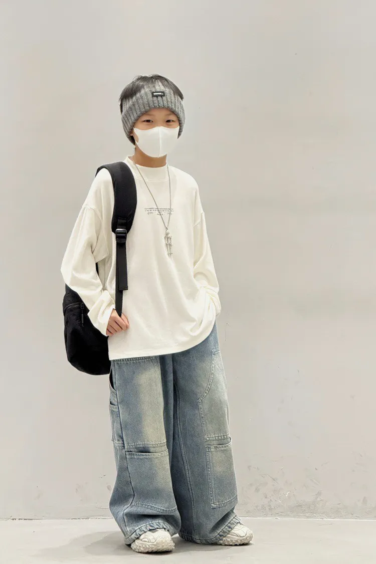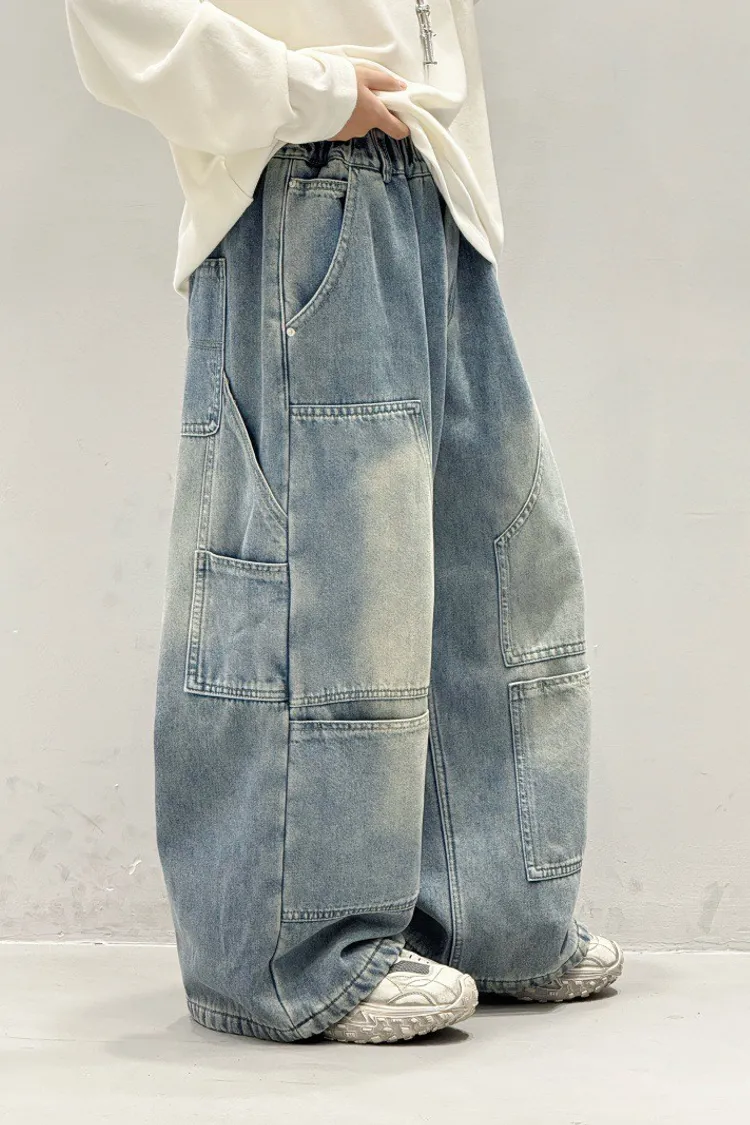 造型感個性加絨工裝牛仔褲
