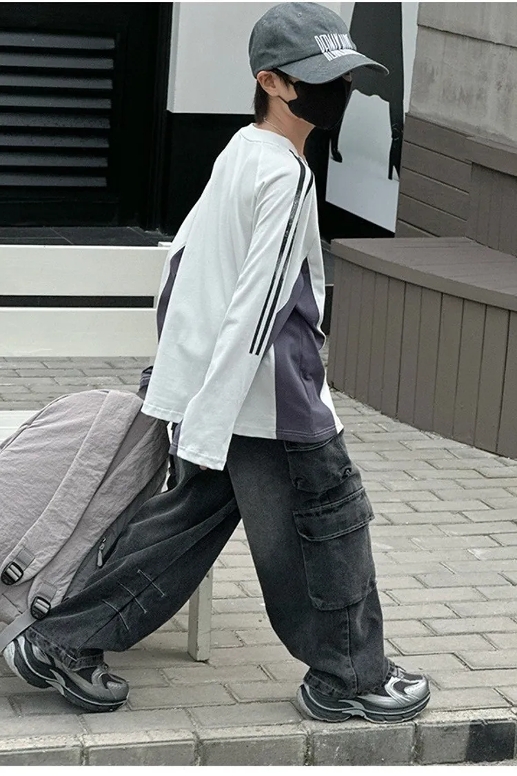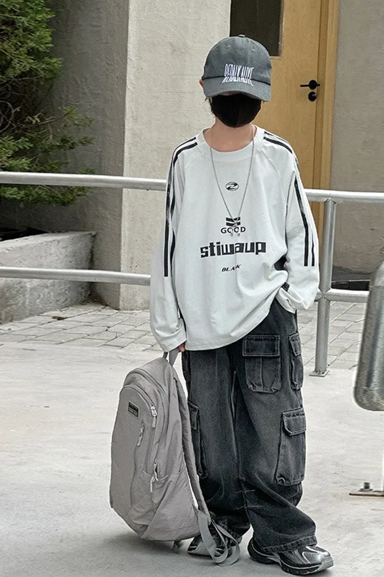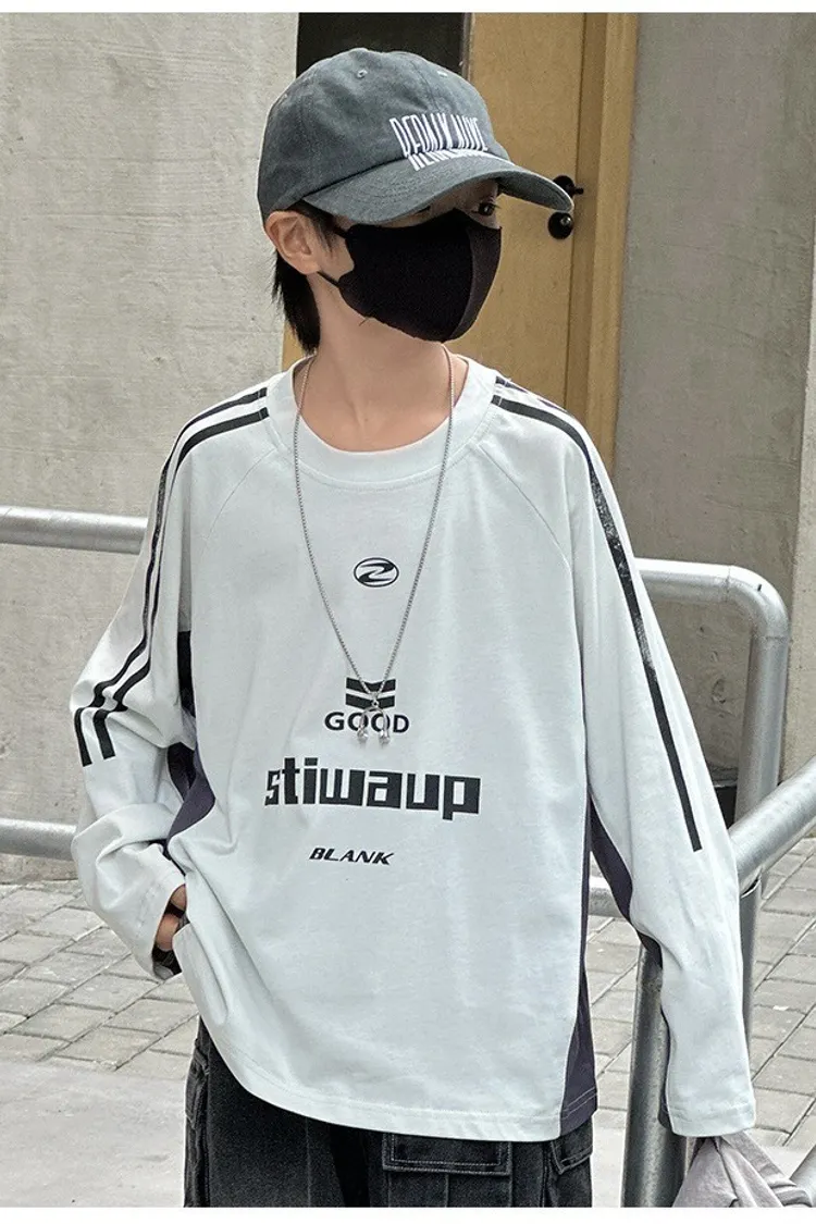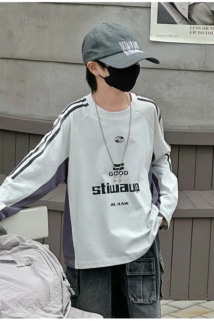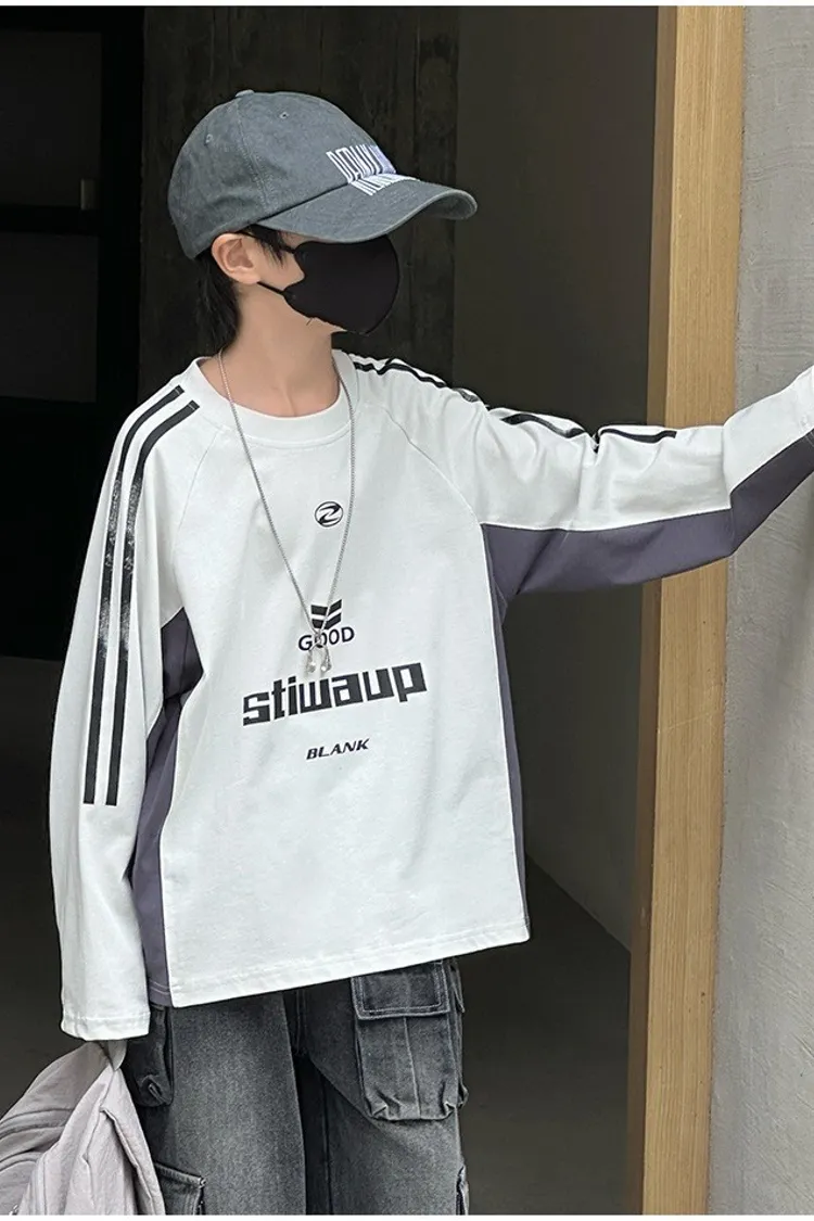 美式運動風撞色拼條TEE