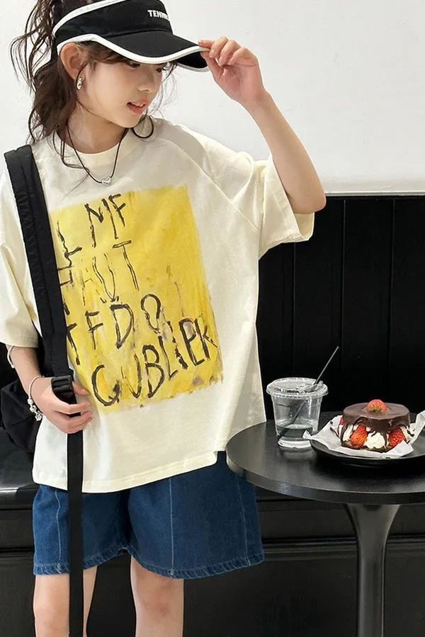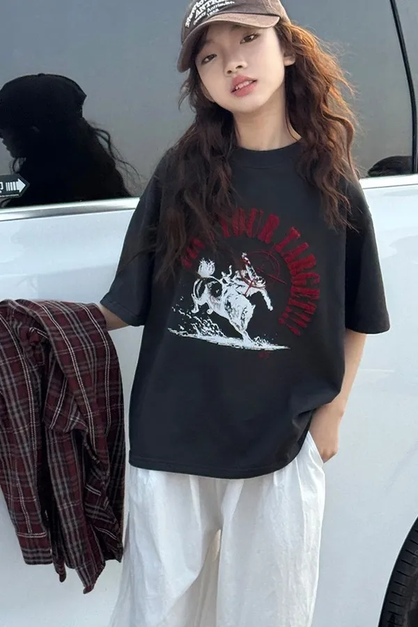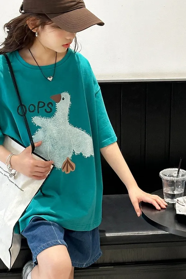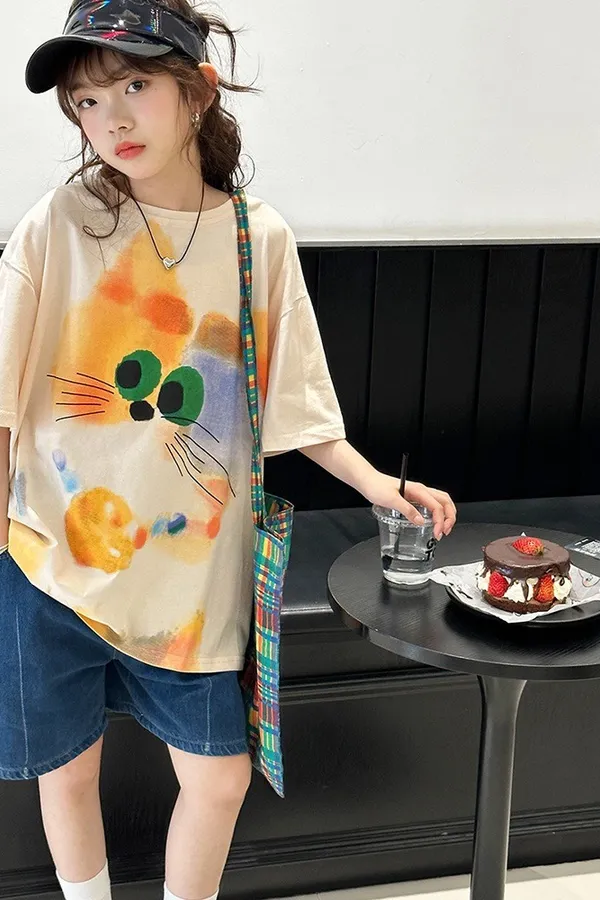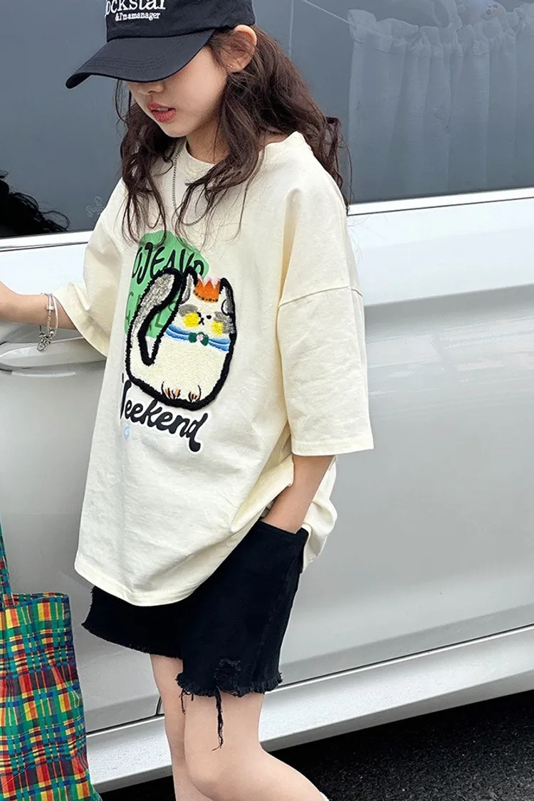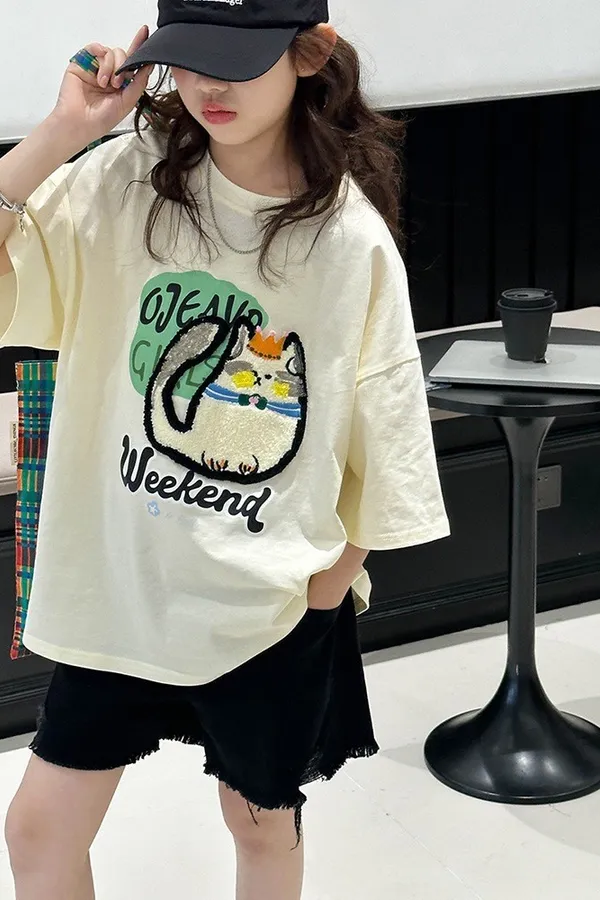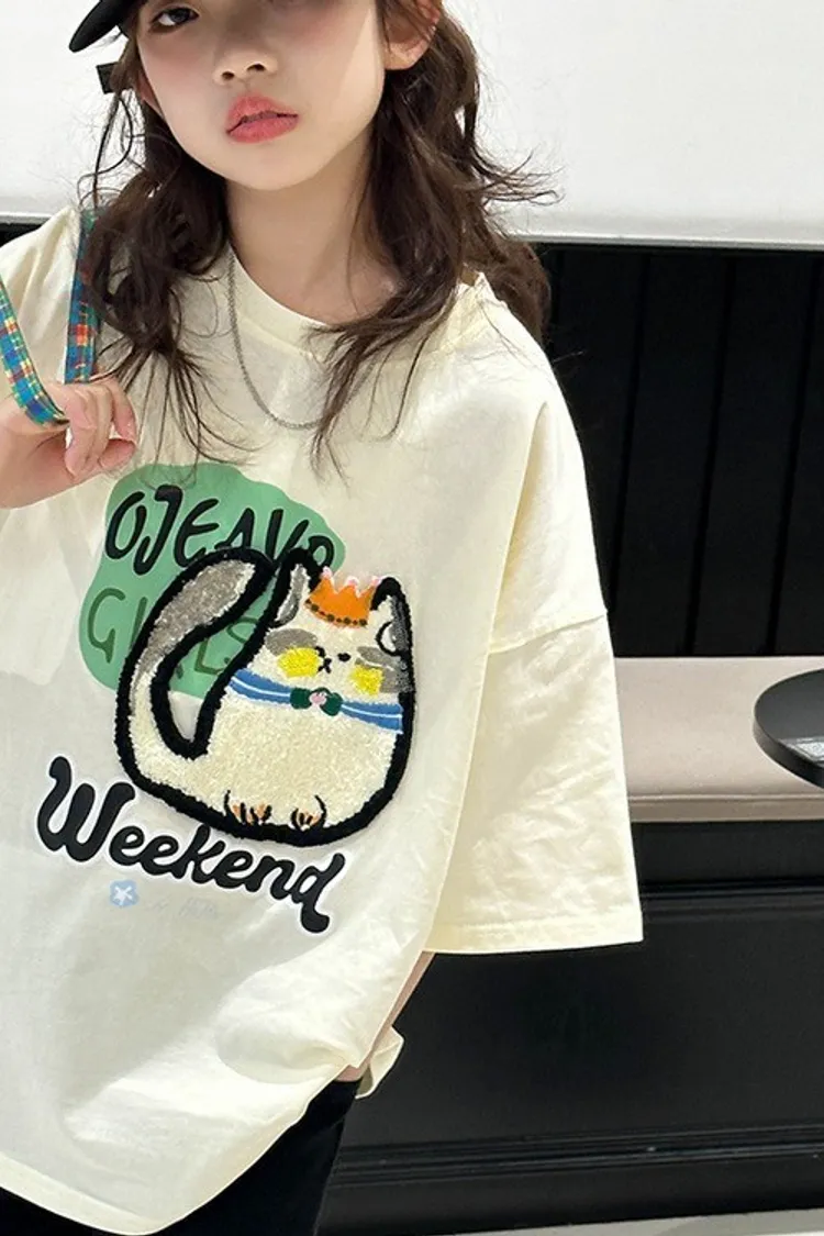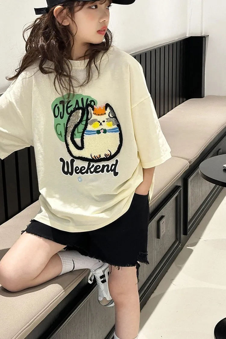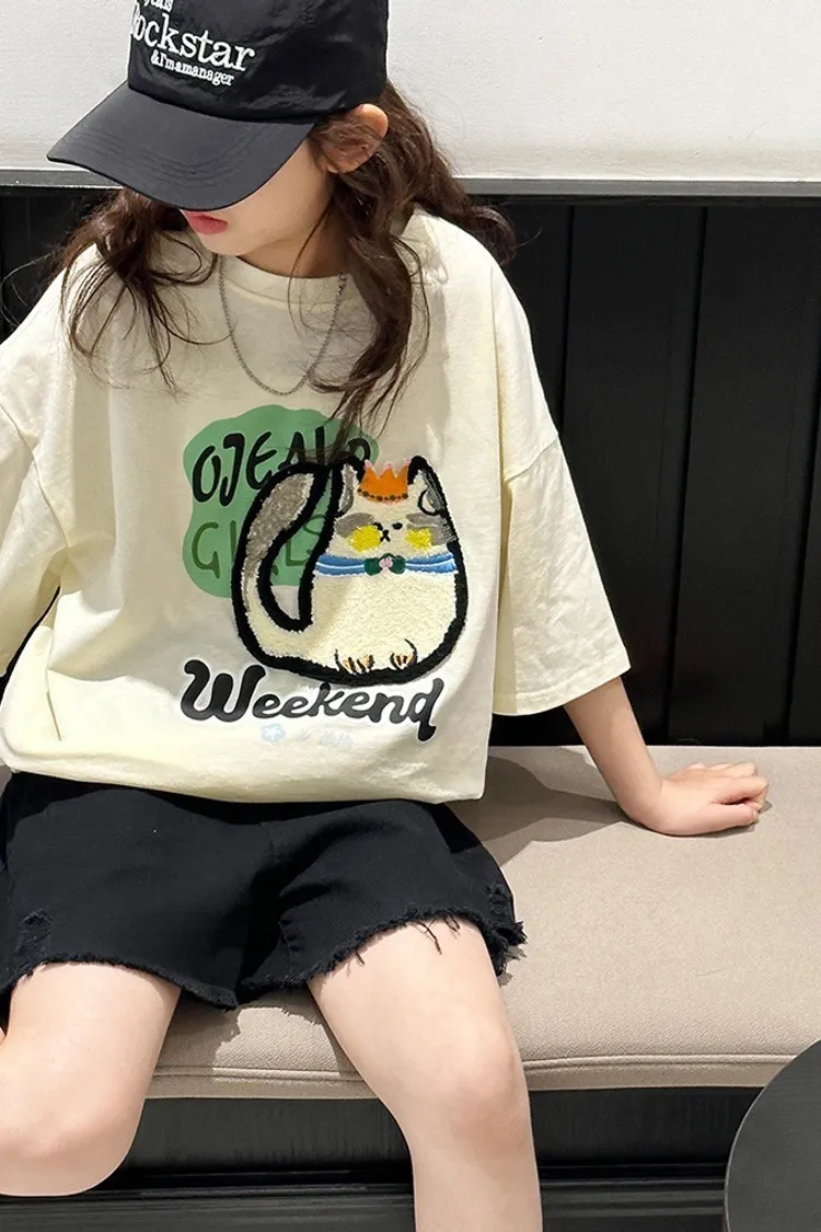 貓咪毛巾繡全棉寬鬆TEE