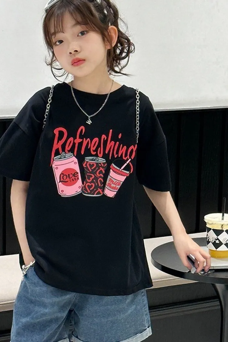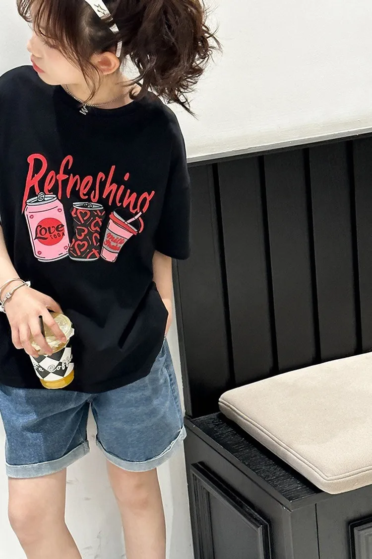 彩色罐裝飲全棉寬鬆TEE