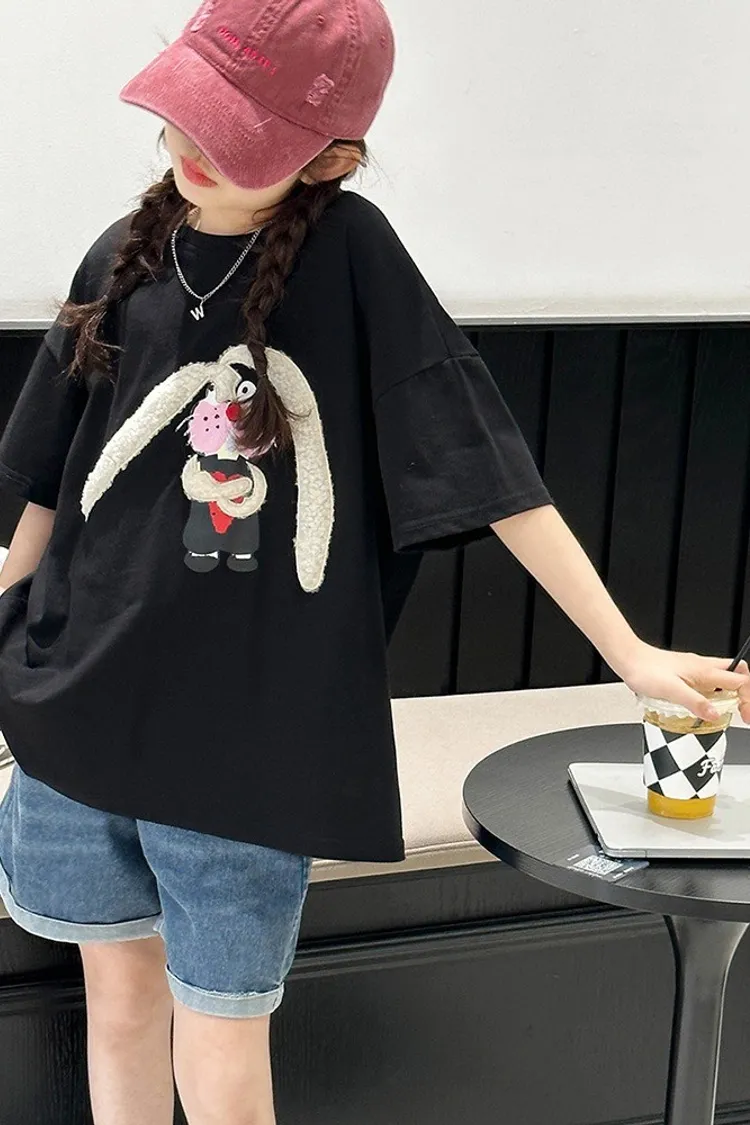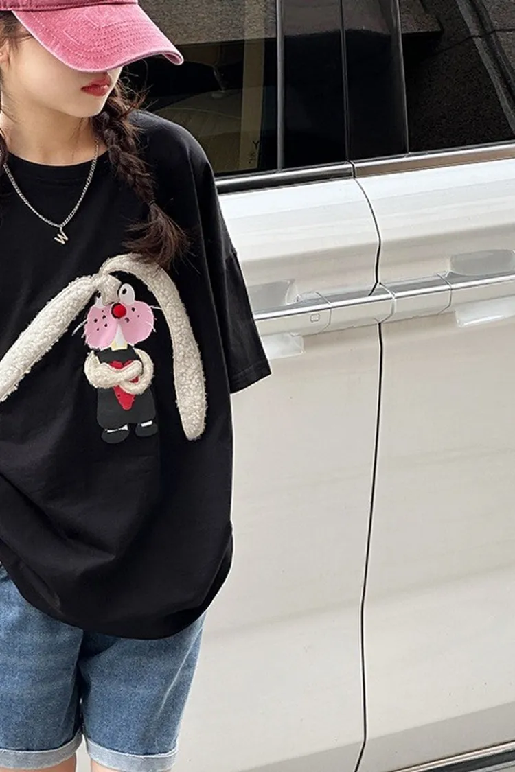 長耳兔印花全棉寬鬆TEE