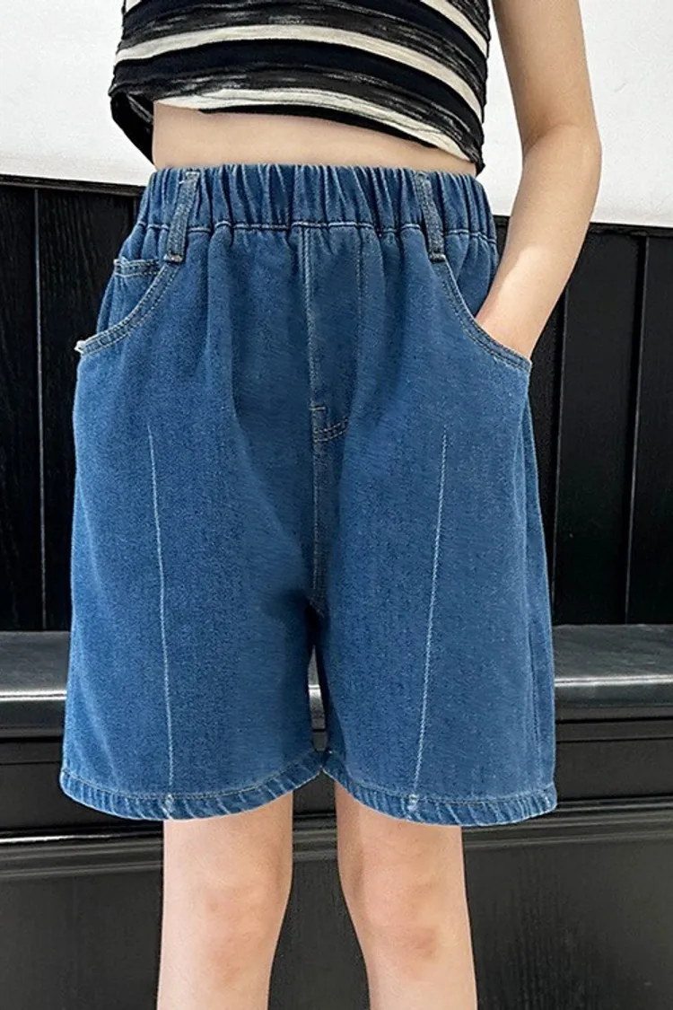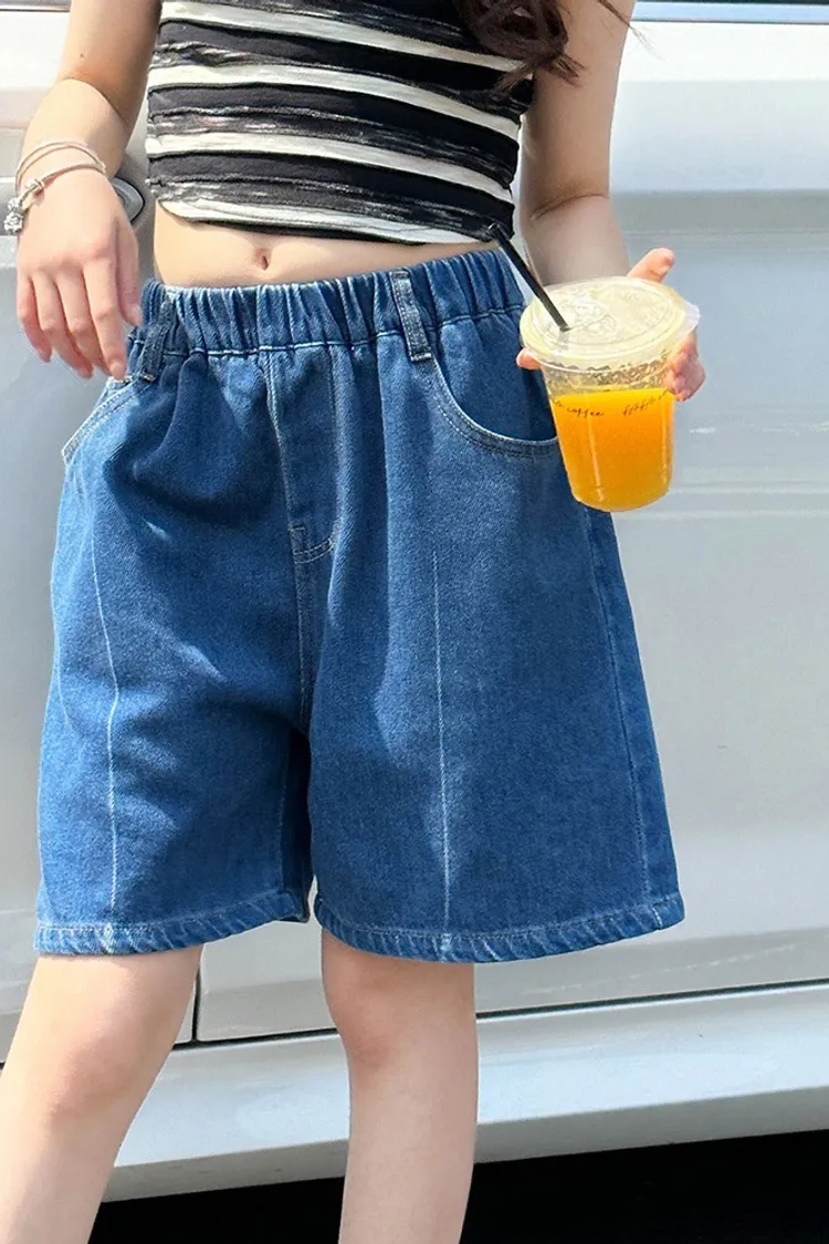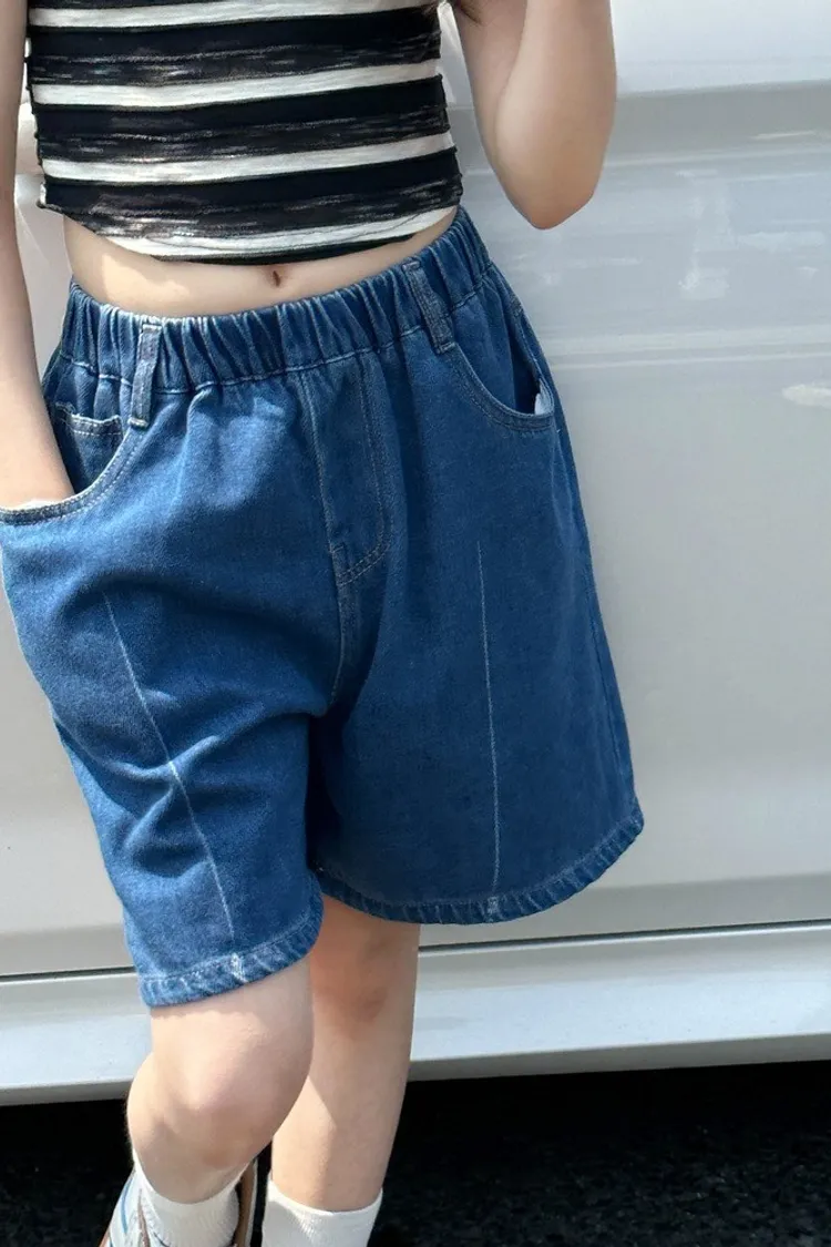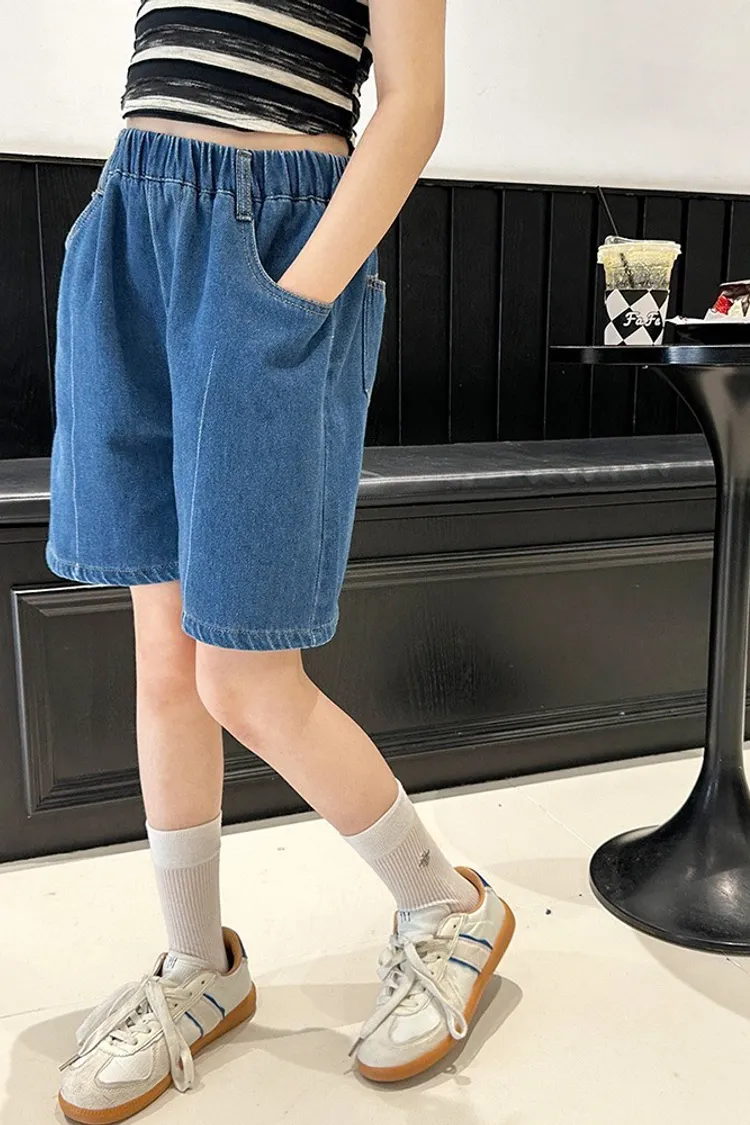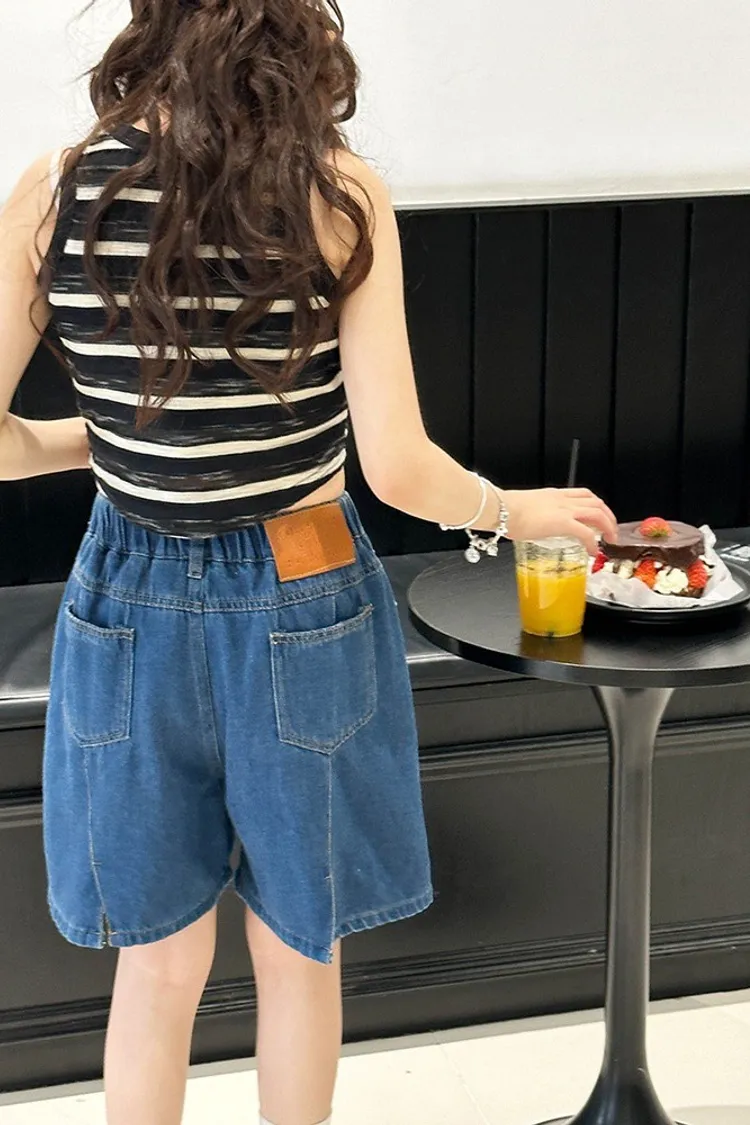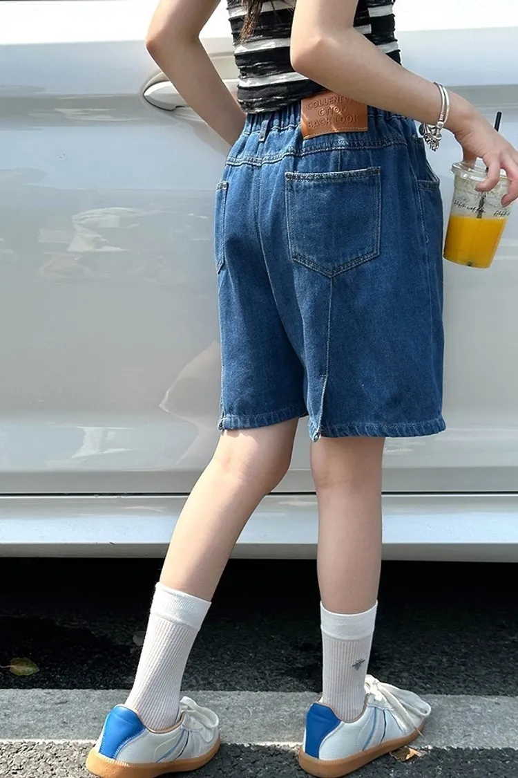 洗水白線條貼標五分牛仔褲