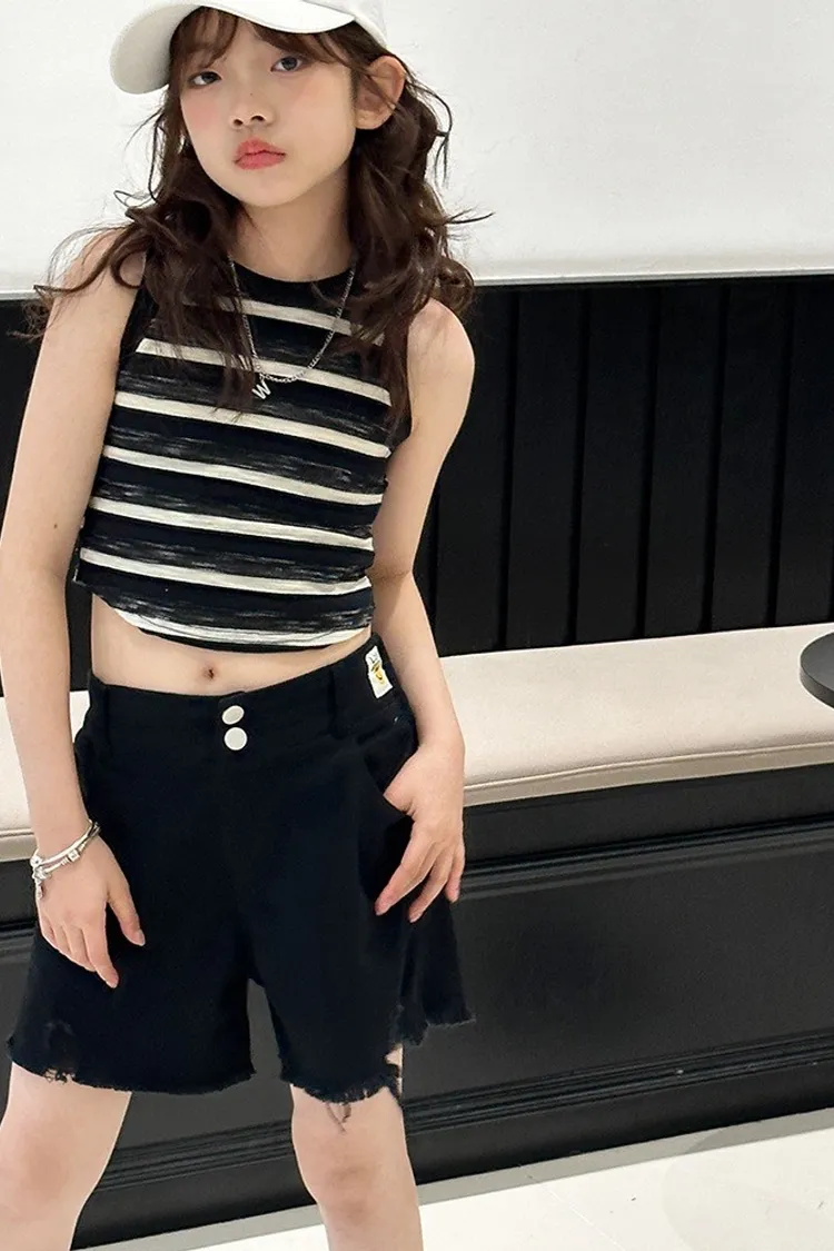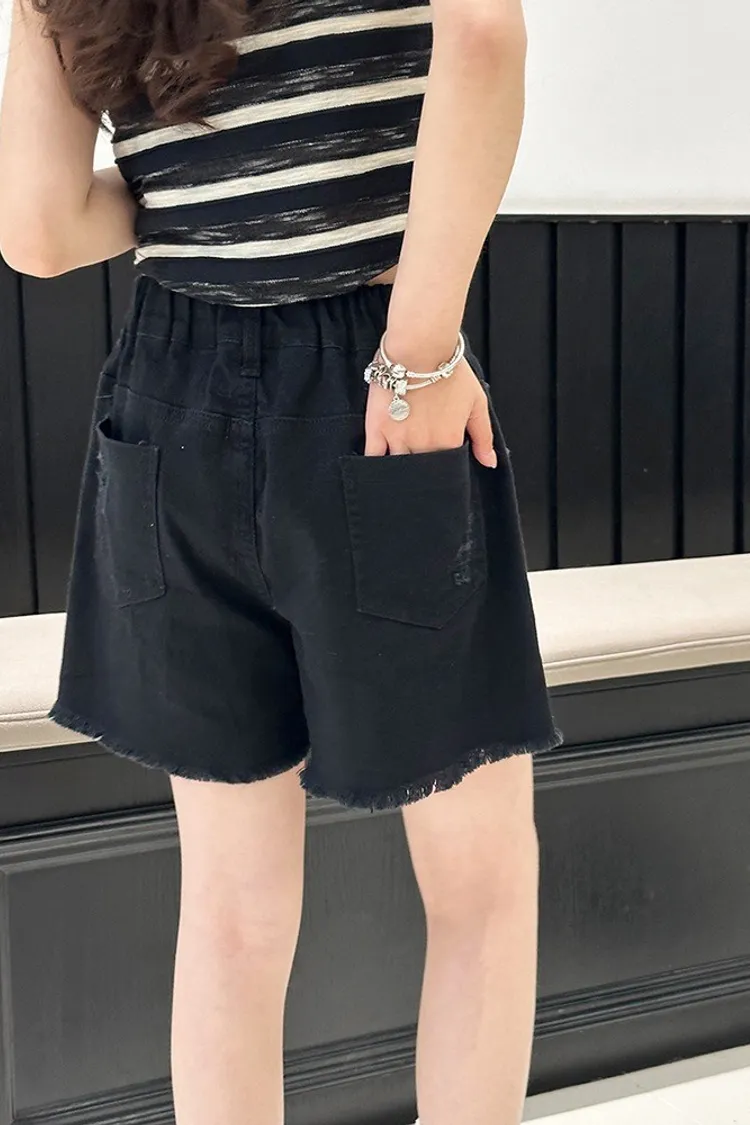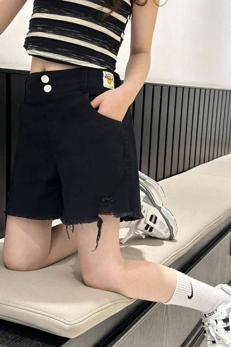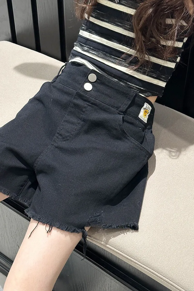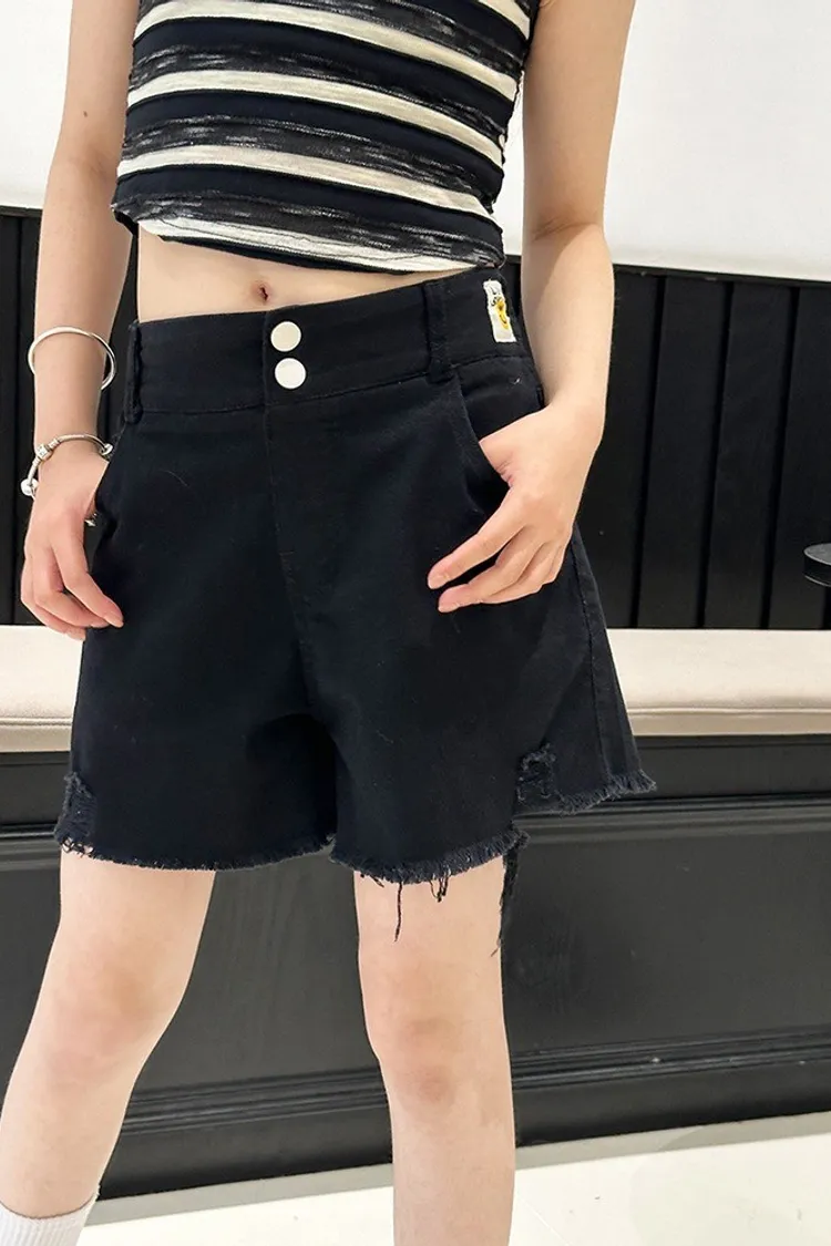 排釦毛邊個性牛仔短褲