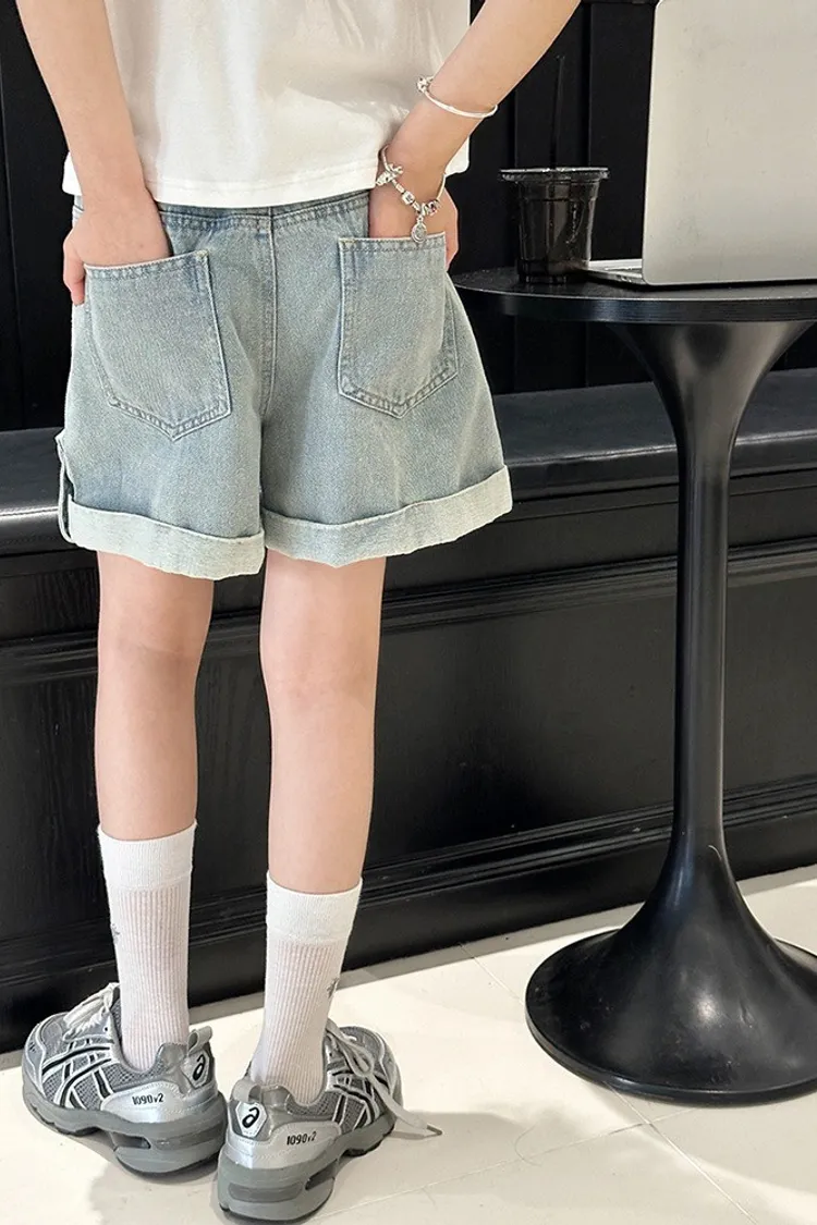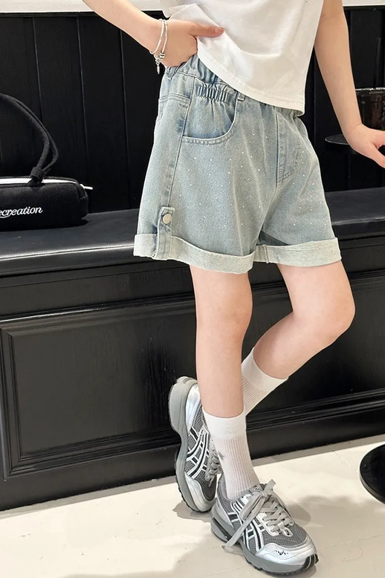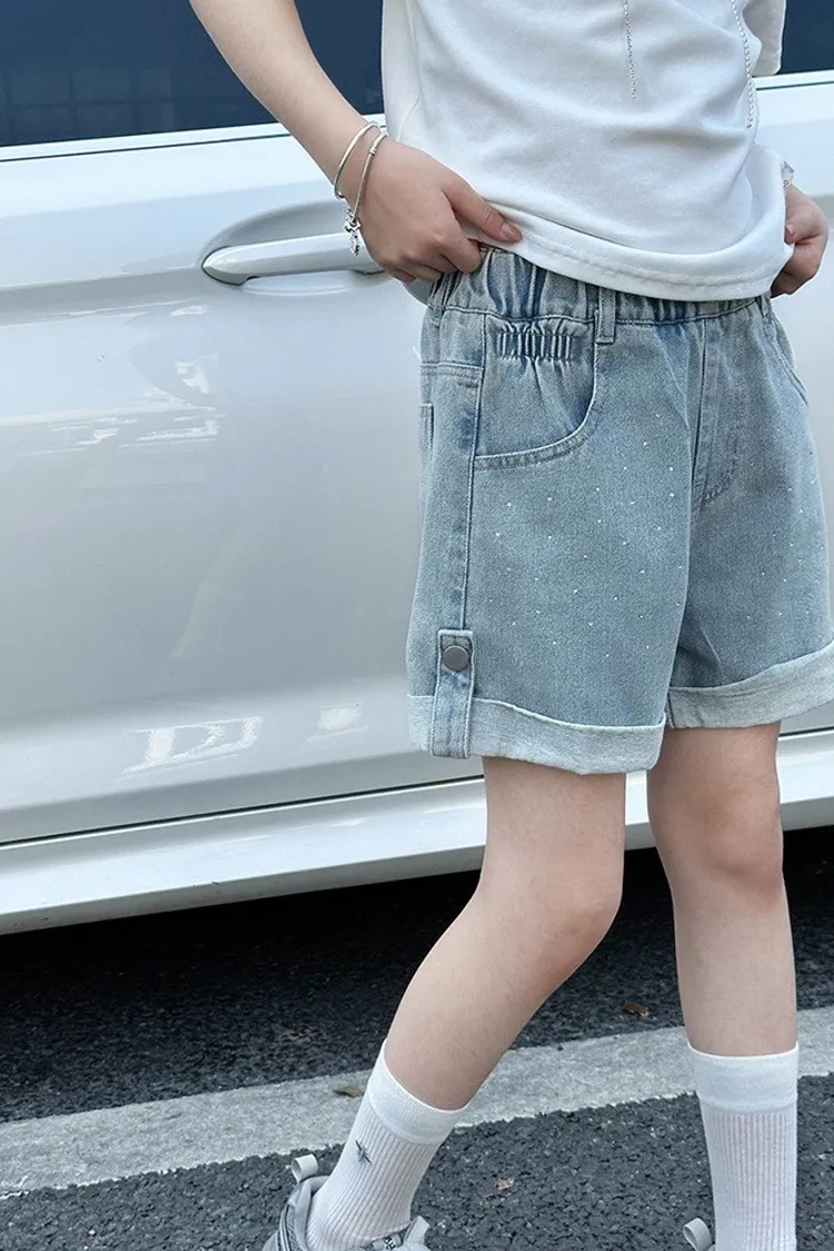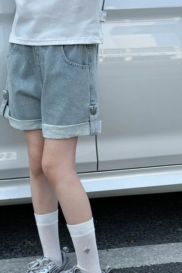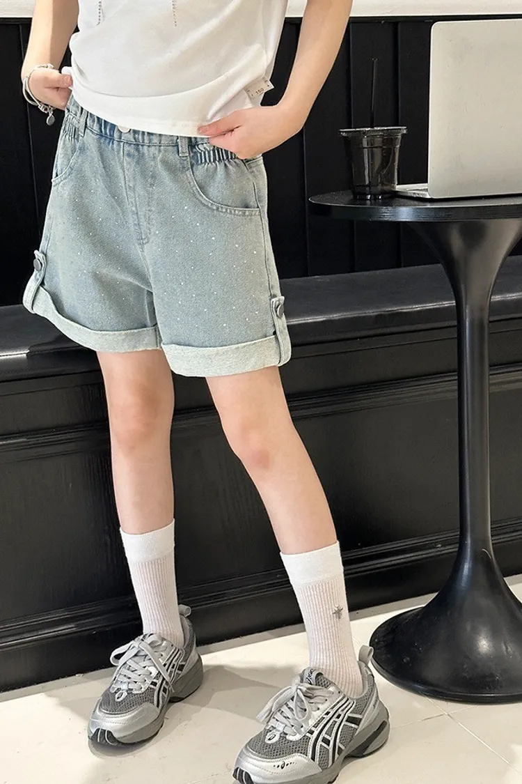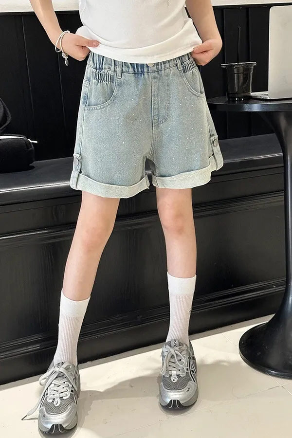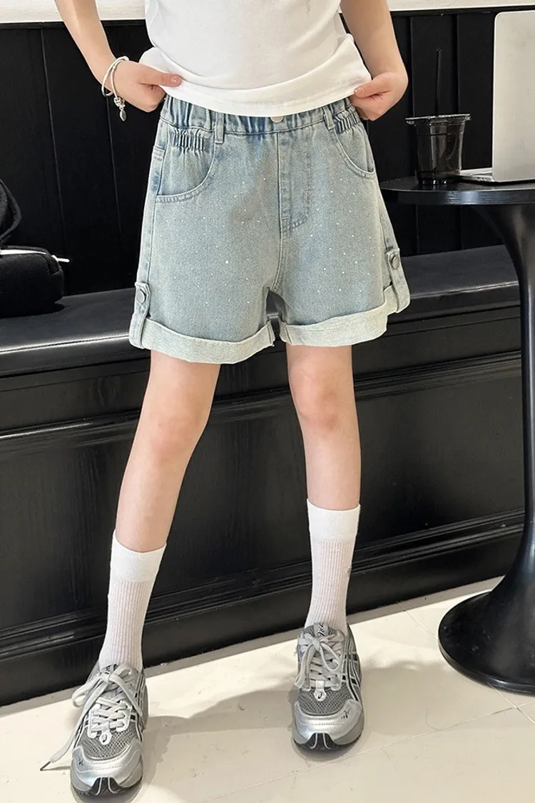 燙鑽反摺軟牛仔短褲