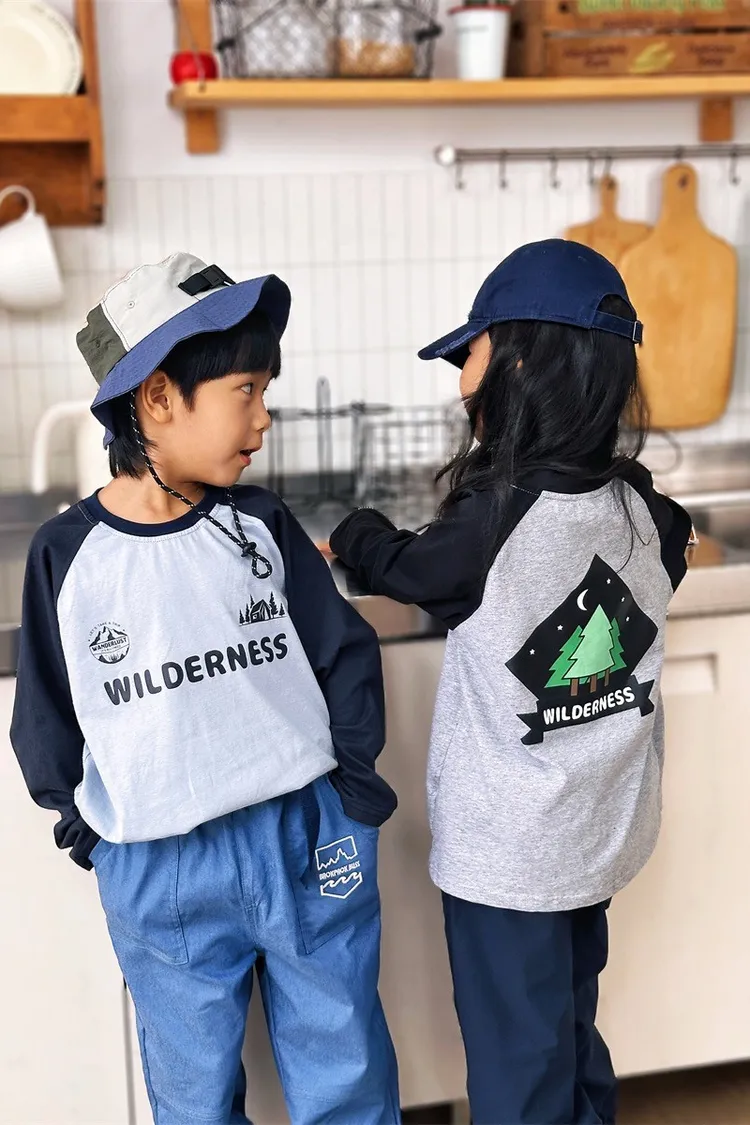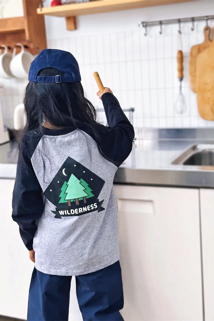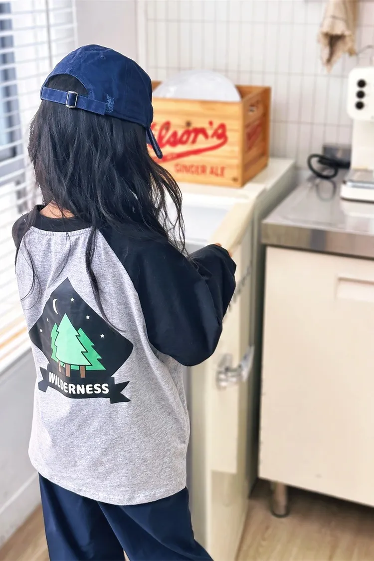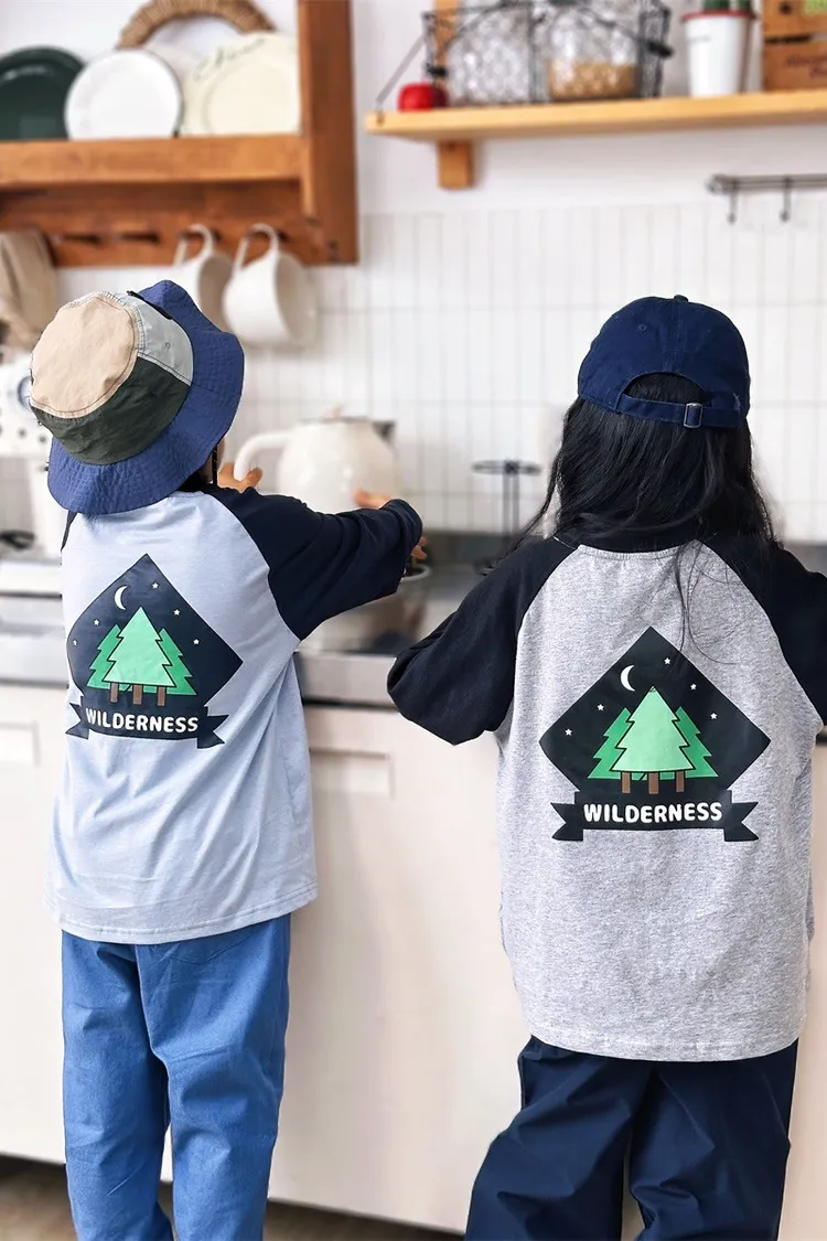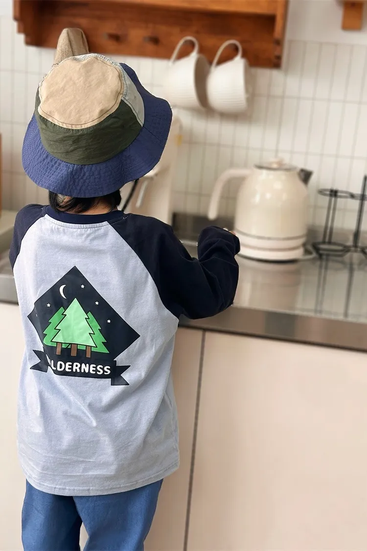 森林風插肩袖字母全棉TEE