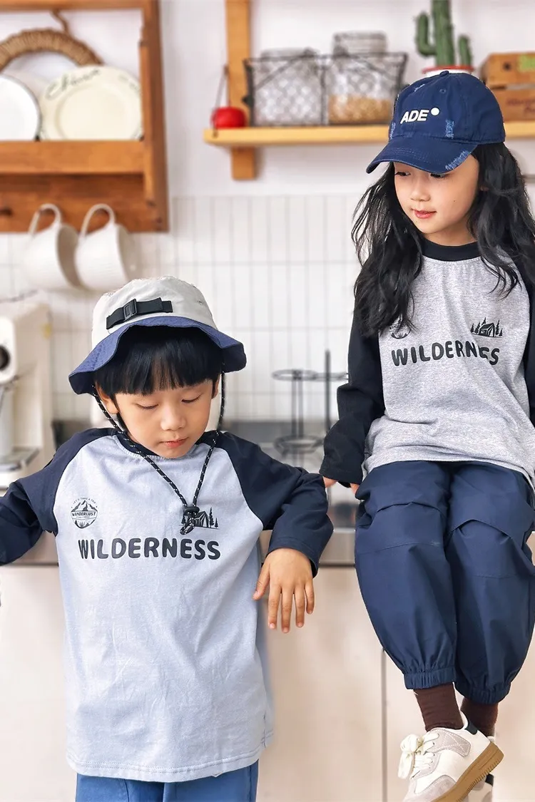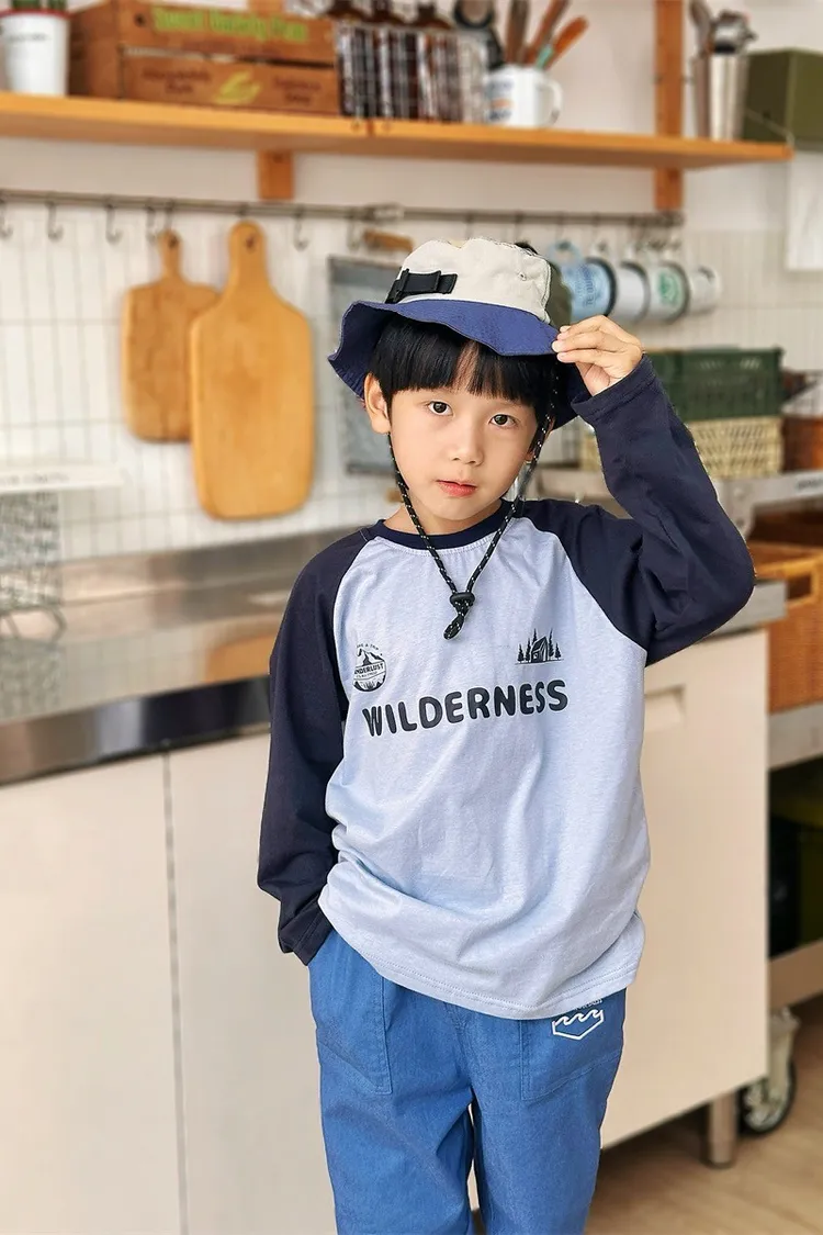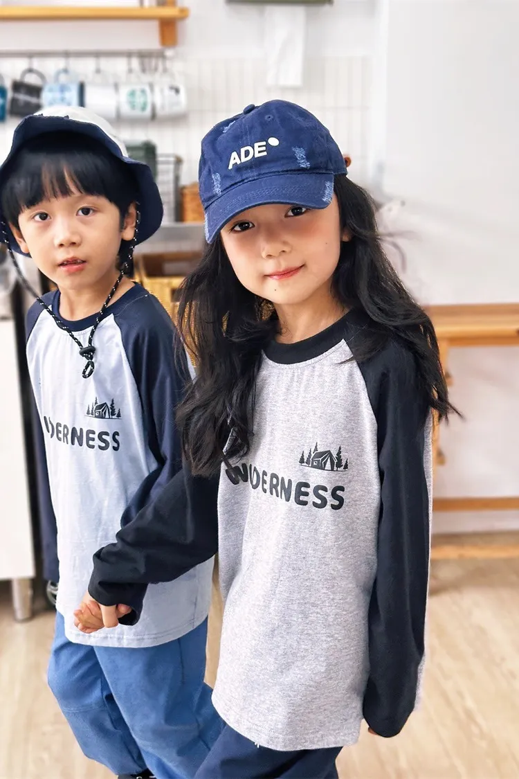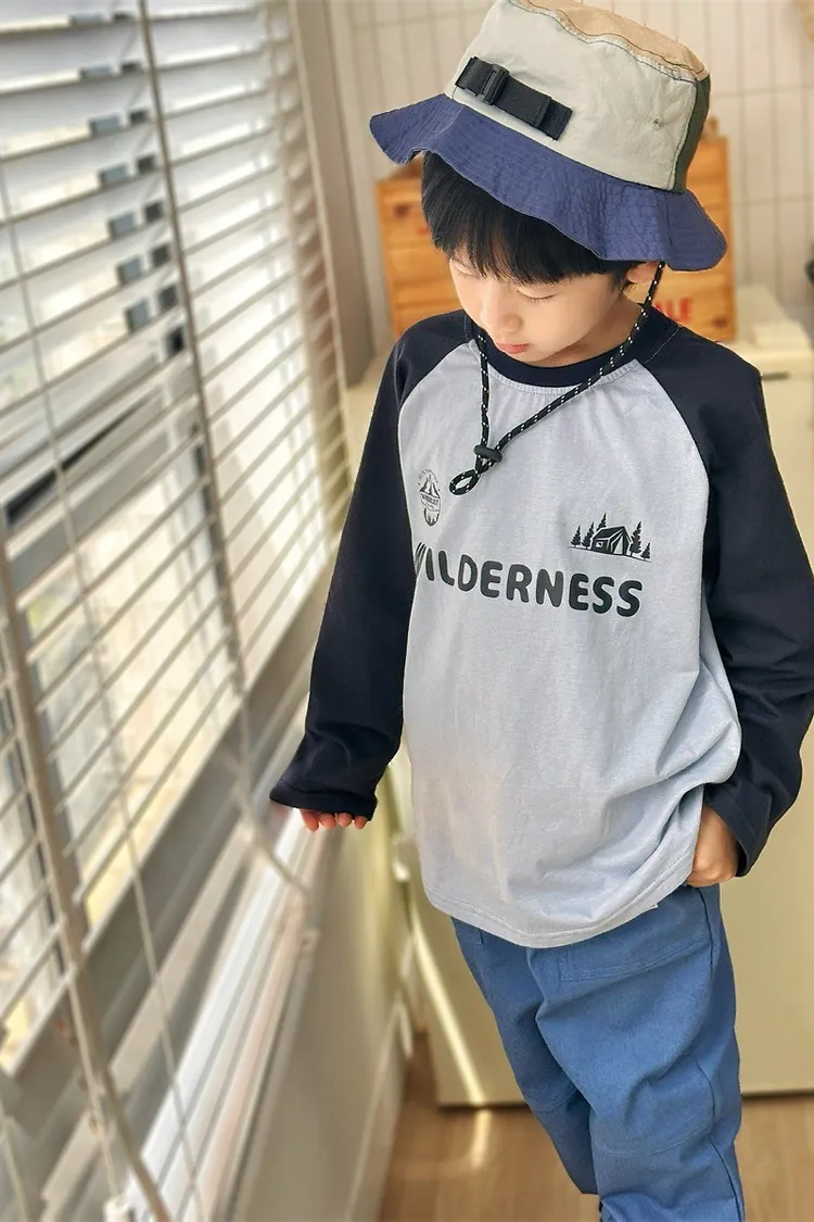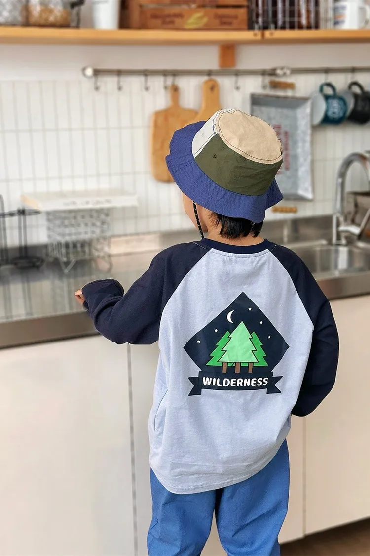 森林風插肩袖字母全棉TEE