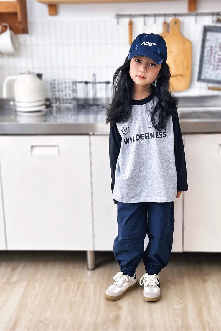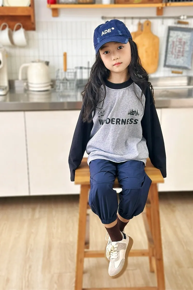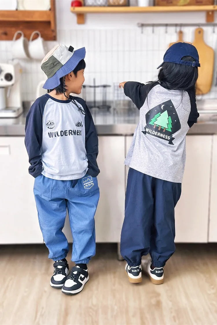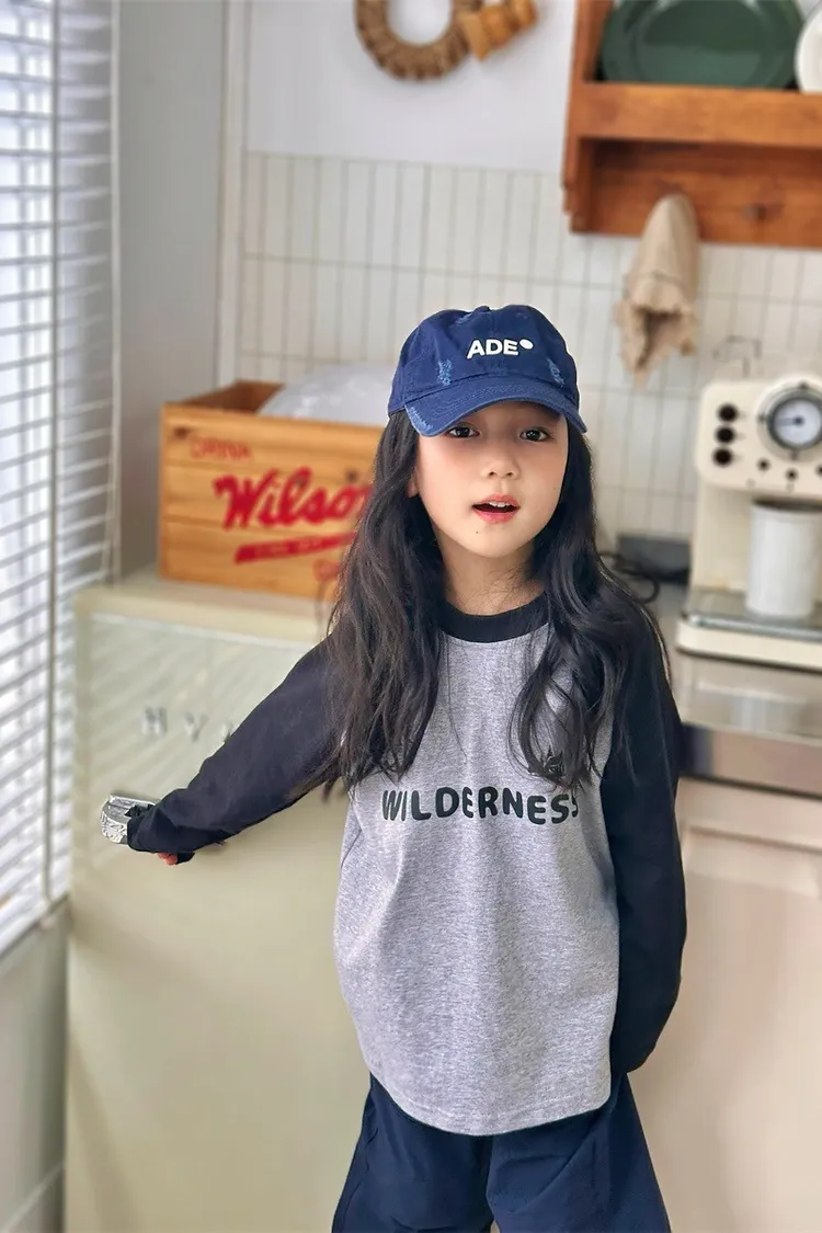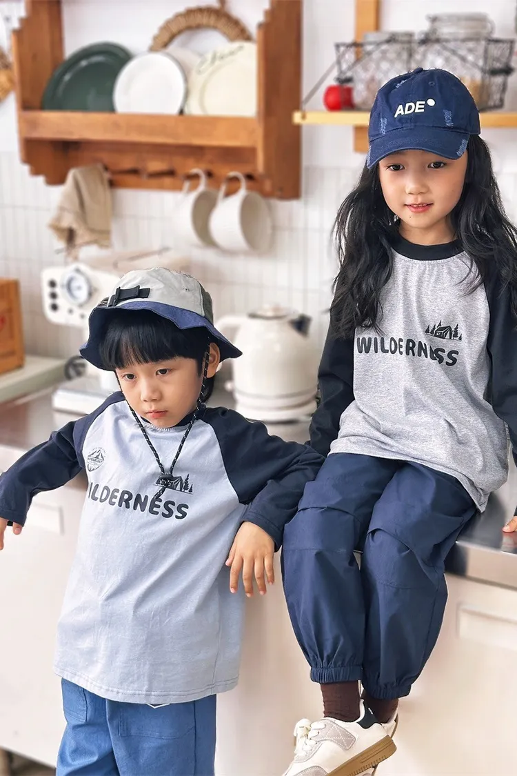 森林風插肩袖字母全棉TEE